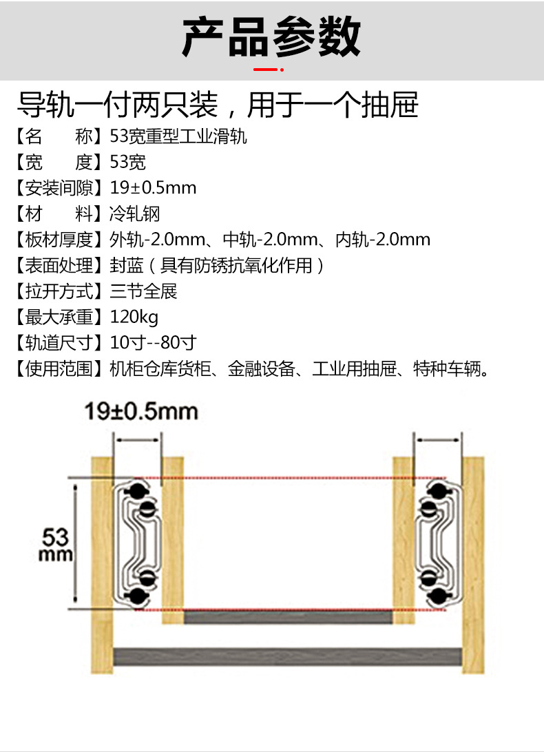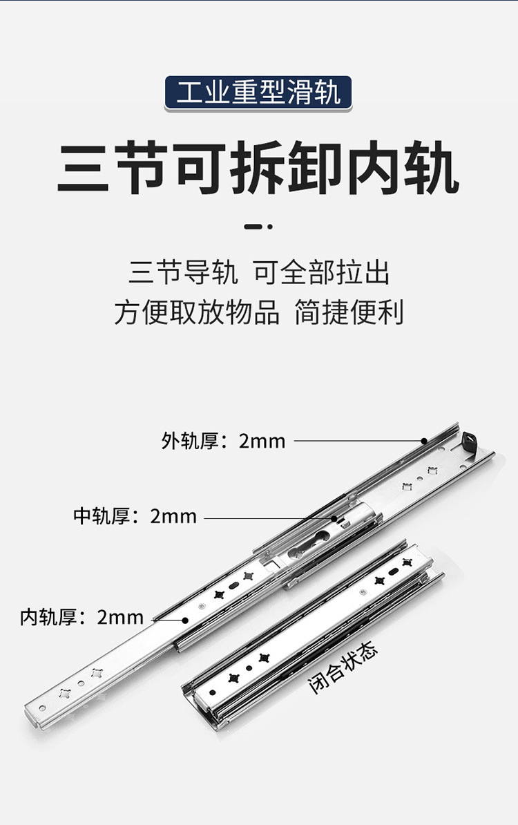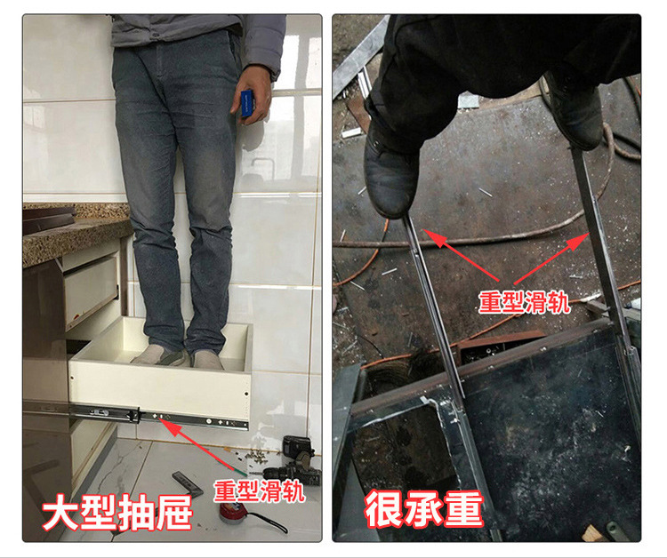 ✅53 넓은 산업 대형 슬라이드 레일 베어링 레일 트랙 서랍 슬라이드 잠금 높이 베어링 3 섹션 100kg 자체스토어 가기