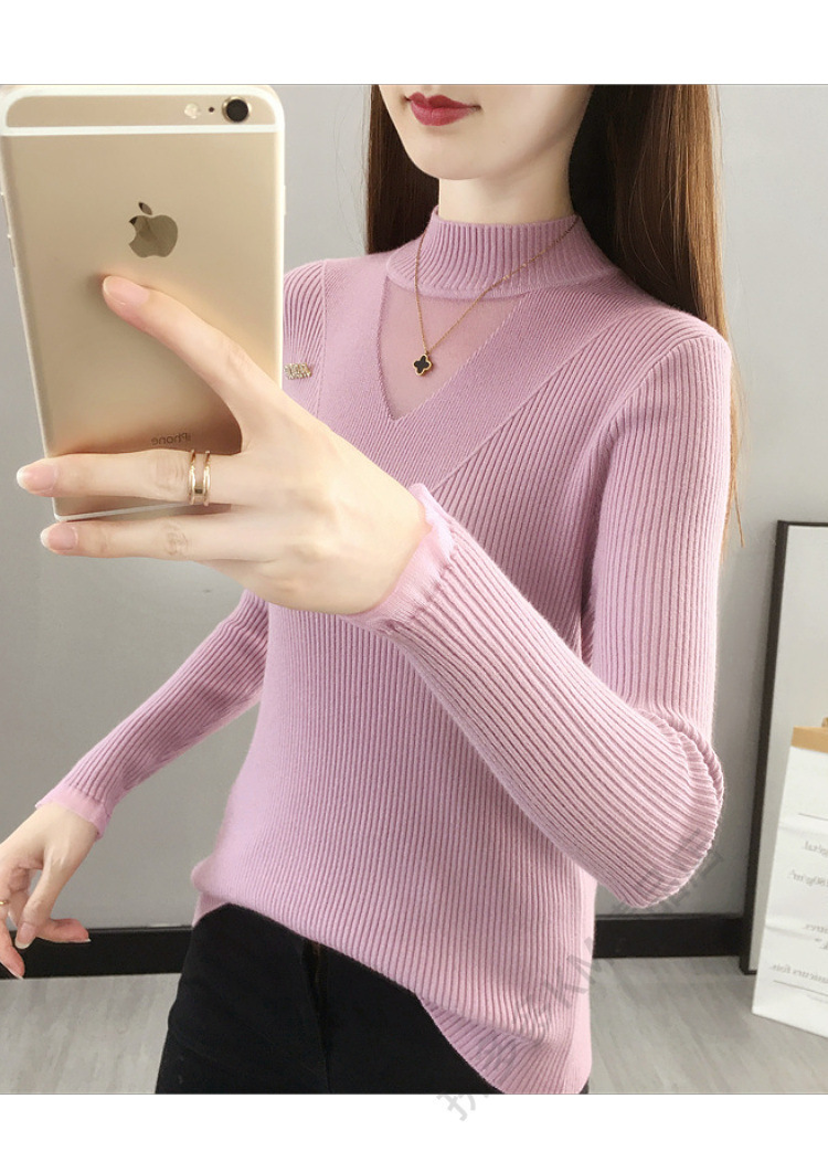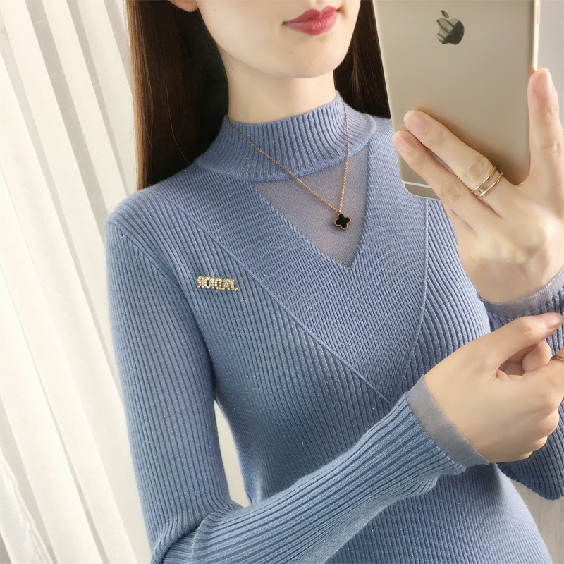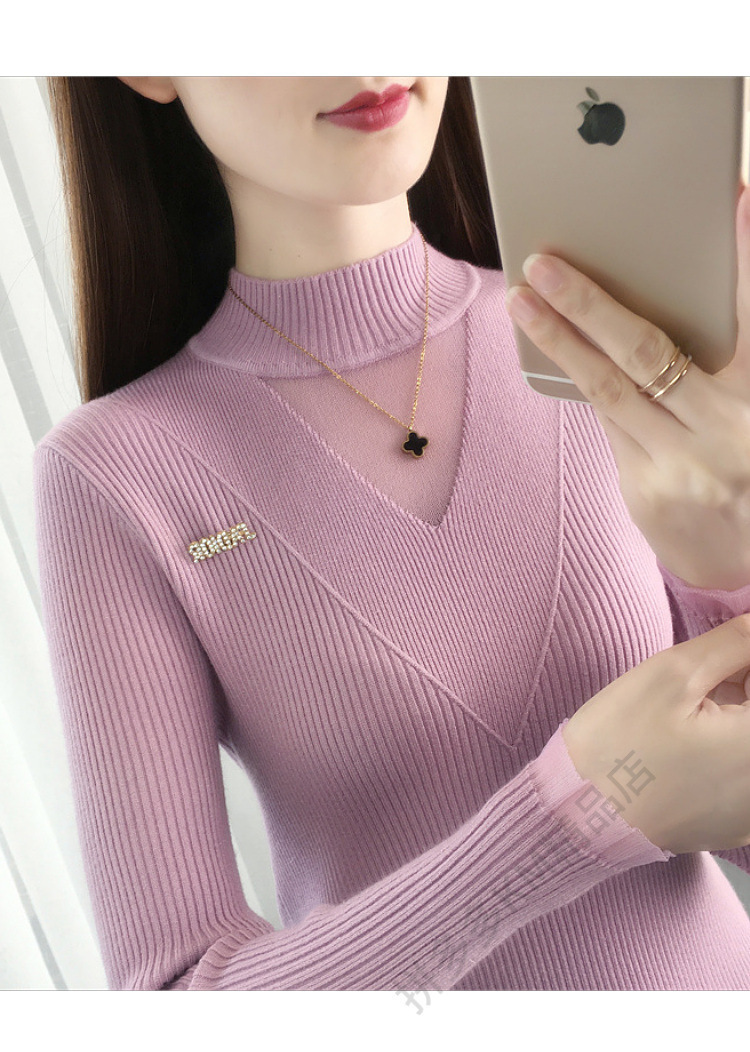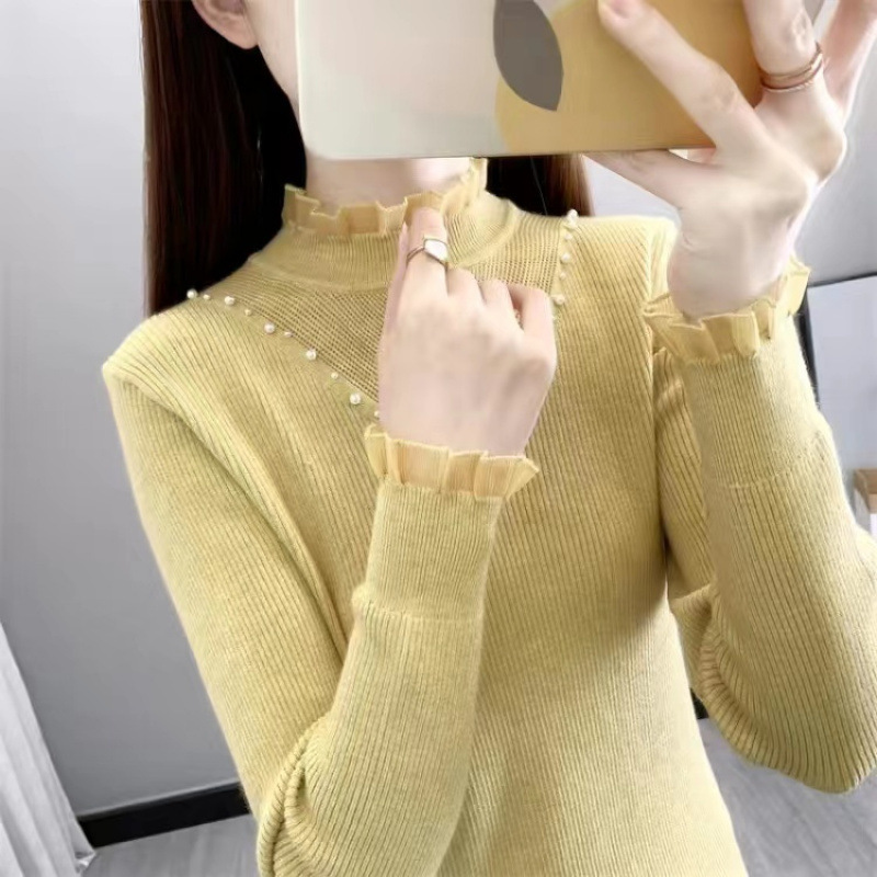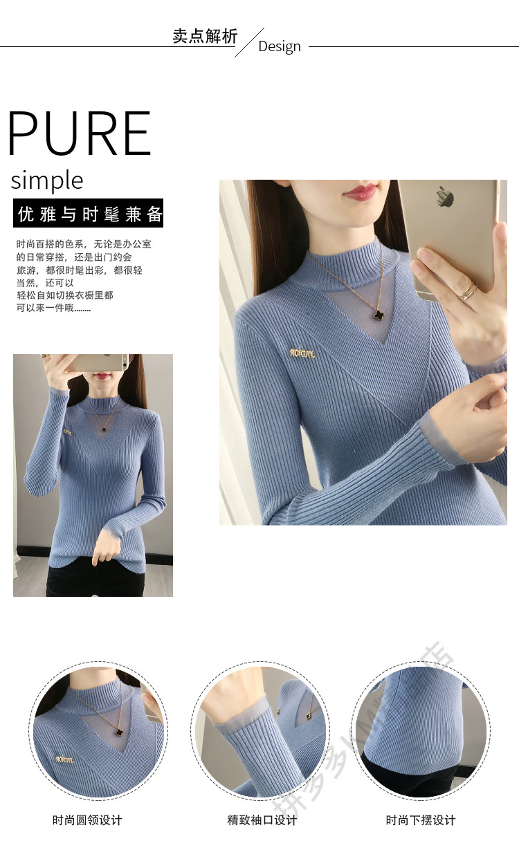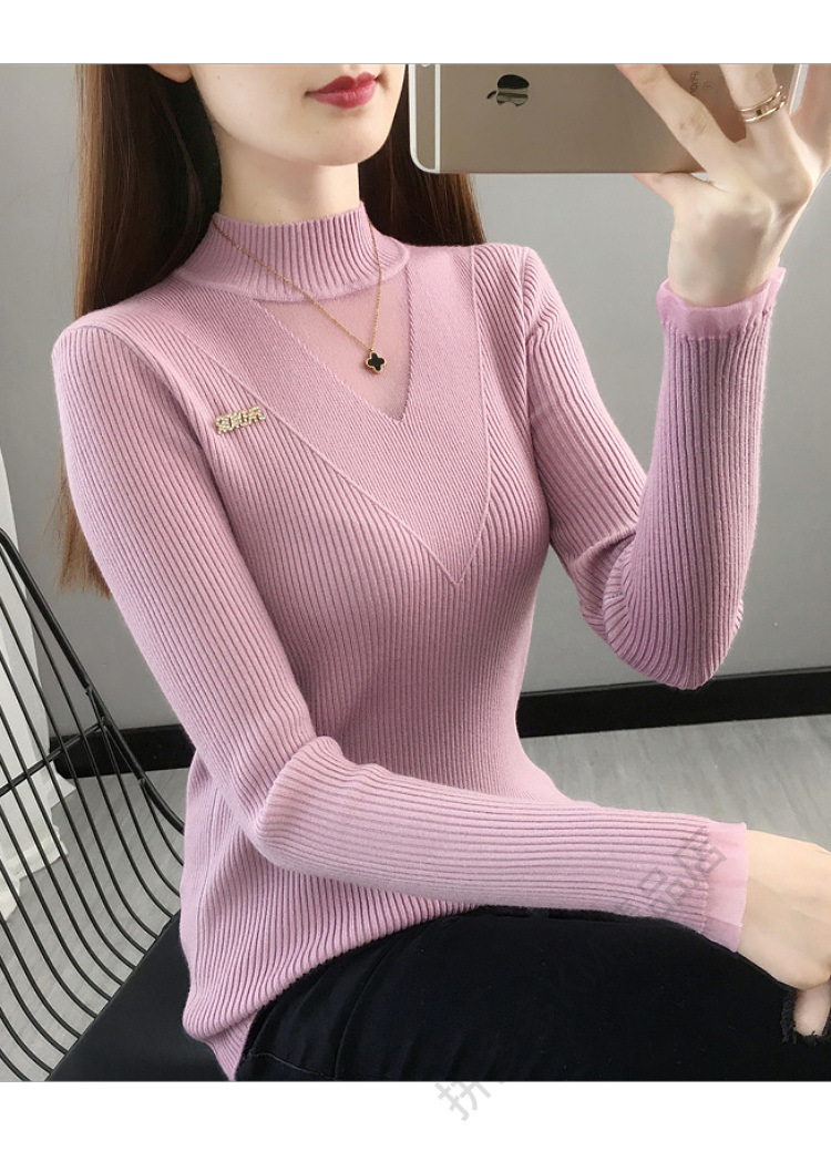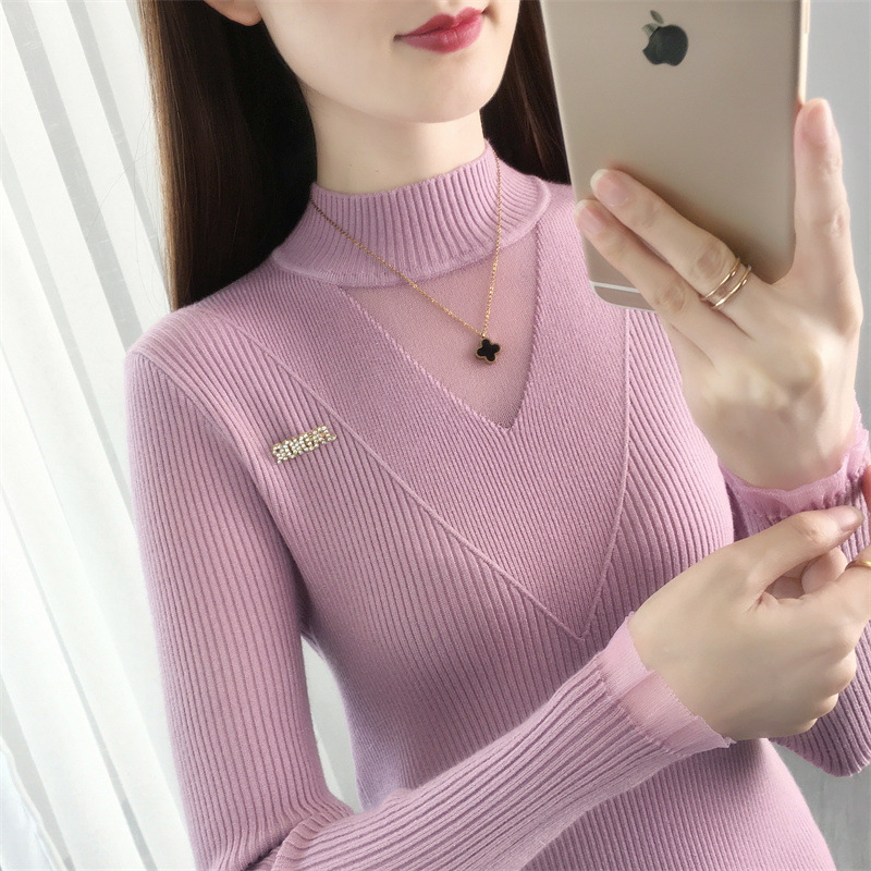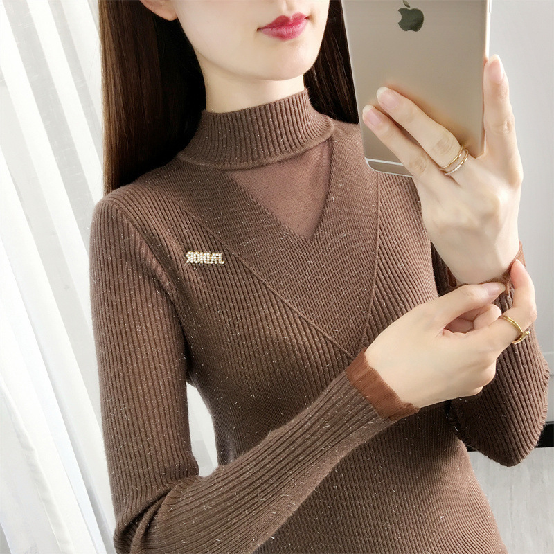 서양식 베이스 셔츠 여성의 새로운 가을과 겨울 탑 반쪽 터틀넥 기모 스웨터 여성의 두꺼운 외복 슬리밍 니트 스웨터