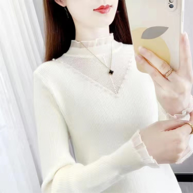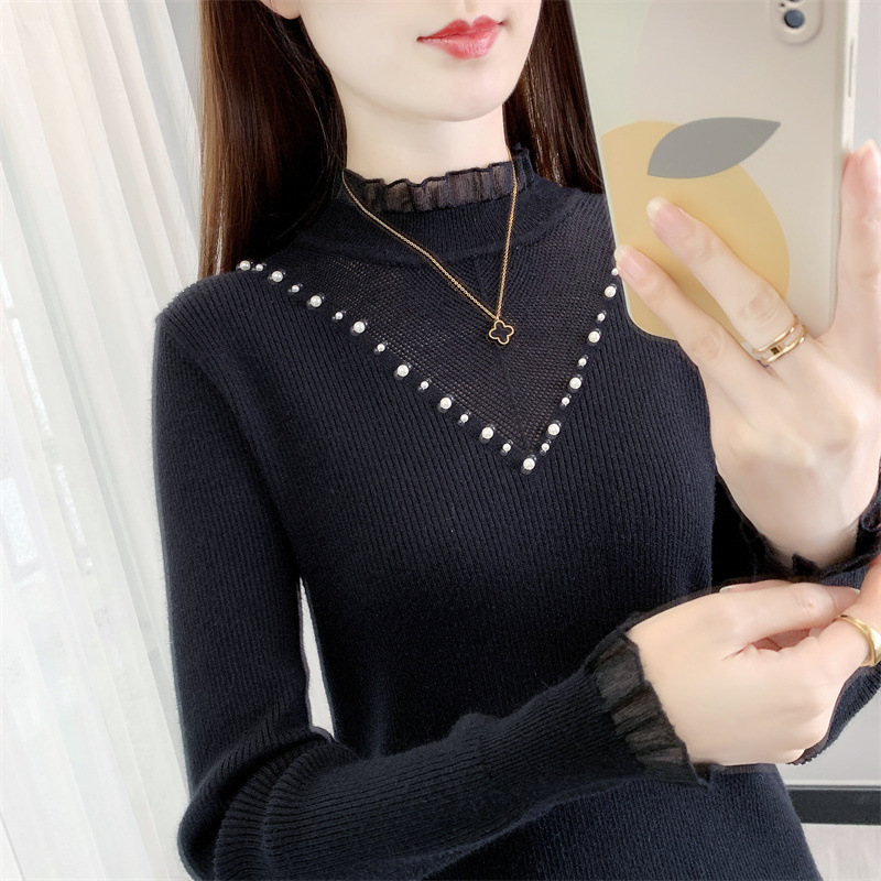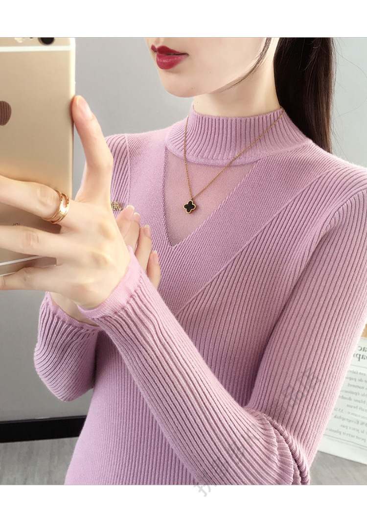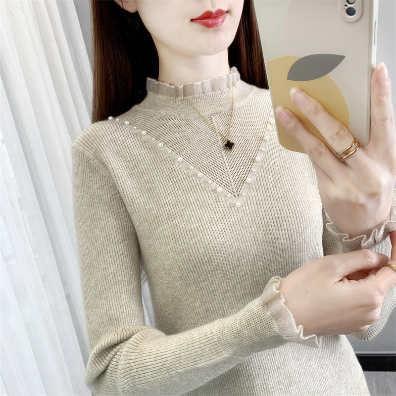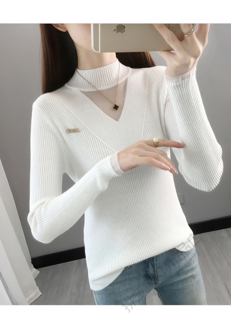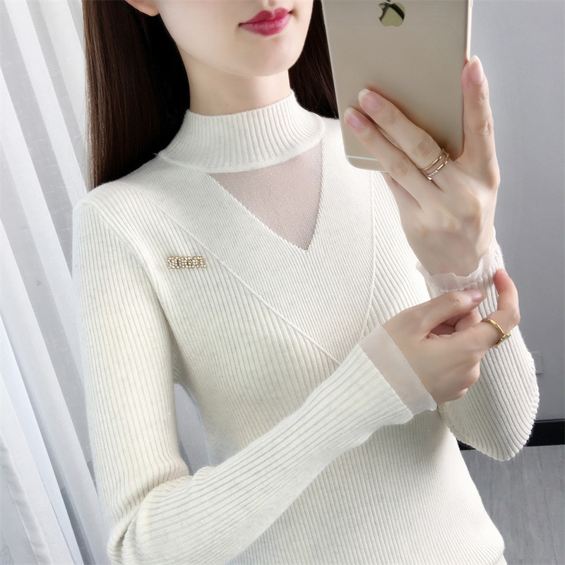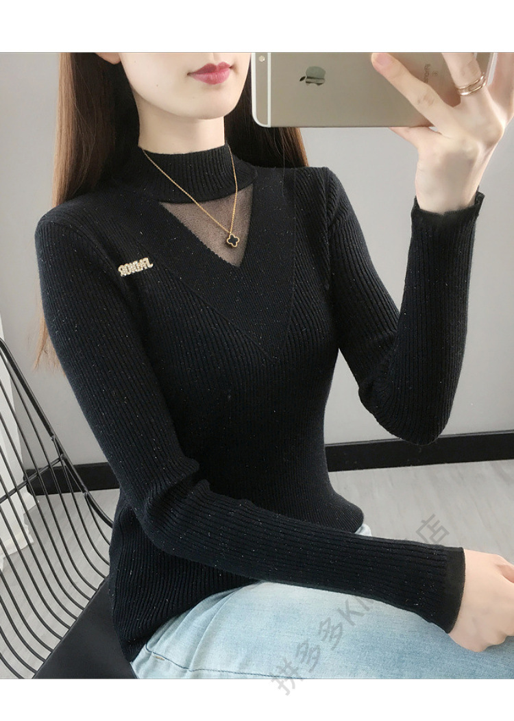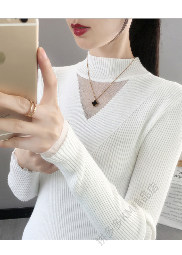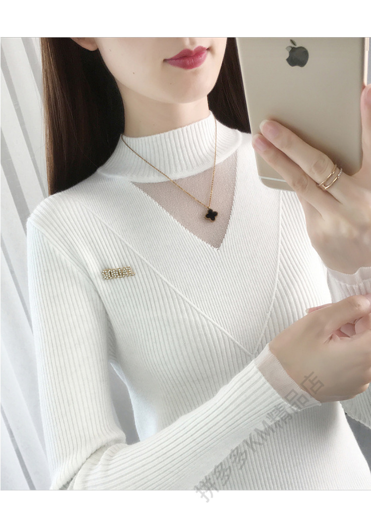 서양식 베이스 셔츠 여성의 새로운 가을과 겨울 탑 반쪽 터틀넥 기모 스웨터 여성의 두꺼운 외복 슬리밍 니트 스웨터