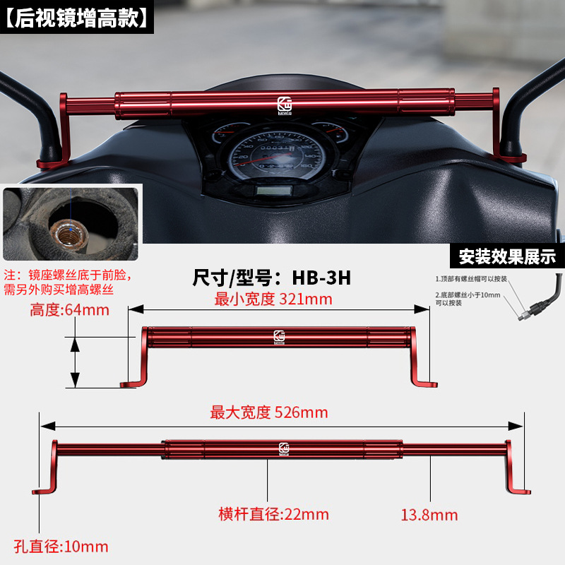 Keweige 오토바이 밸런스 바 수도꼭지 페달 전기 차량 크로스바 백미러 확장 브래킷 크로스바 추가