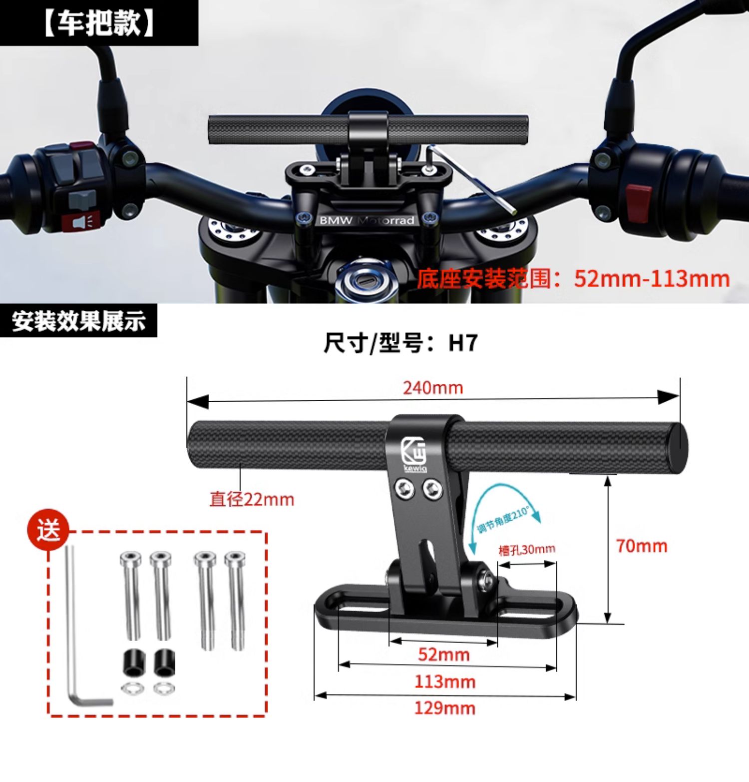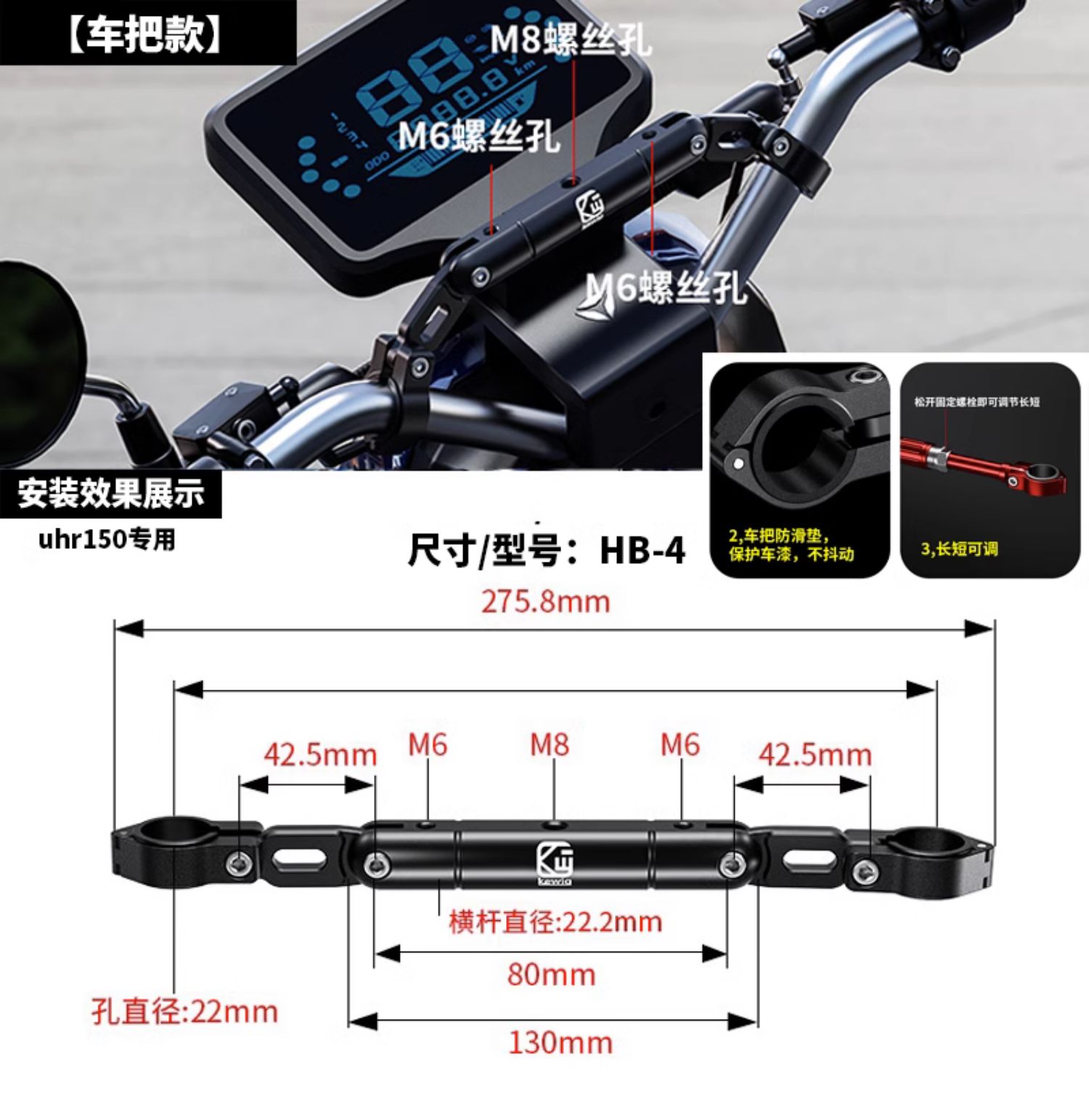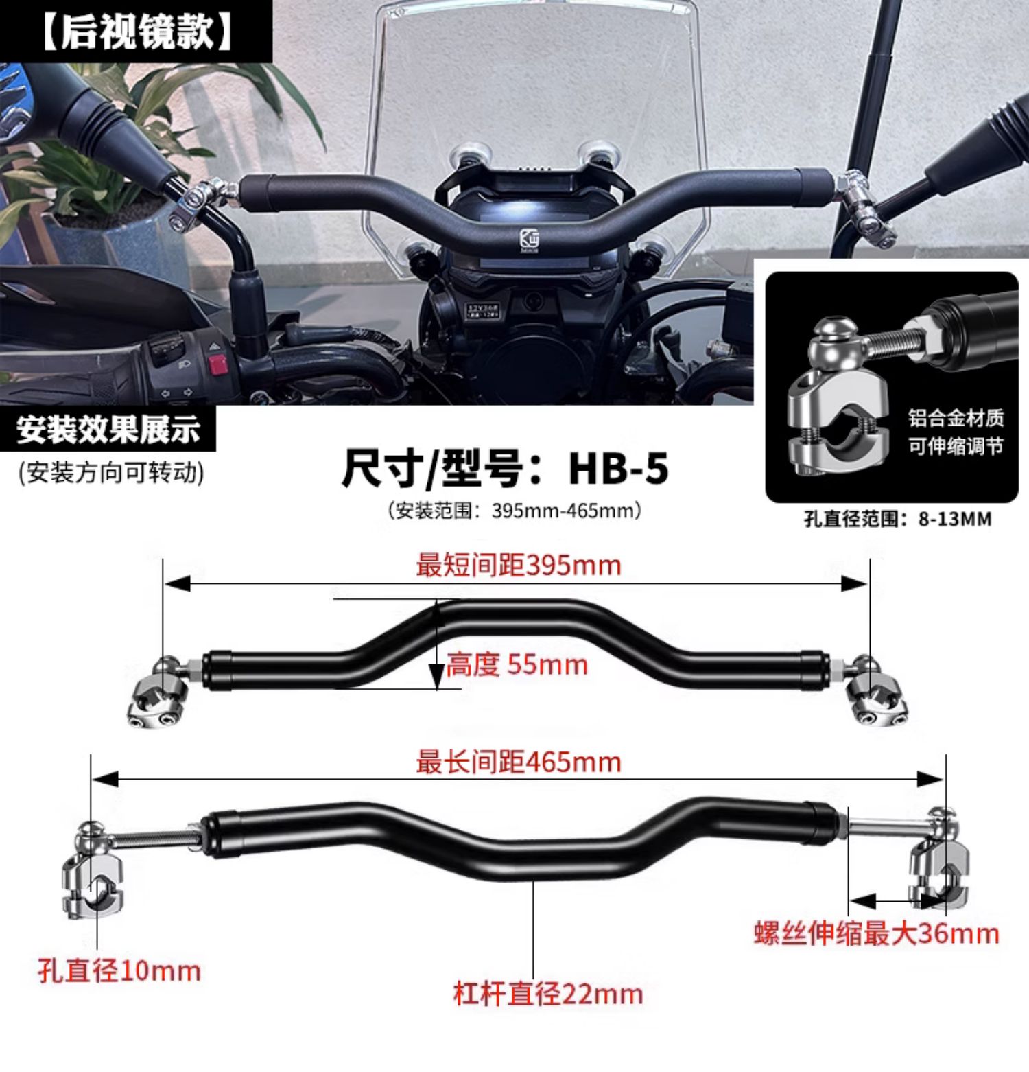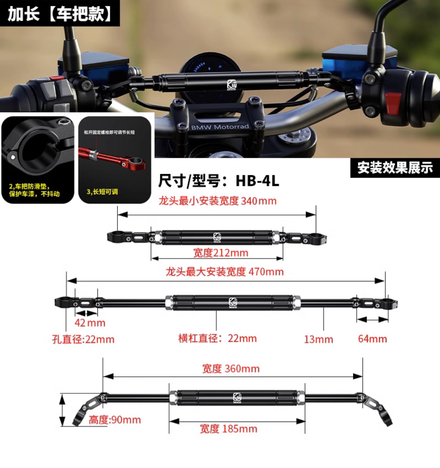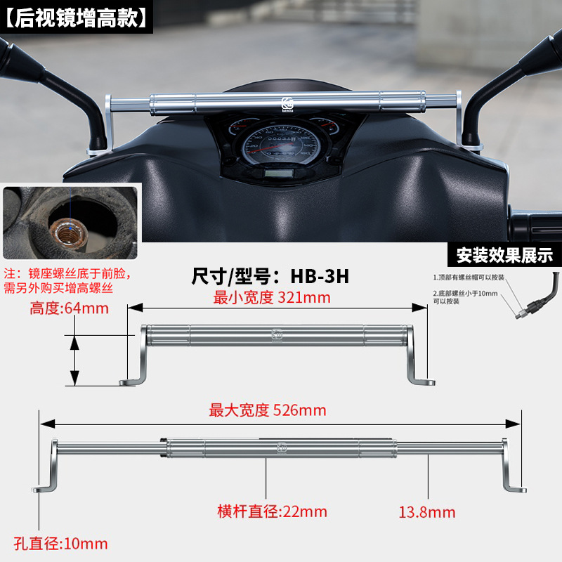 Keweige 오토바이 밸런스 바 수도꼭지 페달 전기 차량 크로스바 백미러 확장 브래킷 크로스바 추가스토어 가기
