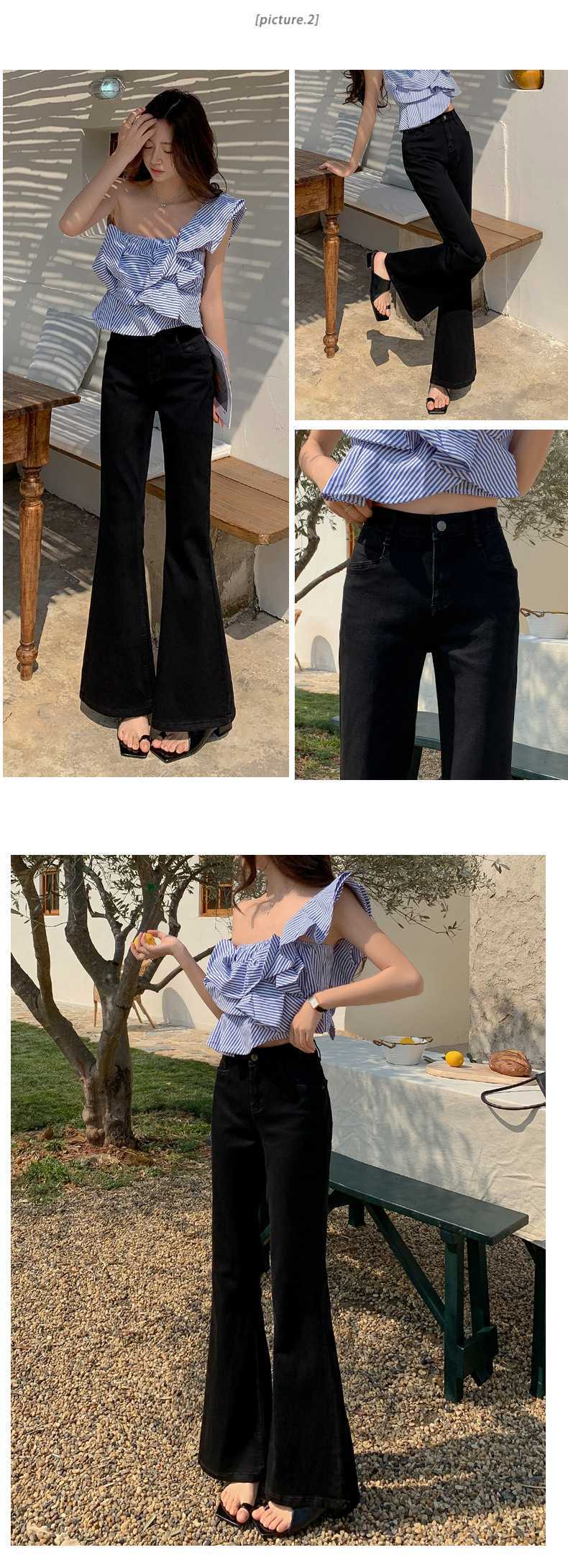 도매 간단한 바람 틈새 높은 허리 슬리밍 탄성 작은 9 포인트 마이크로 라 여성 청바지 긴 바지
