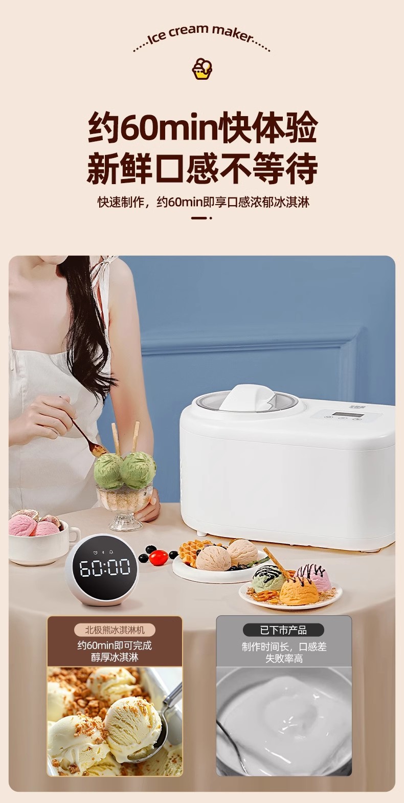 국경 간 가정용 소형 자동 자체 냉동 콘 아이스크림 기계 아이스크림 기계 1L 대용량 아이스크림 기계