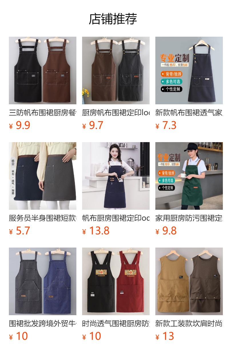 캔버스 가정용 주방 발수 방수 앞치마 서점 인쇄 커피 숍 이발사 작업복스토어 가기