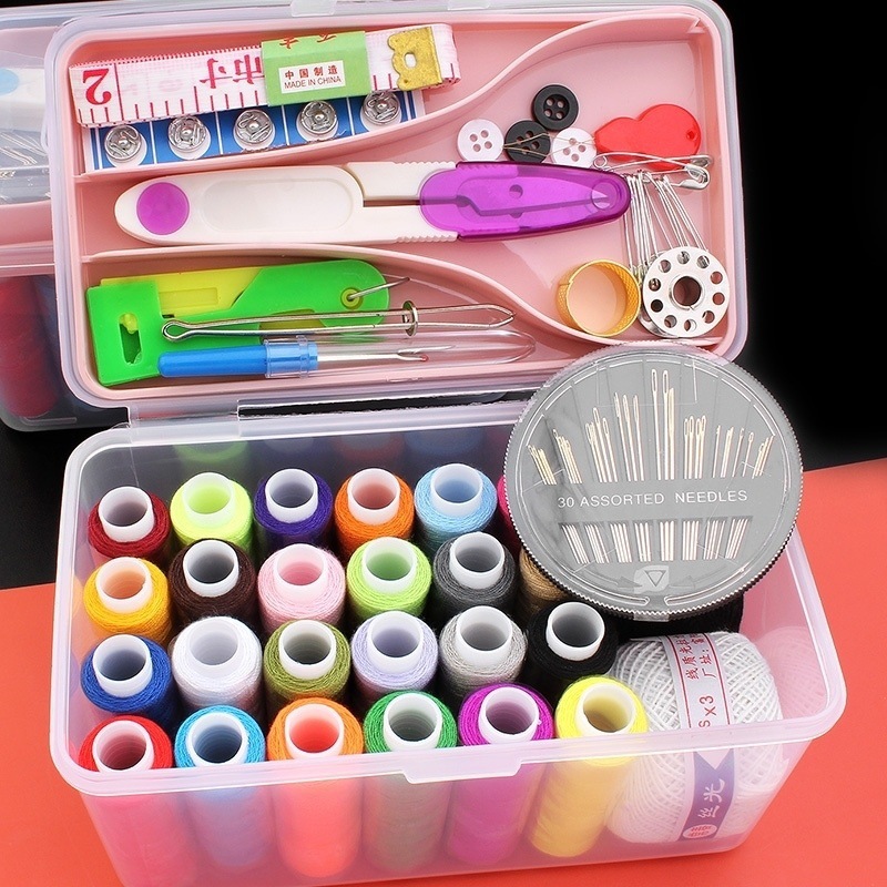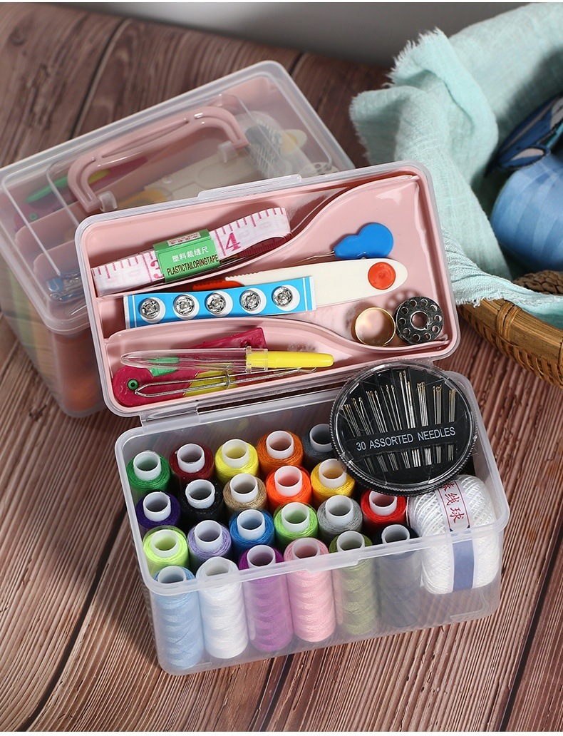 다기능 재봉 상자 무료 배송 가정용 대형 휴대용 멀티 컬러 재봉 키트 도구 보관 상자 세트