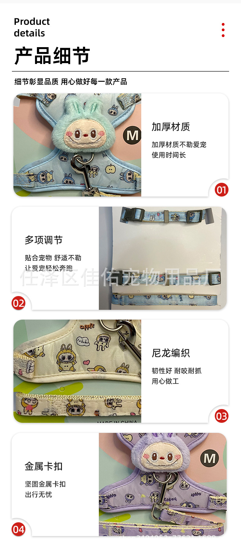조끼 만화 인형 걷는 고양이와 개 미라 리쉬 애완 동물 가죽 끈 가슴 폭발 방지스토어 가기