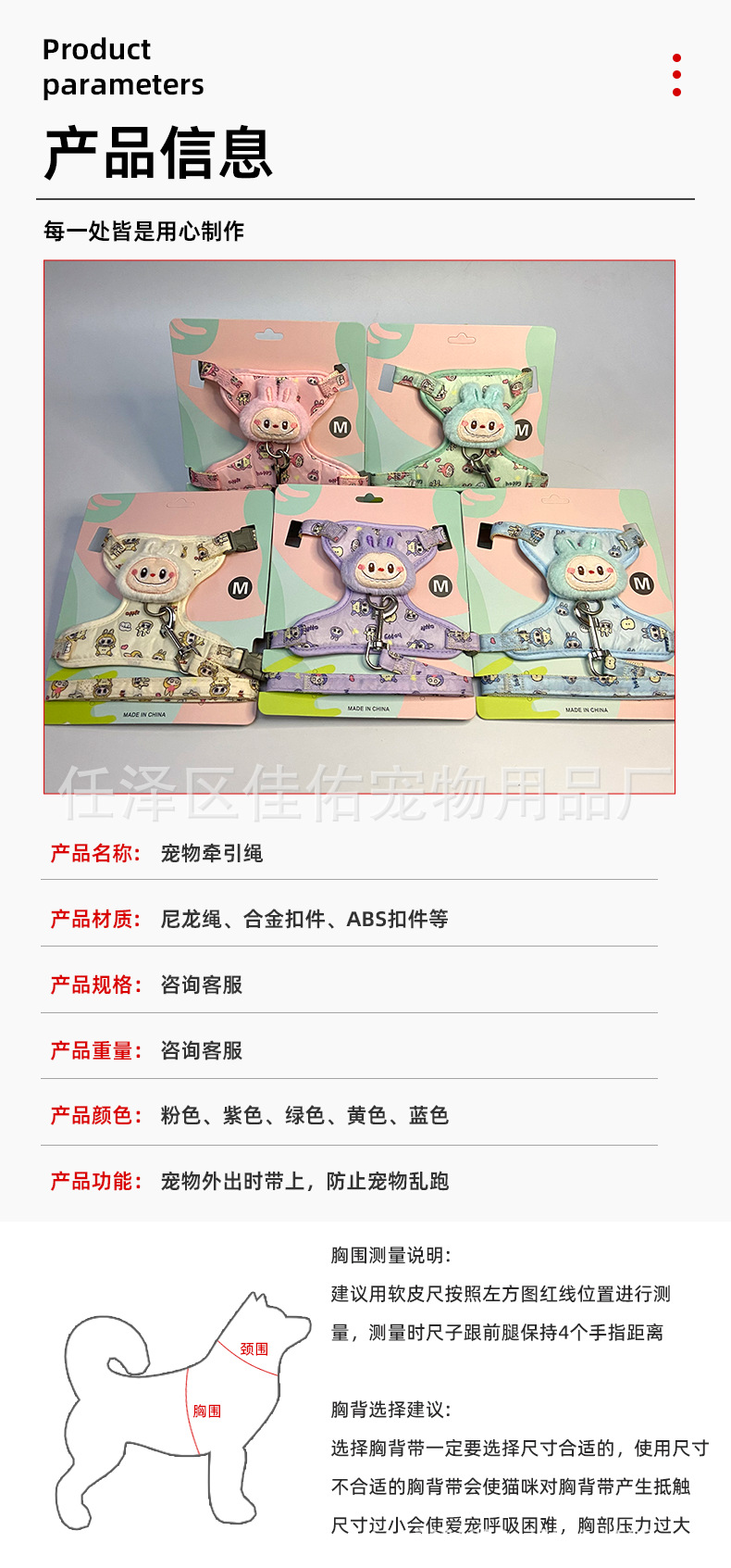 조끼 만화 인형 걷는 고양이와 개 미라 리쉬 애완 동물 가죽 끈 가슴 폭발 방지