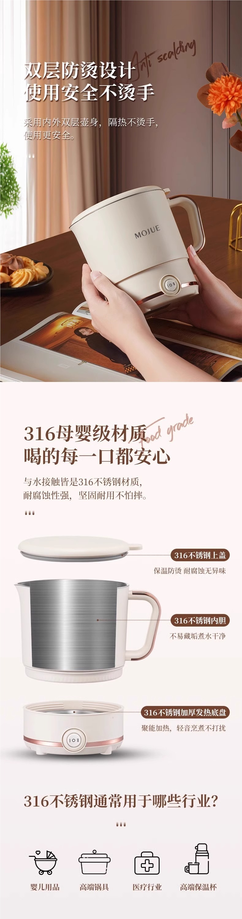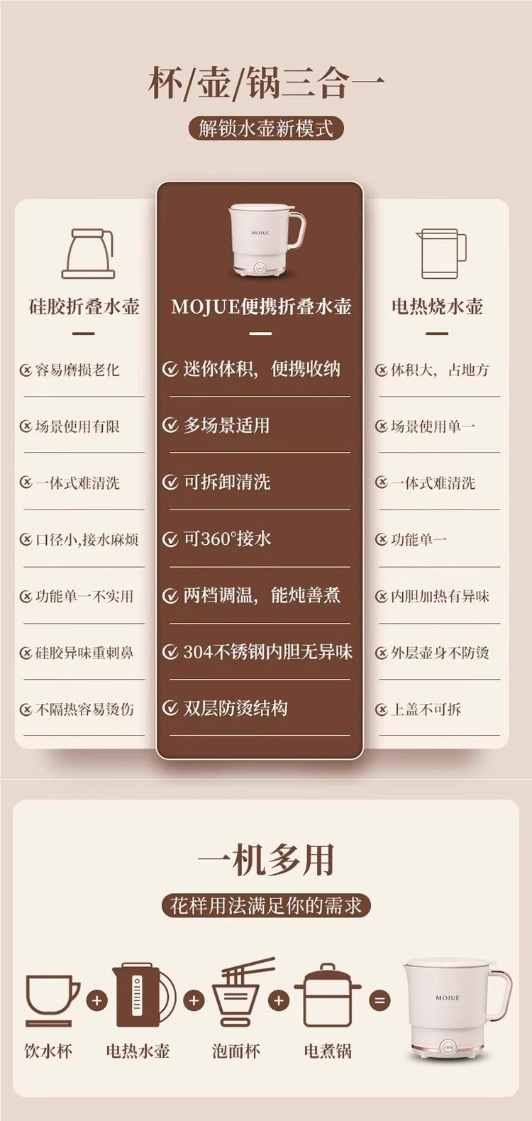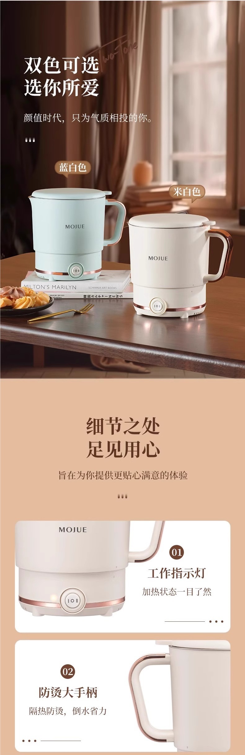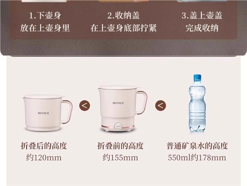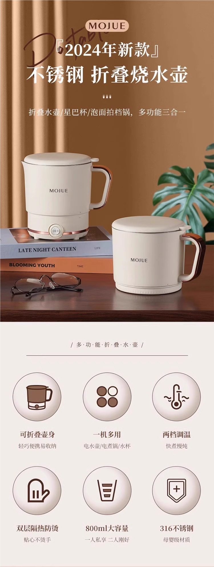 독일 Mojue 휴대용 주전자 여행 사업 접는 절연 통합 전기 주전자 작은 물 컵스토어 가기