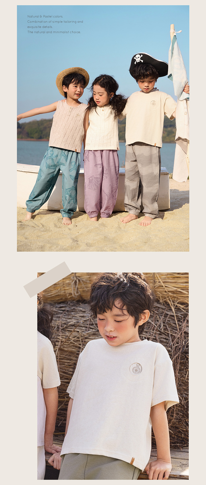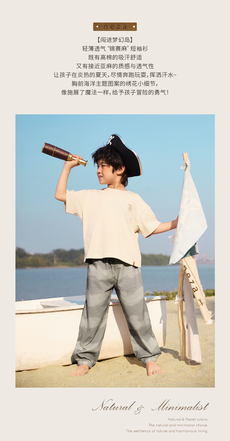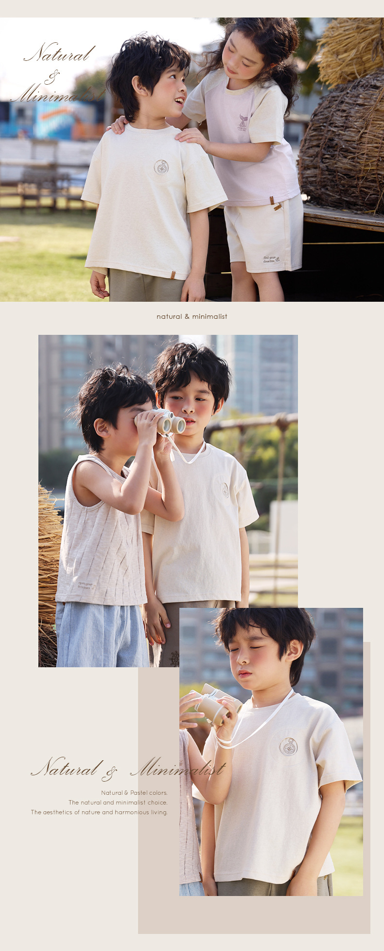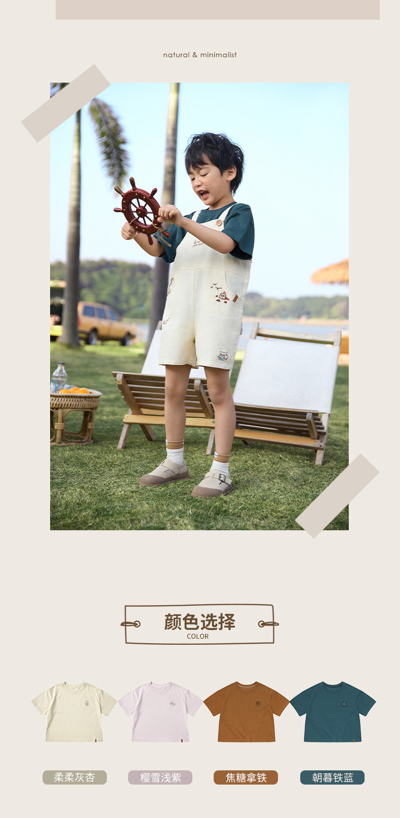 네자 [네버랜드로 침입] 어린이 반팔 여름 착용 얇은 소년 티셔츠 단색 아기 옷 여성 보물 탑