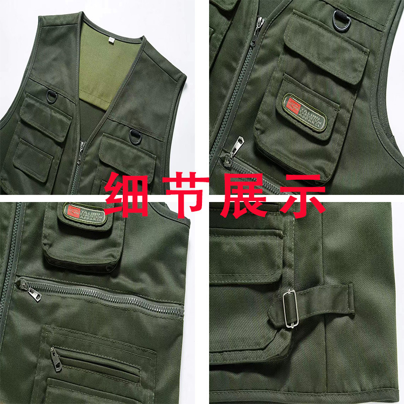 10 포켓 봄과 가을 중년 남성 야외 조끼 멀티 포켓 낚시 등산 플러스 사이즈 웨이스트 코트스토어 가기