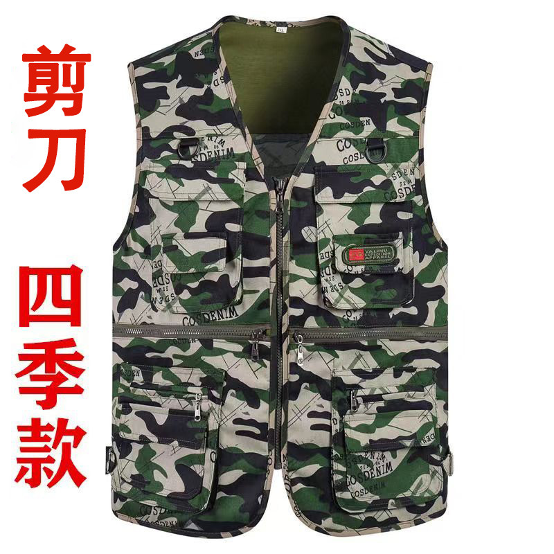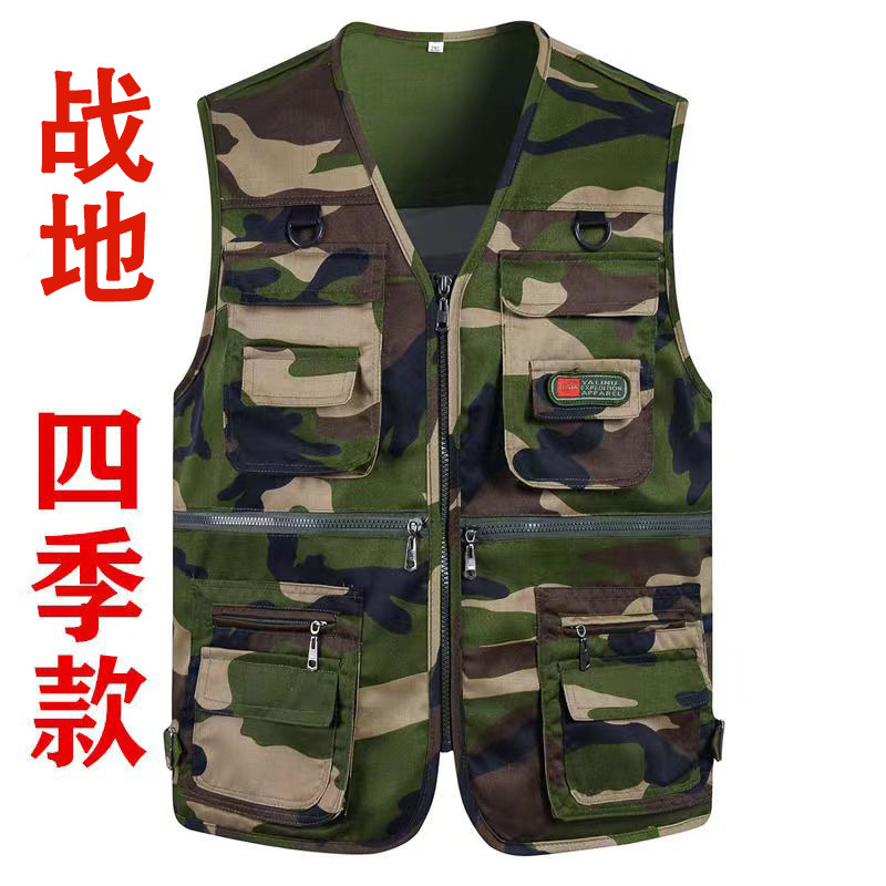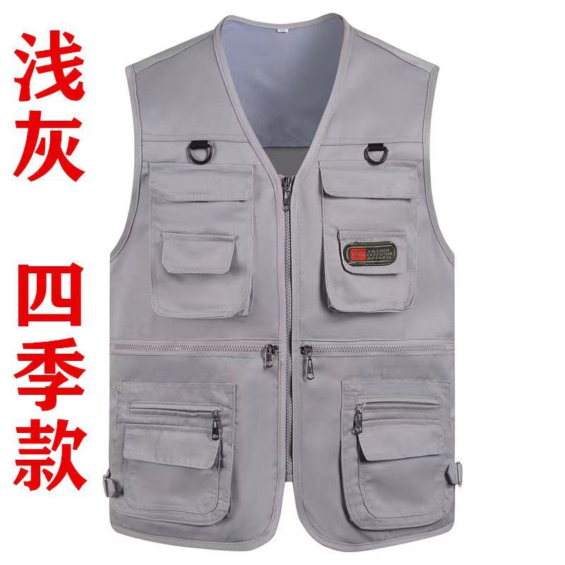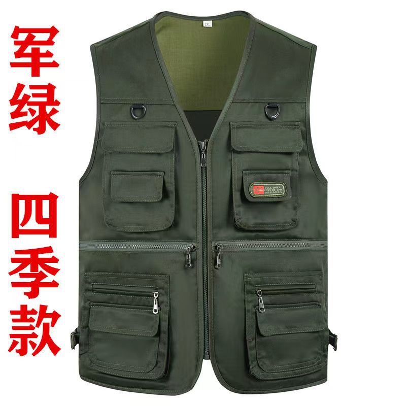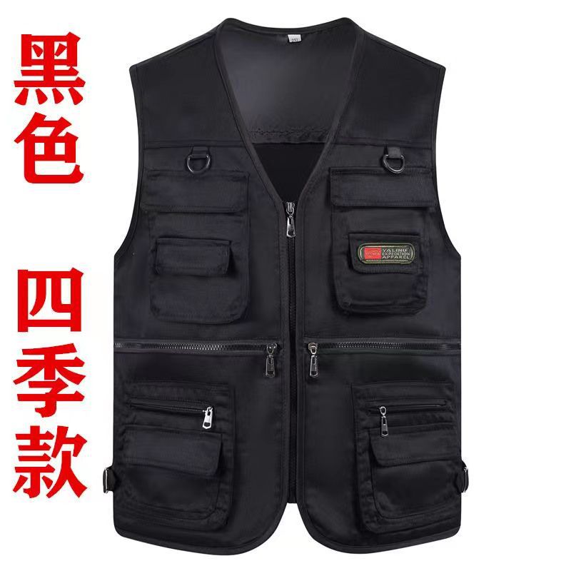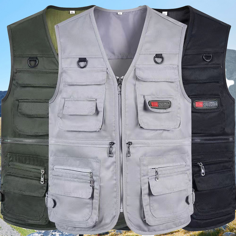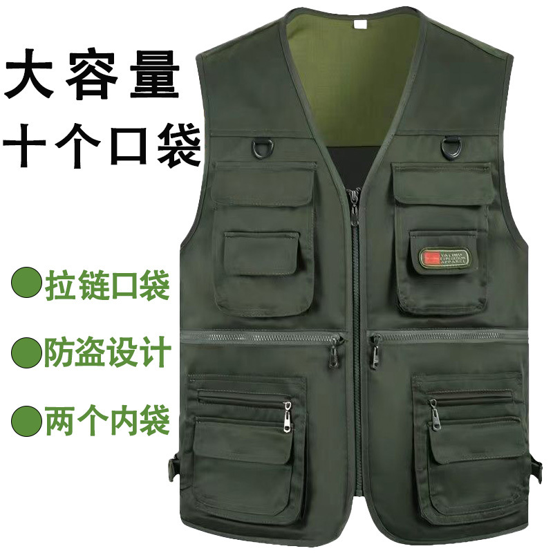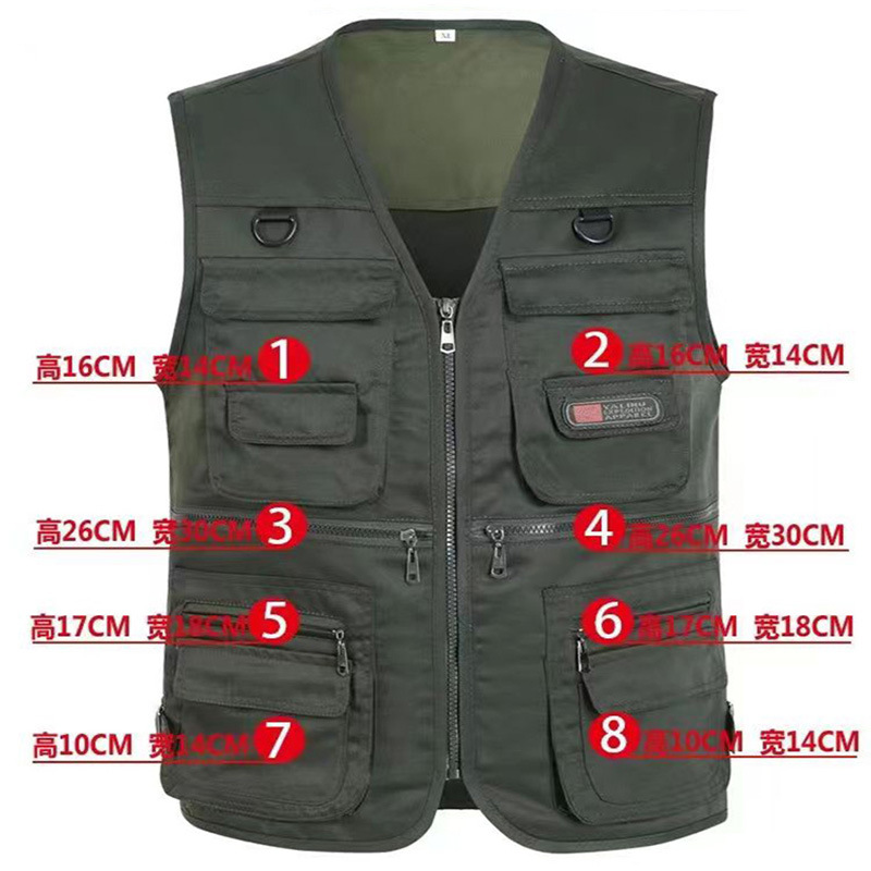 10 포켓 봄과 가을 중년 남성 야외 조끼 멀티 포켓 낚시 등산 플러스 사이즈 웨이스트 코트
