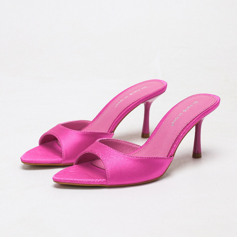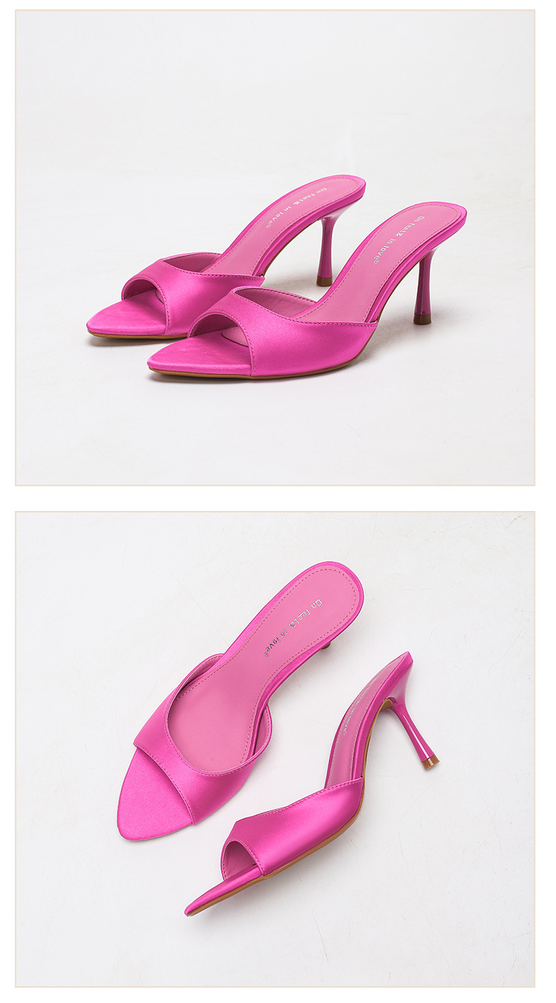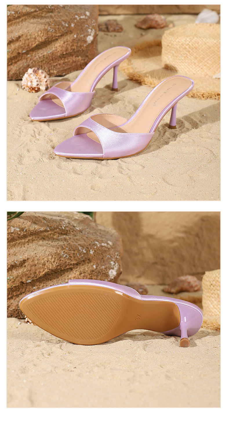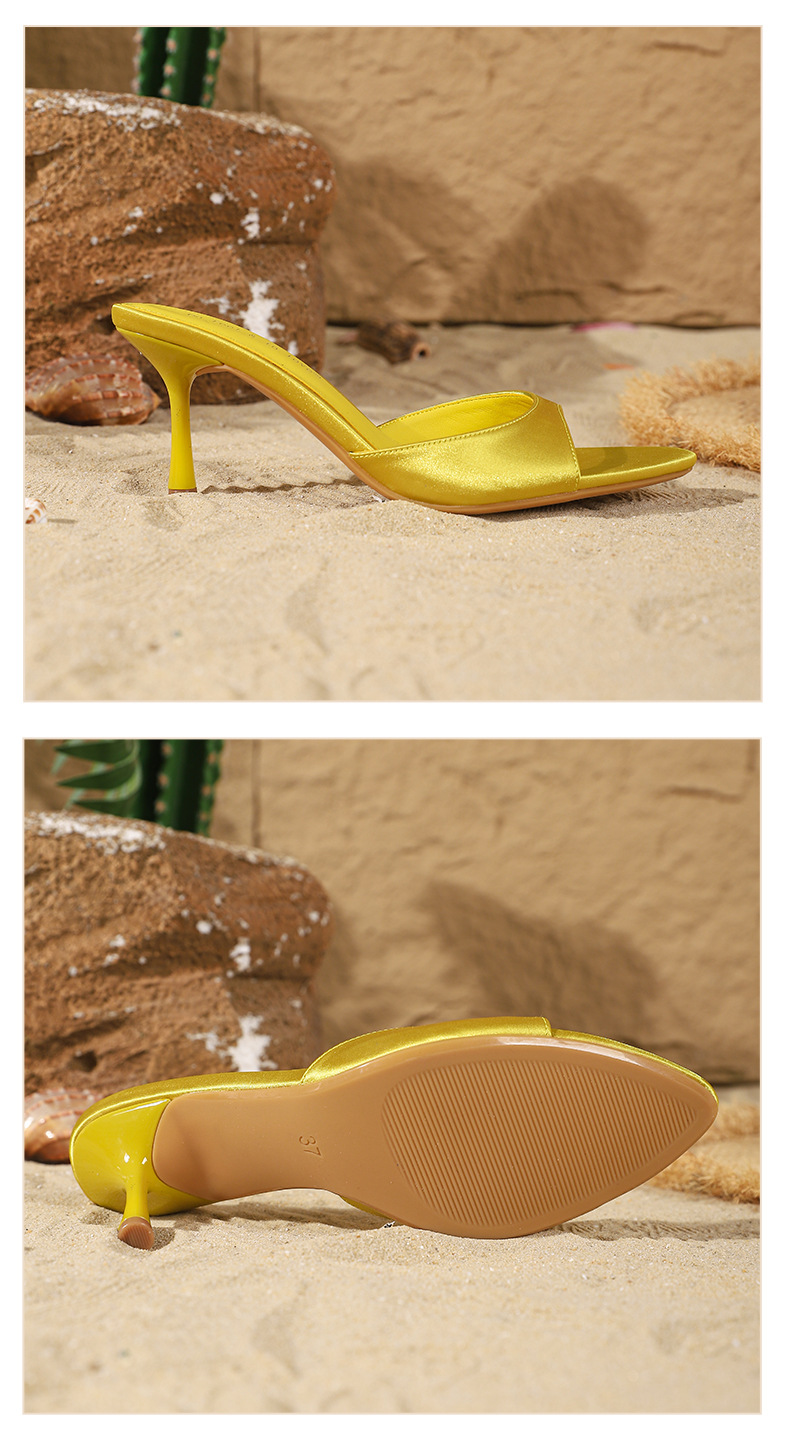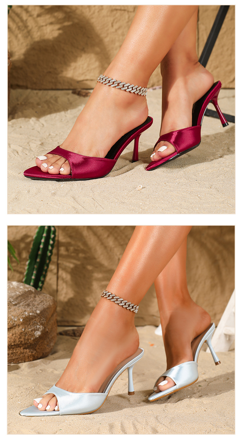 여름 신상 유럽 및 미국 스타일의 뾰족한 앞코 오픈토 멀티 컬러 여성용 하이힐 샌들, 슬림한 굽, 패셔너블하고 심플한 원스트랩 슬리퍼스토어 가기
