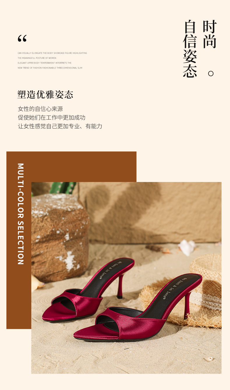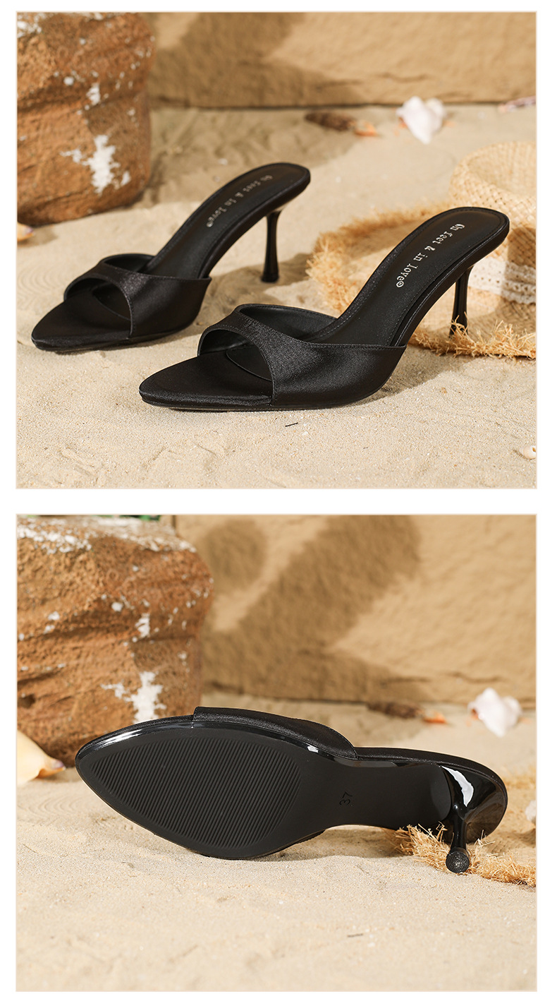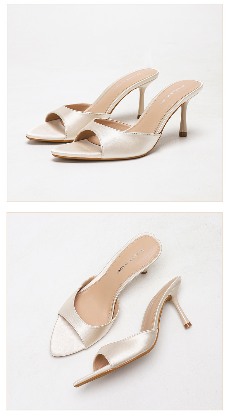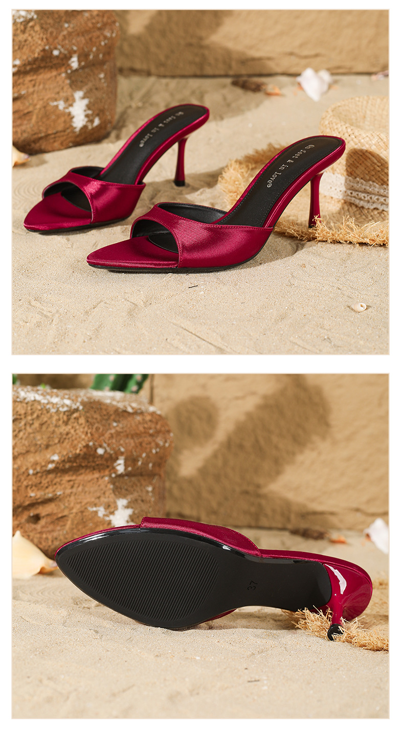 여름 신상 유럽 및 미국 스타일의 뾰족한 앞코 오픈토 멀티 컬러 여성용 하이힐 샌들, 슬림한 굽, 패셔너블하고 심플한 원스트랩 슬리퍼스토어 가기