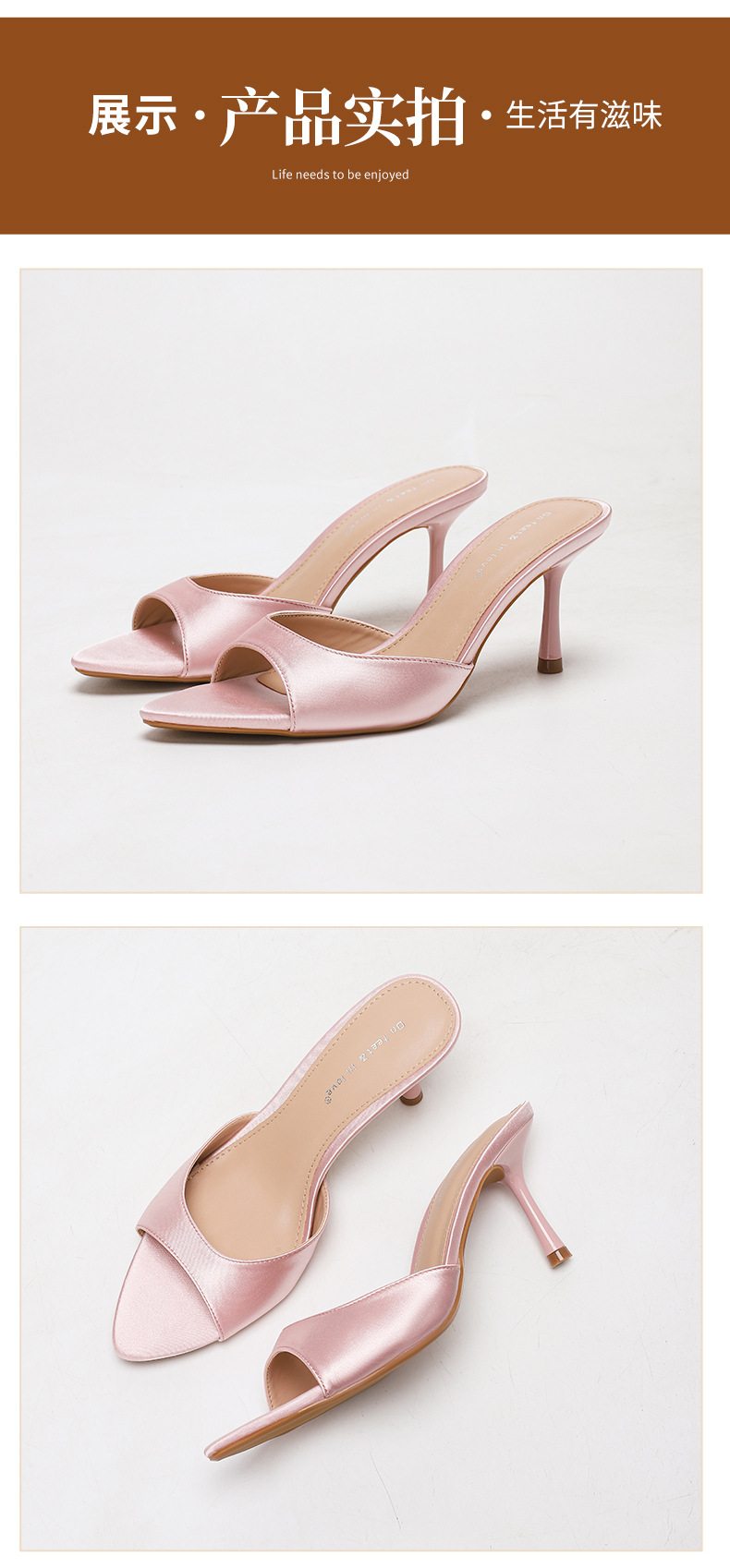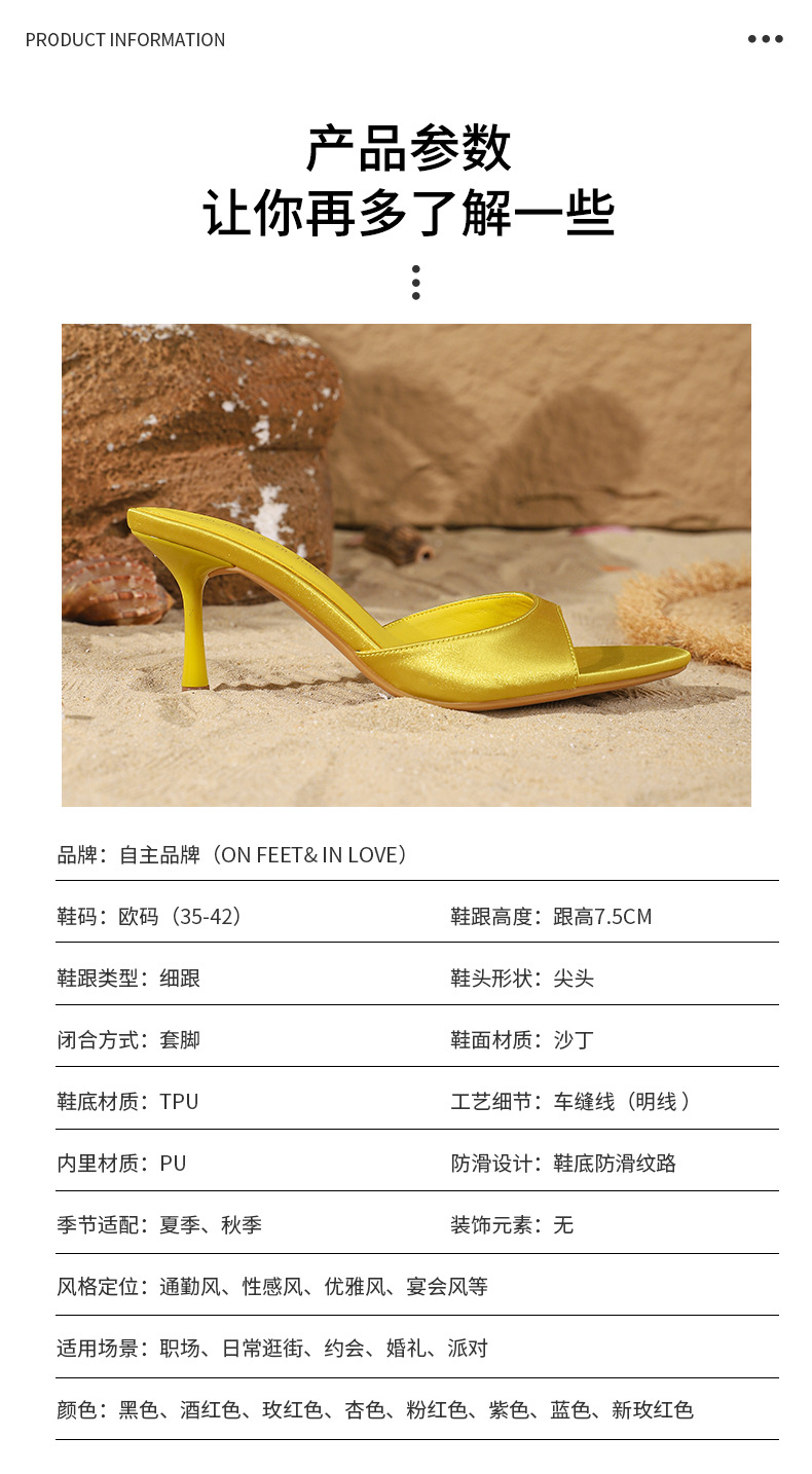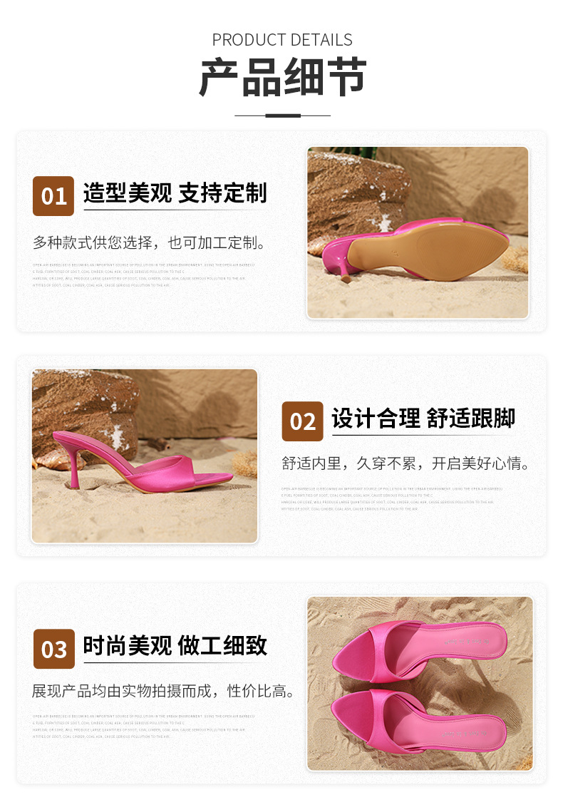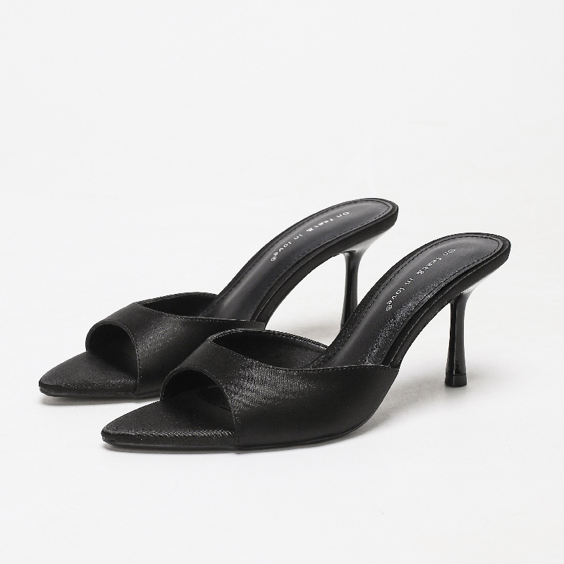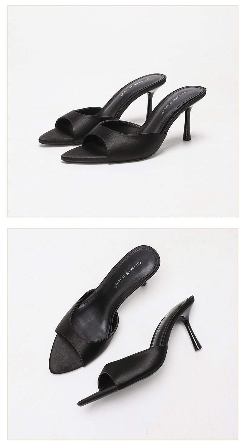 여름 신상 유럽 및 미국 스타일의 뾰족한 앞코 오픈토 멀티 컬러 여성용 하이힐 샌들, 슬림한 굽, 패셔너블하고 심플한 원스트랩 슬리퍼스토어 가기