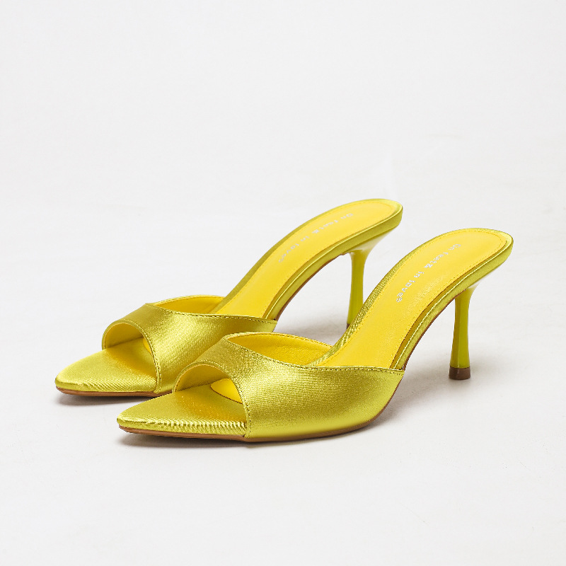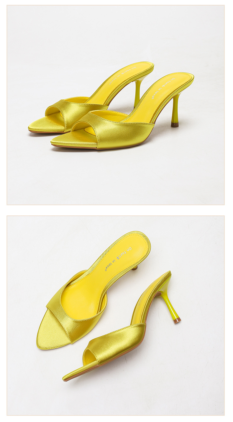 여름 신상 유럽 및 미국 스타일의 뾰족한 앞코 오픈토 멀티 컬러 여성용 하이힐 샌들, 슬림한 굽, 패셔너블하고 심플한 원스트랩 슬리퍼