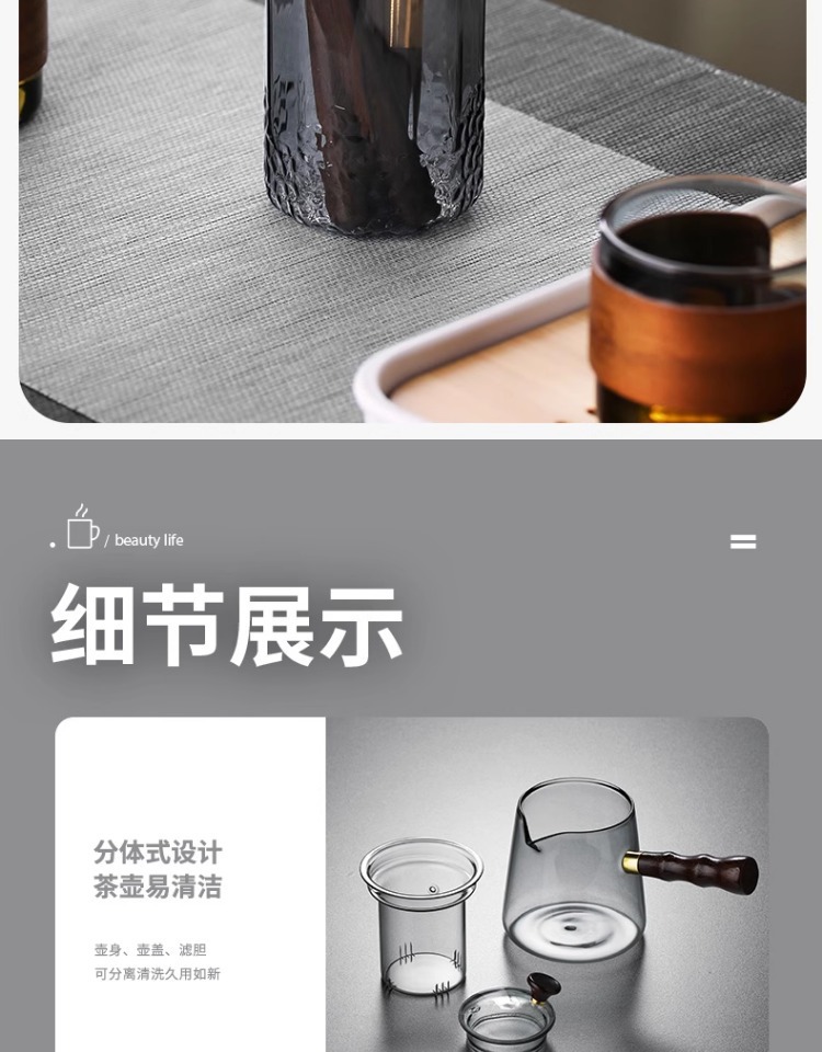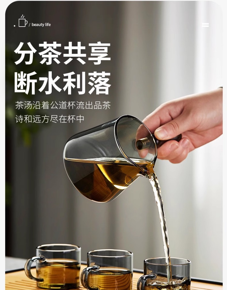 유리 차 세트 세트 가정용 차 트레이 사무실 거실 차 회의 쿵푸 티 컵 내열 주전자 실용적스토어 가기