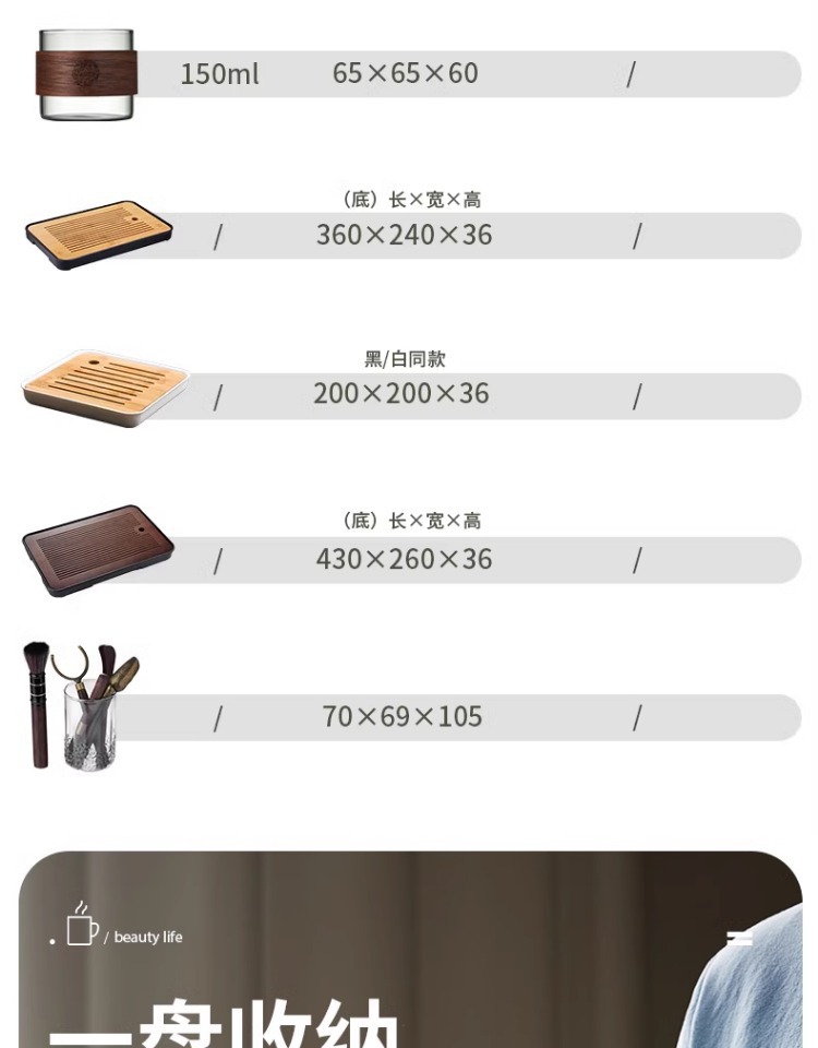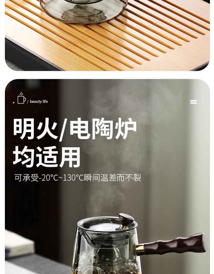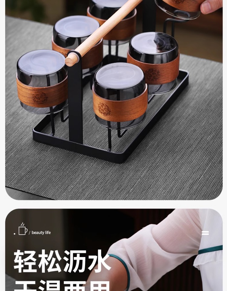유리 차 세트 세트 가정용 차 트레이 사무실 거실 차 회의 쿵푸 티 컵 내열 주전자 실용적