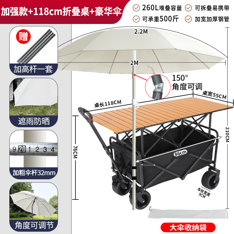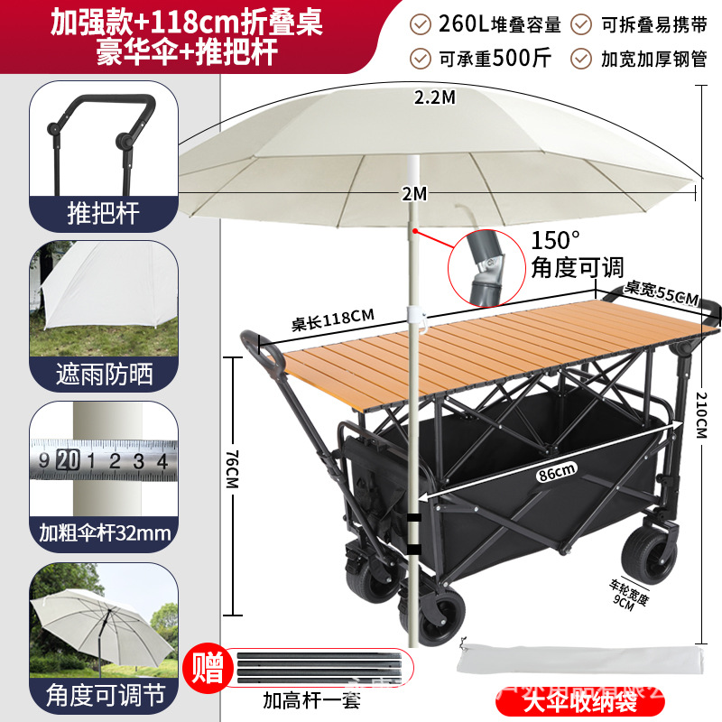• 강화 버전 + 푸시 핸들, 카트 설치 + 118cm 확장 접이식 테이블 + 고급 우산