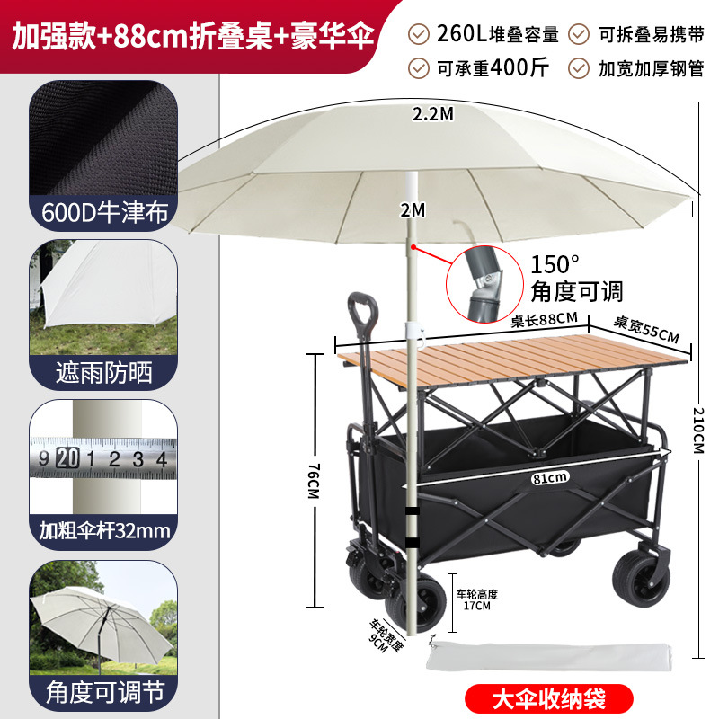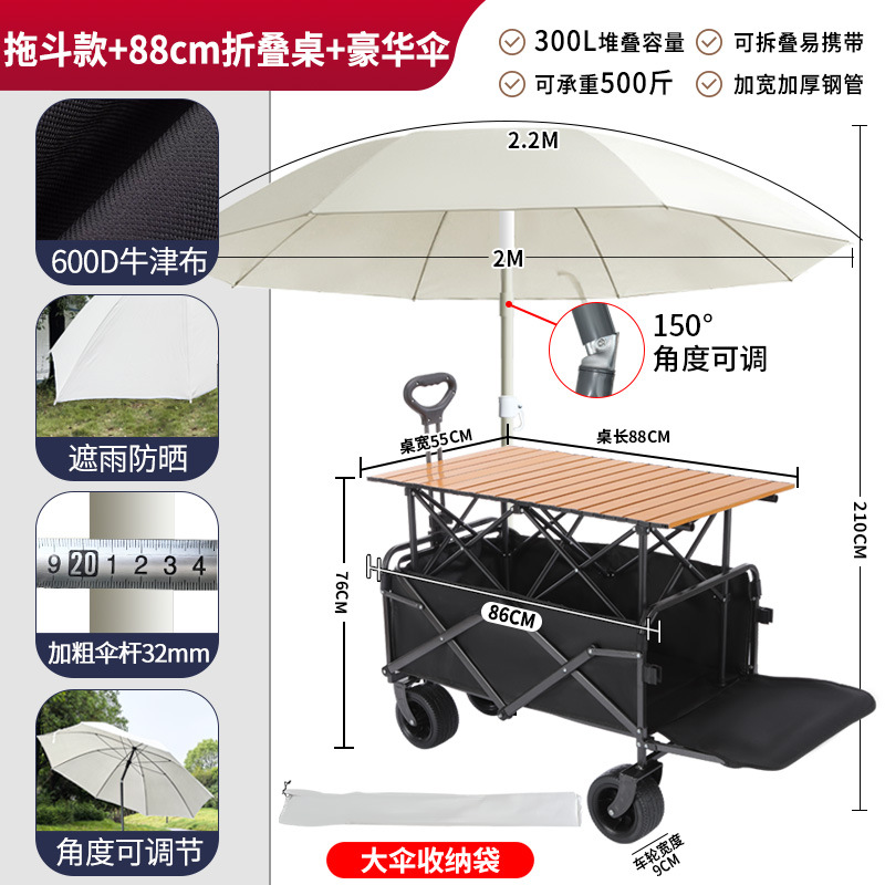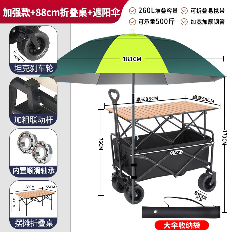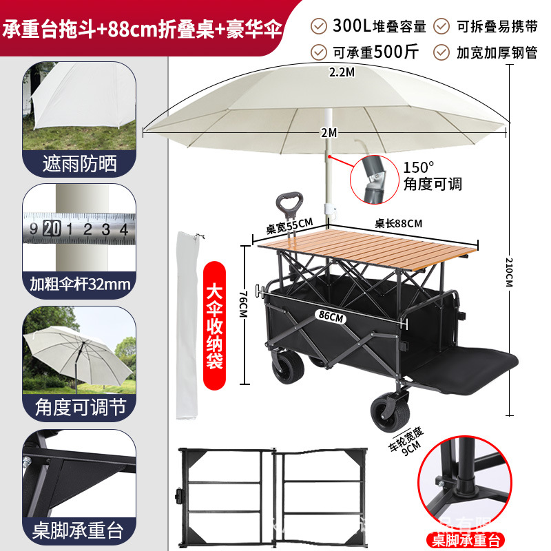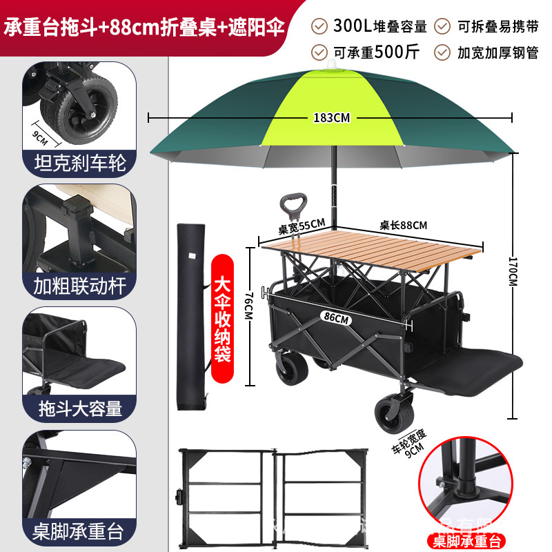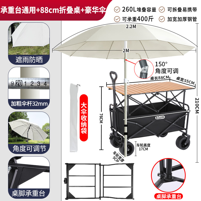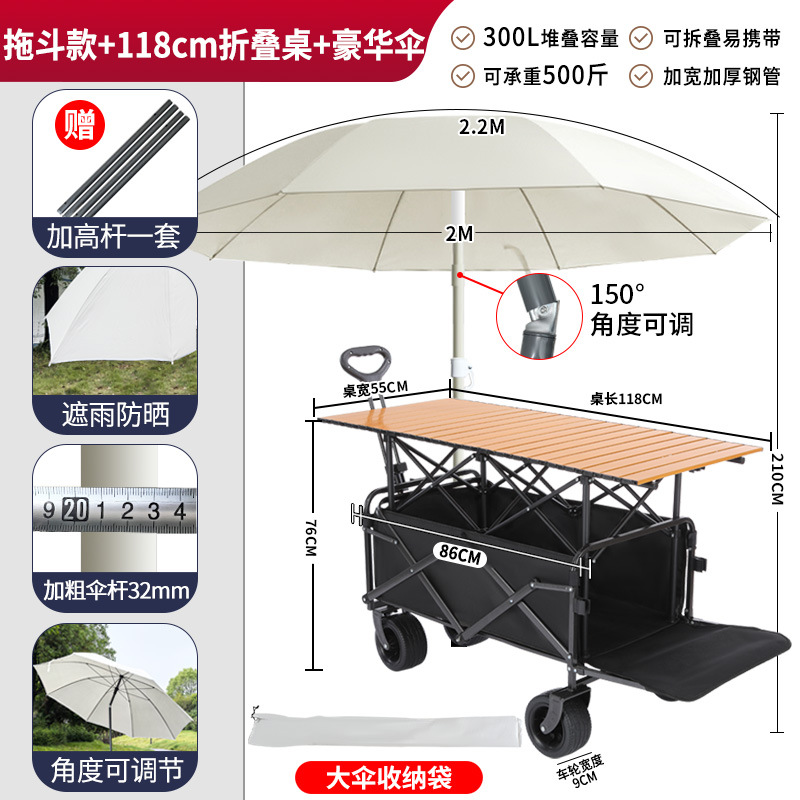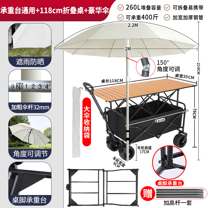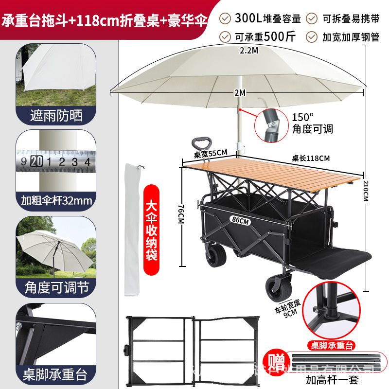 • 견인 버킷 모델 + 내하중 플랫폼, 매대 트롤리 + 148cm 확장 접이식 테이블 + 고급 우산