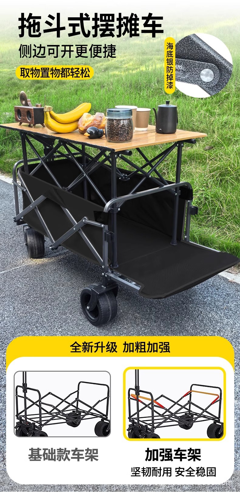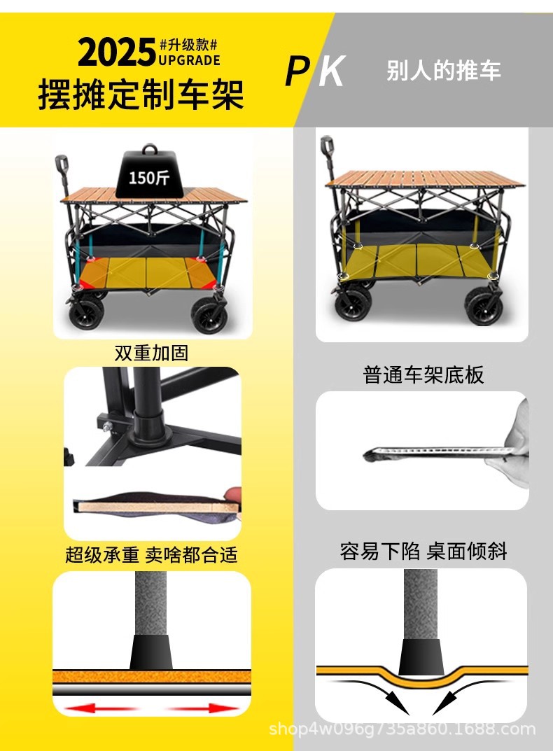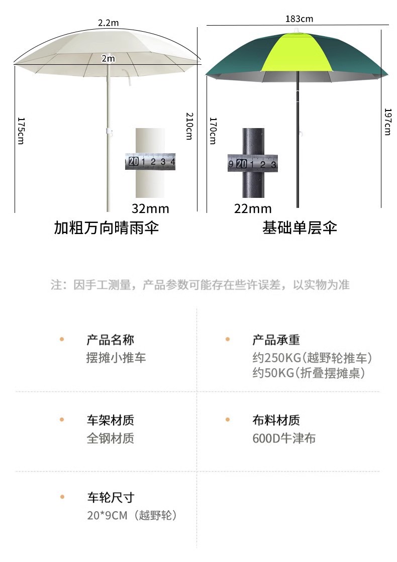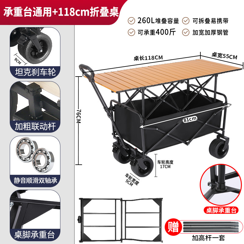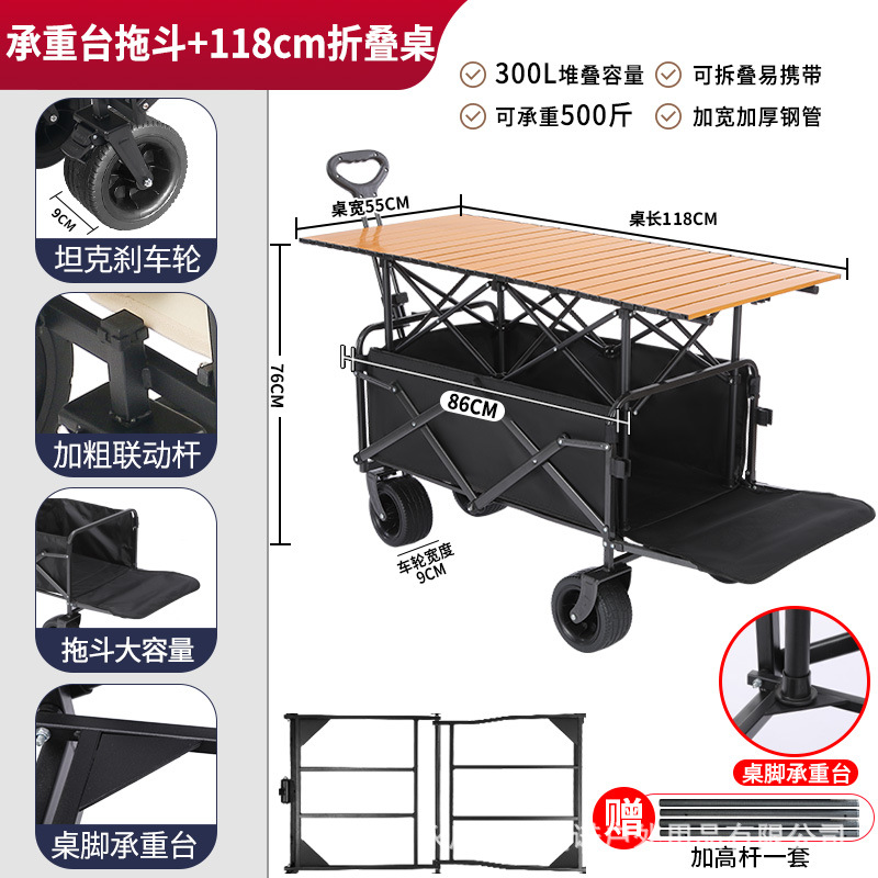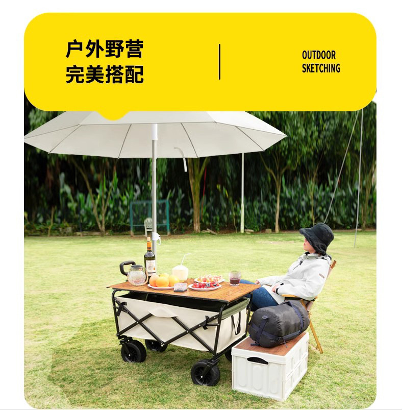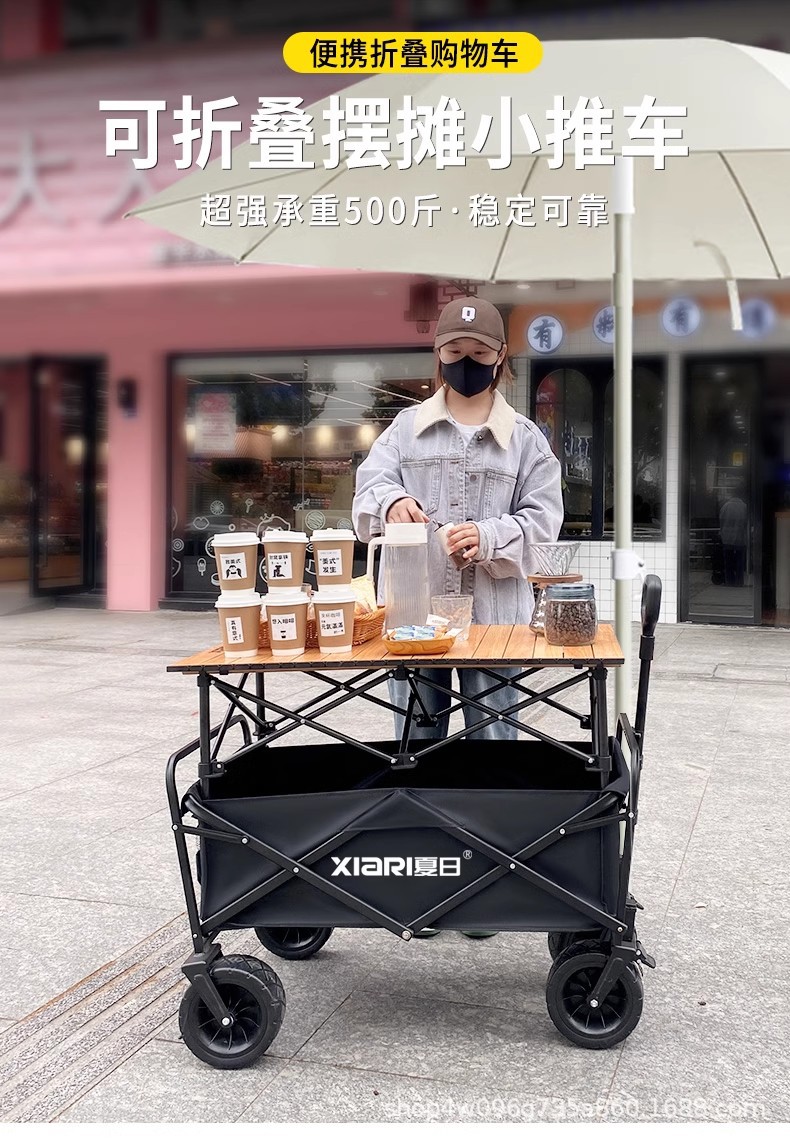 • 견인 버킷 모델 + 내하중 플랫폼, 매대 트롤리 + 148cm 확장 접이식 테이블 + 고급 우산