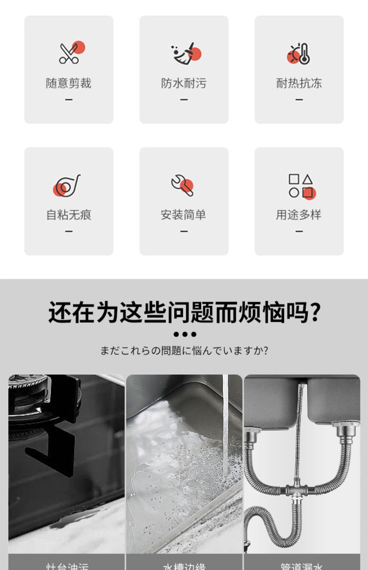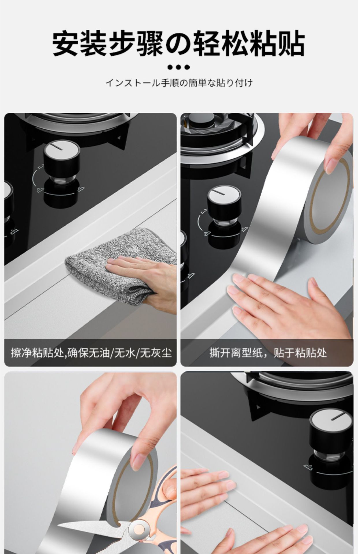 일본 주방 내유성 스티커 스토브 방수 가장자리 밀봉 가스 스토브 내유성 스티커 곰팡이 방지 자체 접착 성 고온 내성 스티커
