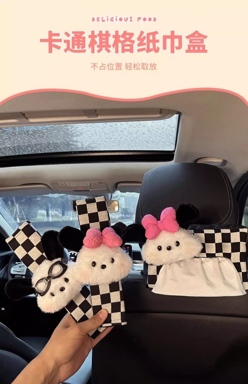 • 파차견 체커보드 티슈박스 + 체커보드 어깨패드