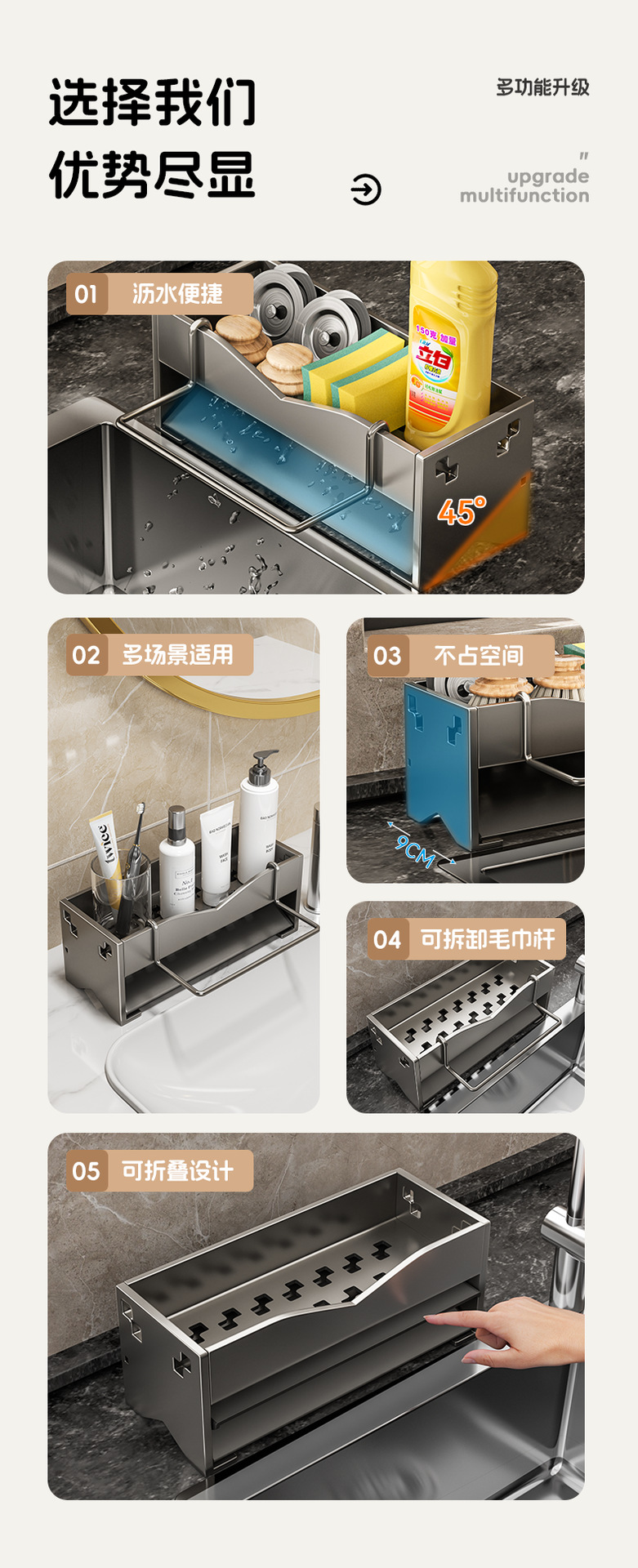 국경 간 주방 걸레 보관 랙 세제 스폰지 식기 세척 브러시 배수 랙 싱크대 사이드 타월 보관 랙