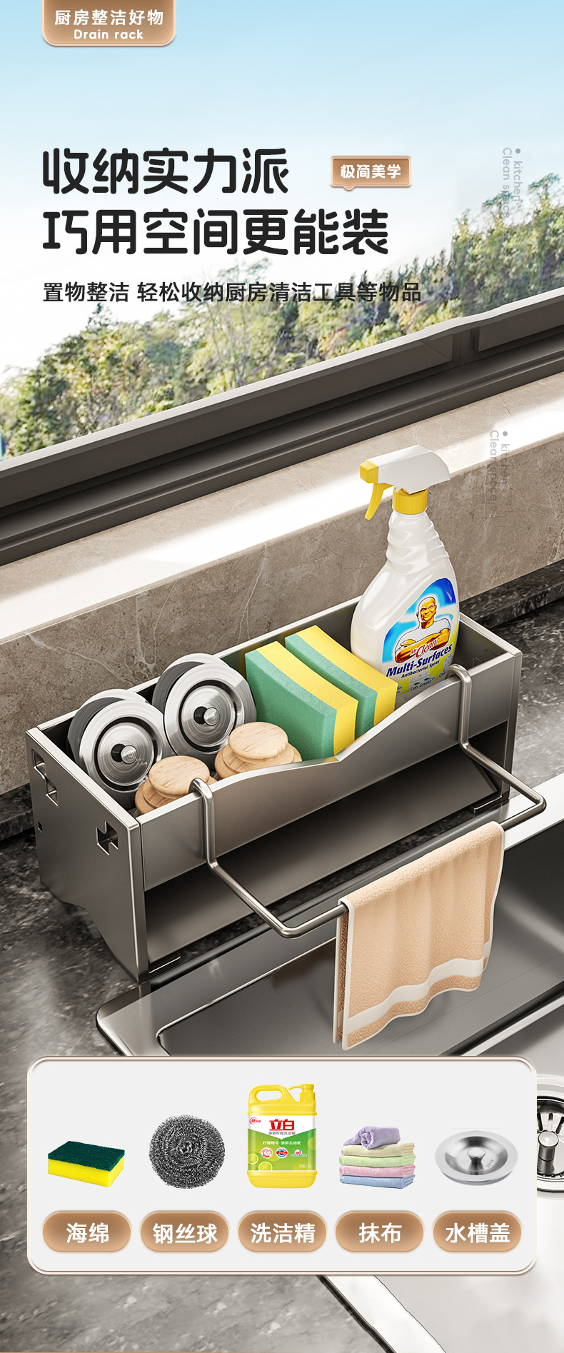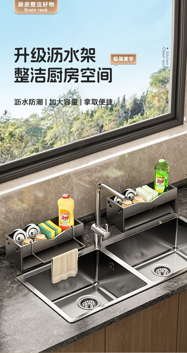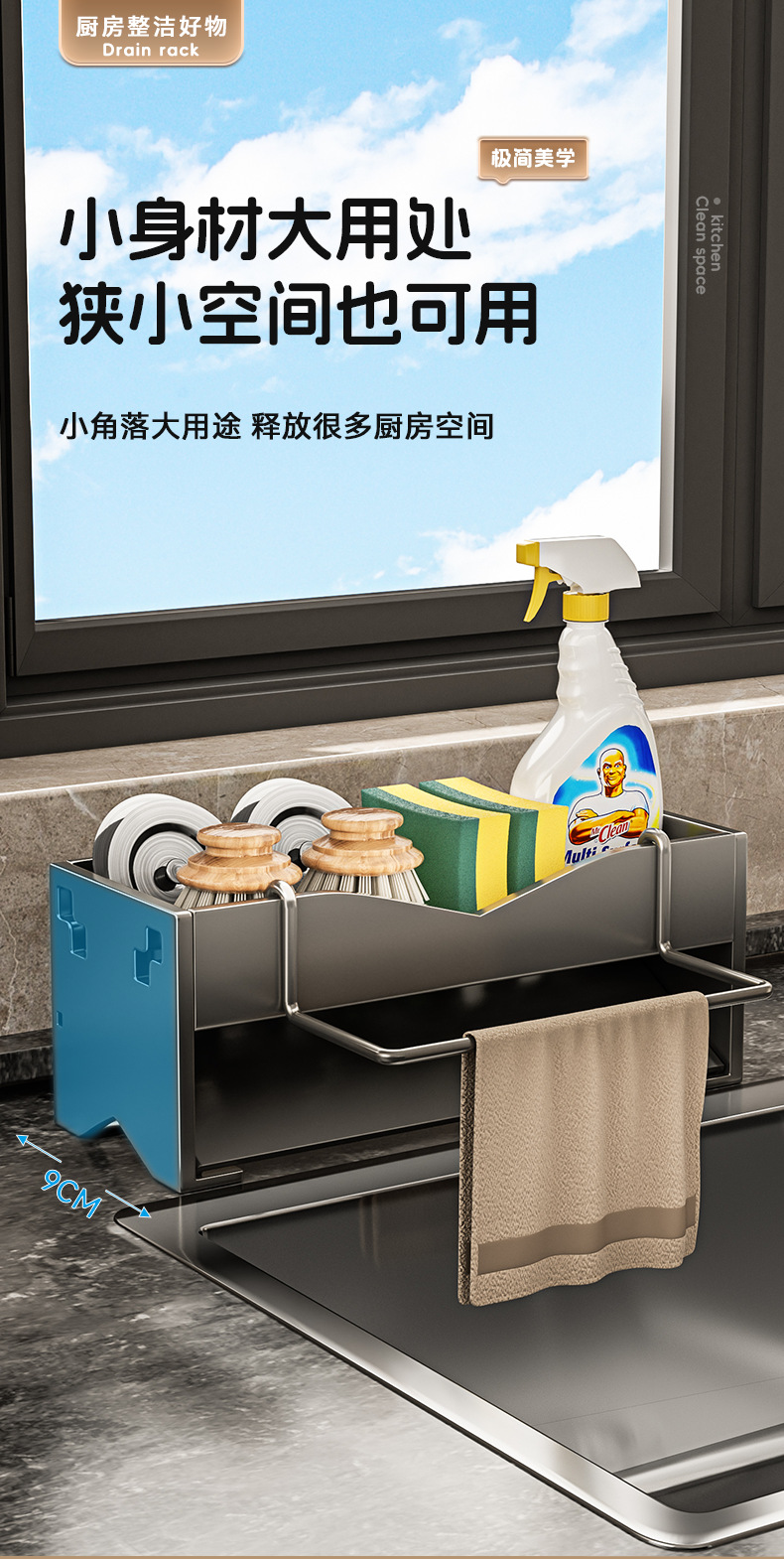 국경 간 주방 걸레 보관 랙 세제 스폰지 식기 세척 브러시 배수 랙 싱크대 사이드 타월 보관 랙스토어 가기