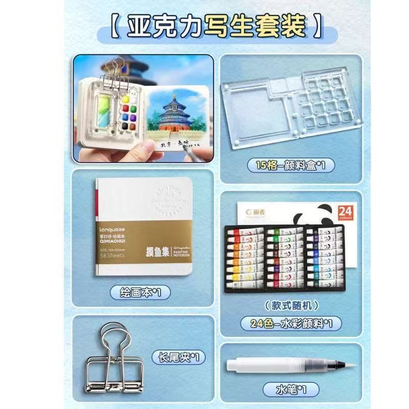 • 나무 8개 그리드 + 페인트 12색 + 드로잉 북 + 클립 + 펜