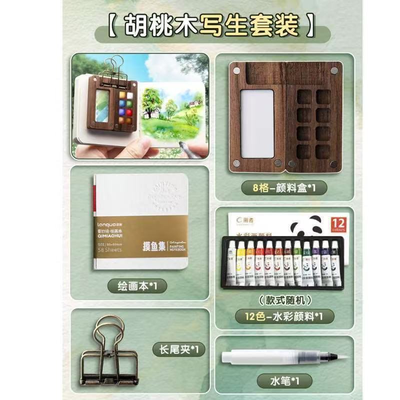 미니 수채화 페인트 상자 세트 휴대용 손 계정 스케치 여행 그림 이 색상 조정 스케치 패드 세트 자기 흡수스토어 가기