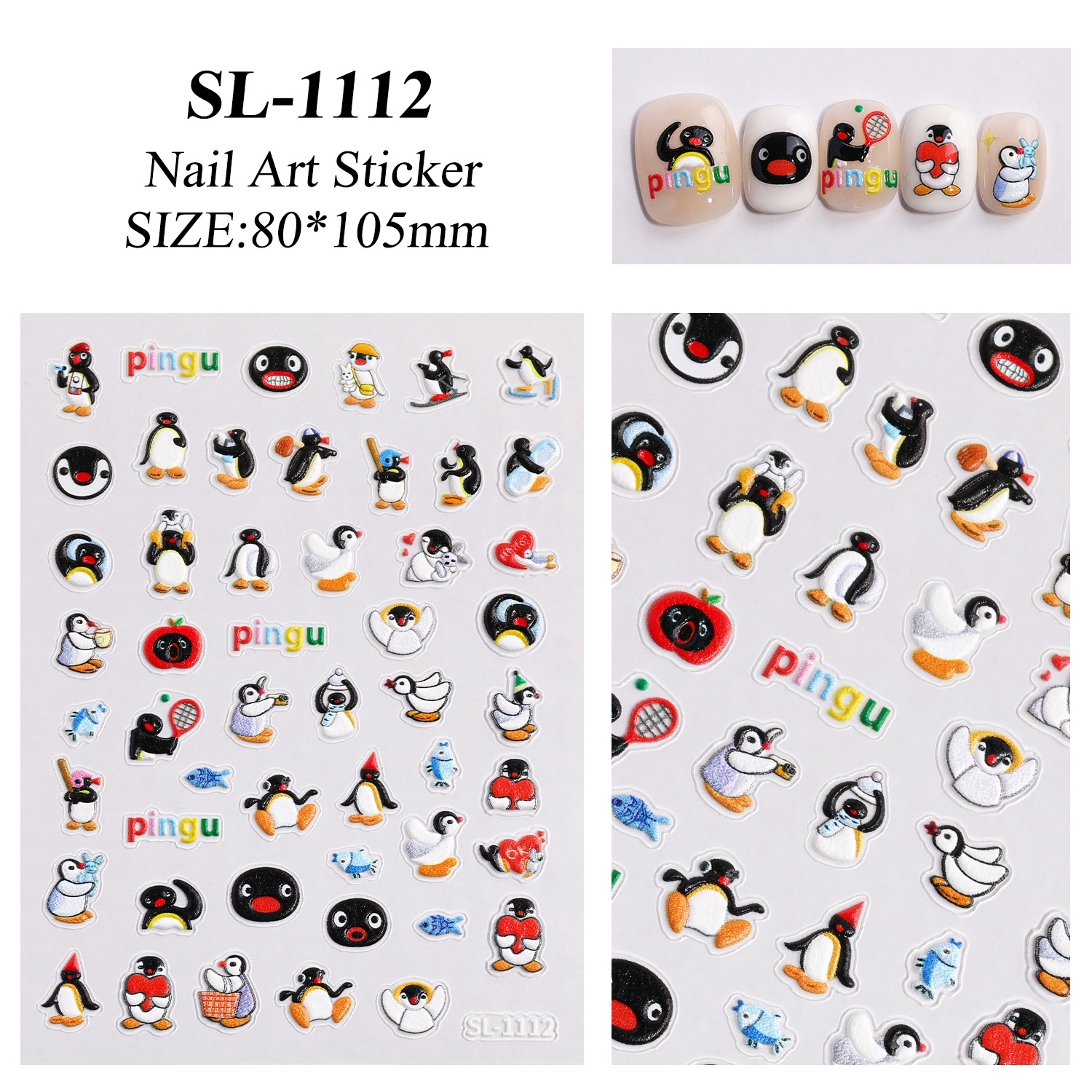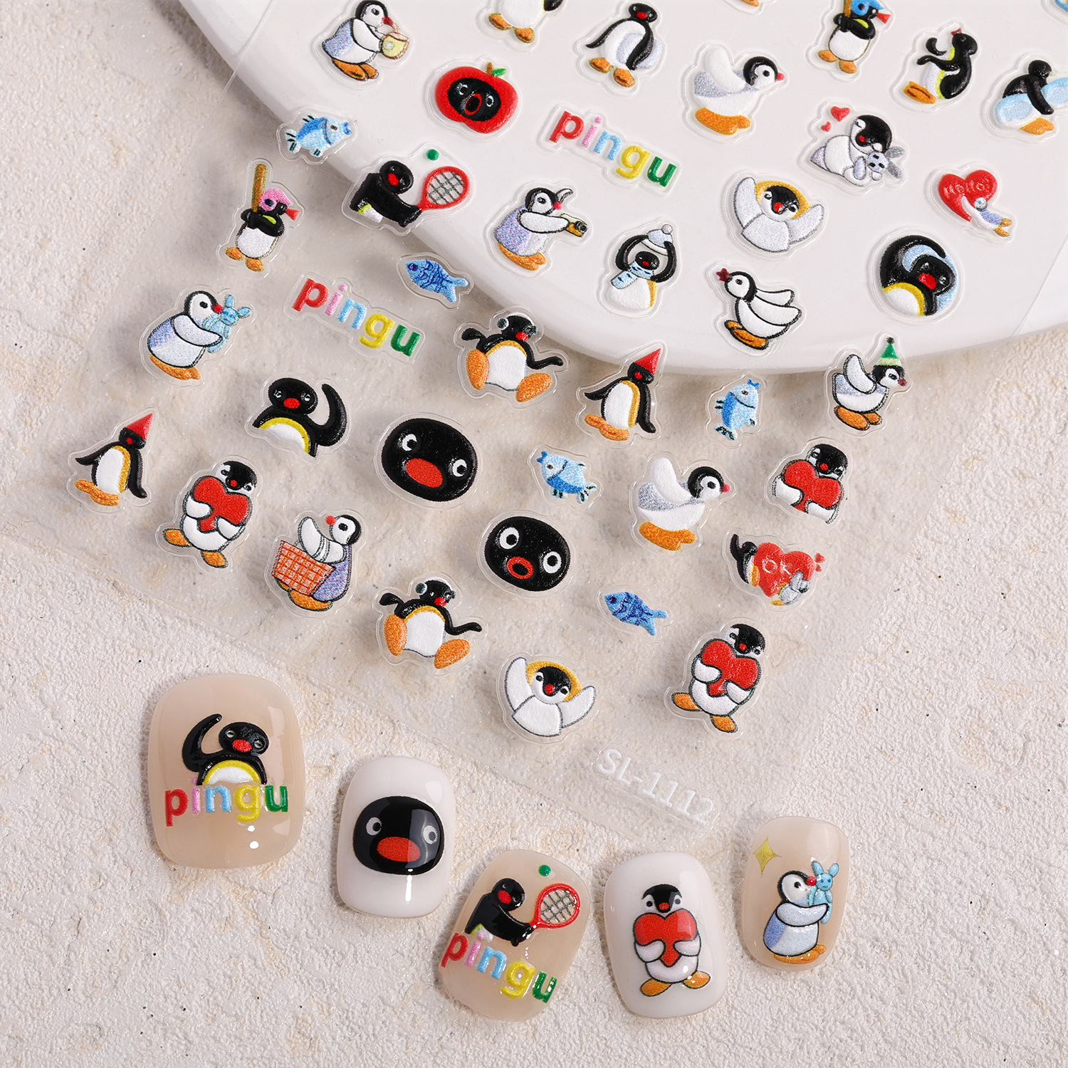 귀여운 작은 펭귄 네일 스티커 5D 구호 3 차원 귀여운 핑구 펭귄 네일 아트 스티커 보석 SL스토어 가기