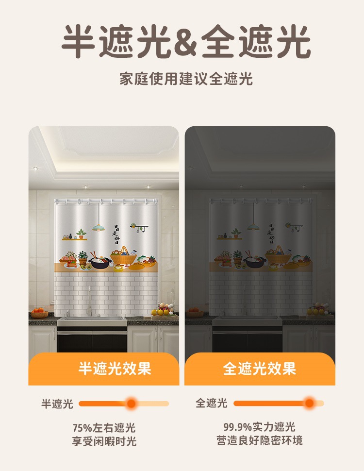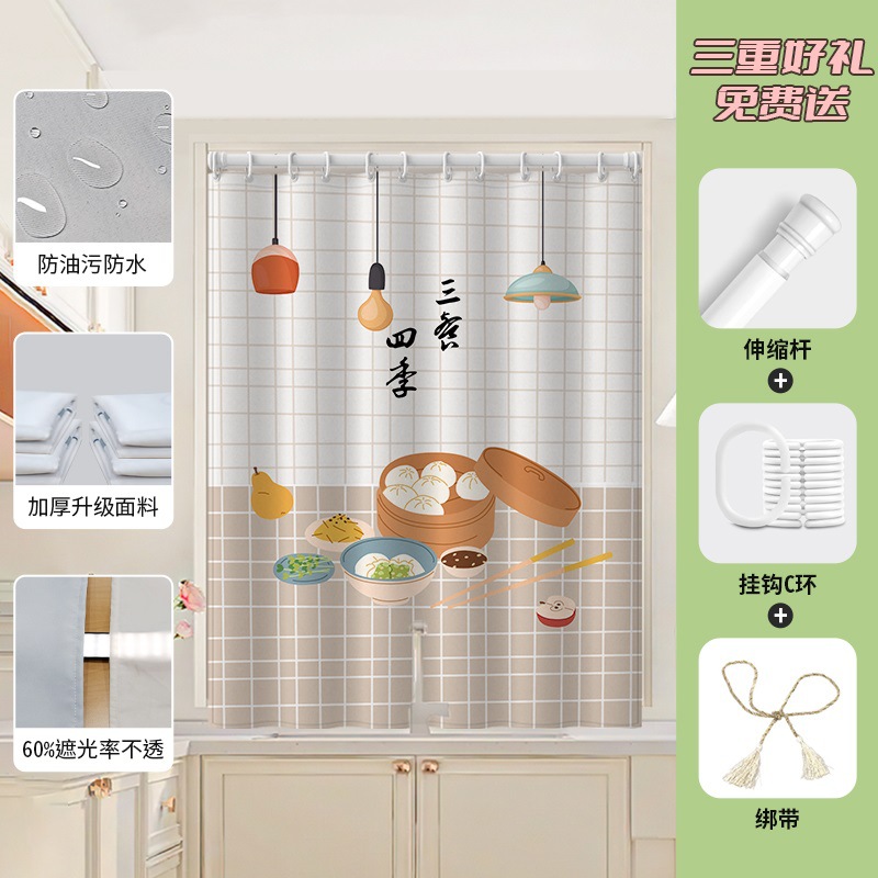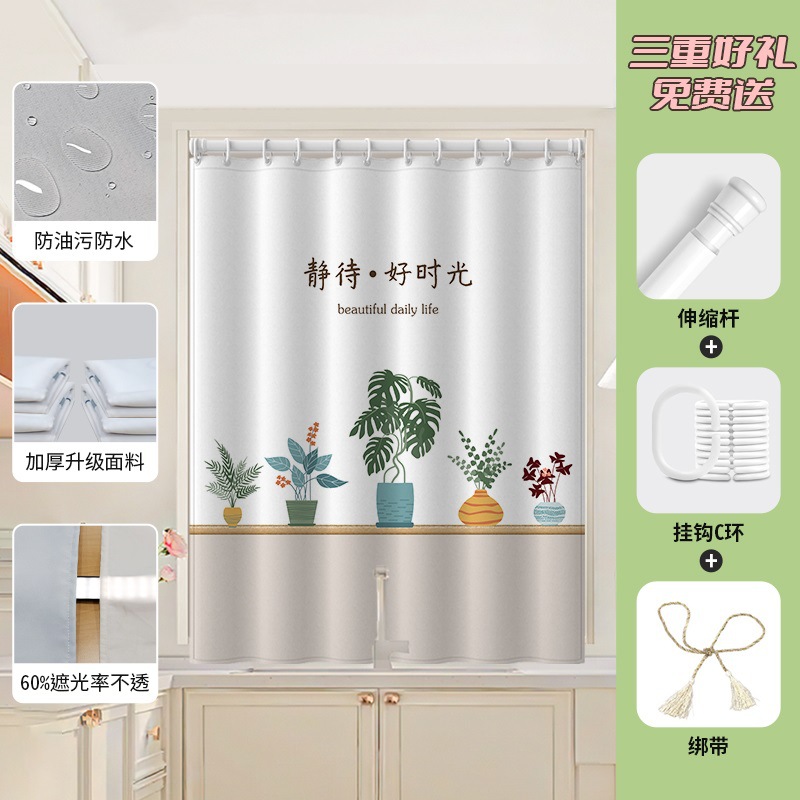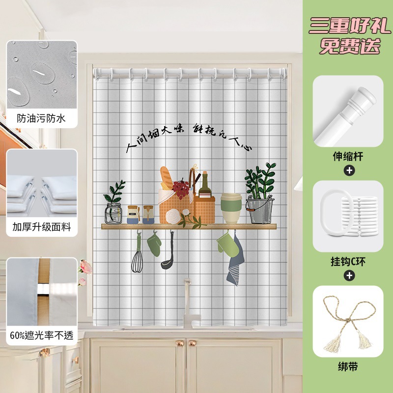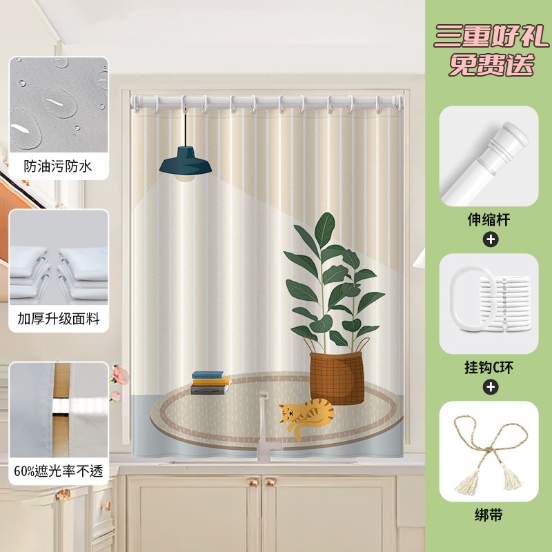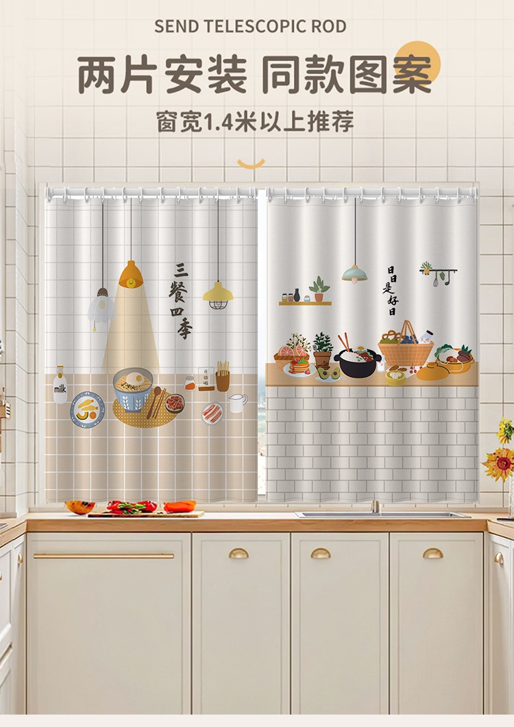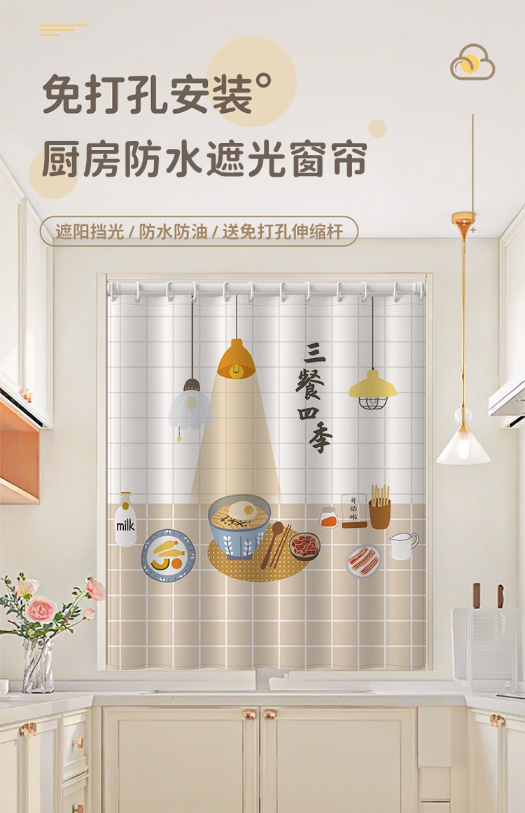 특수 커튼 주방 펀치 방수 및 내유성 음영 커튼 텔레스코픽 로드 설치 특수 창 음영 커튼스토어 가기