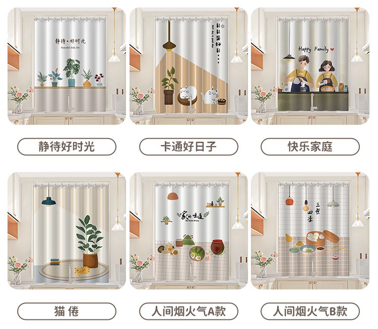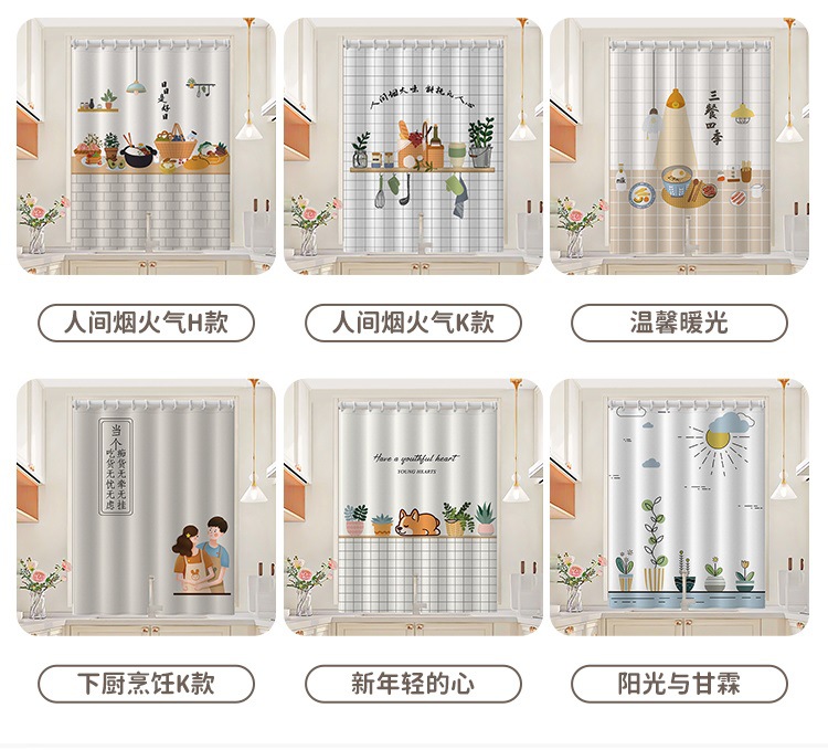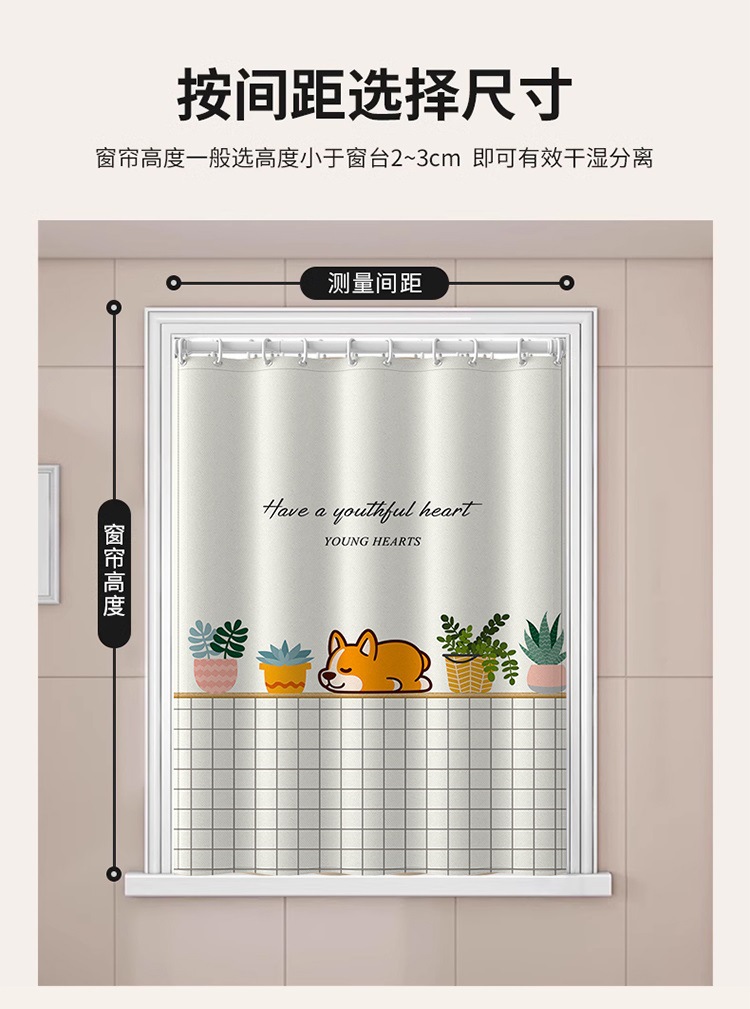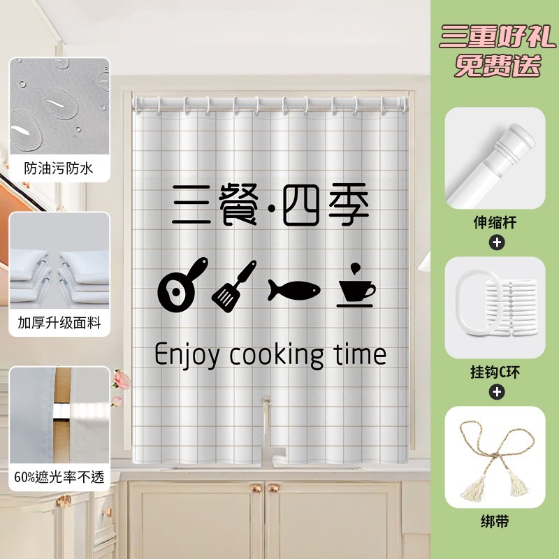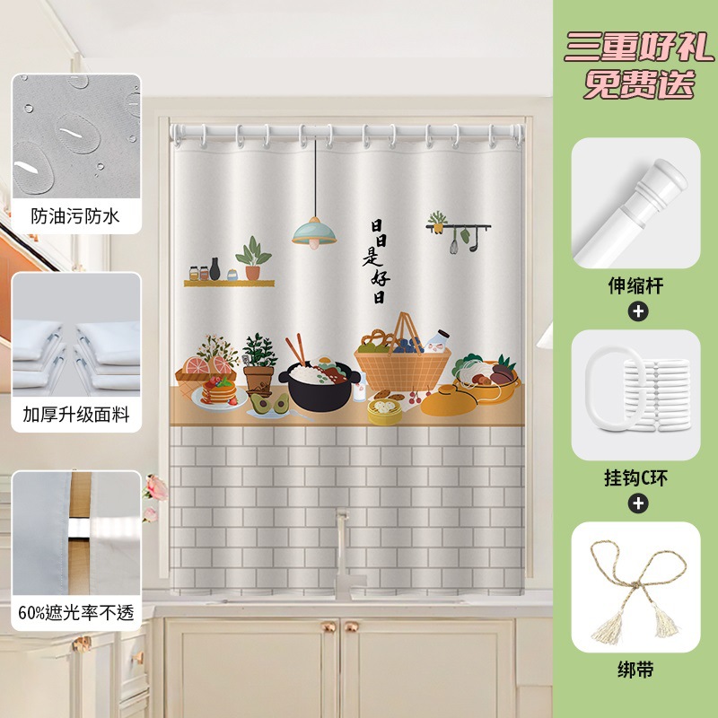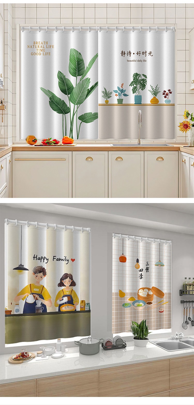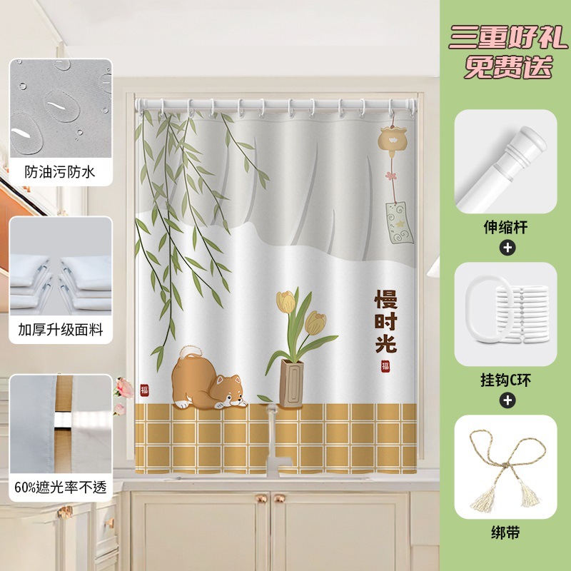 특수 커튼 주방 펀치 방수 및 내유성 음영 커튼 텔레스코픽 로드 설치 특수 창 음영 커튼스토어 가기