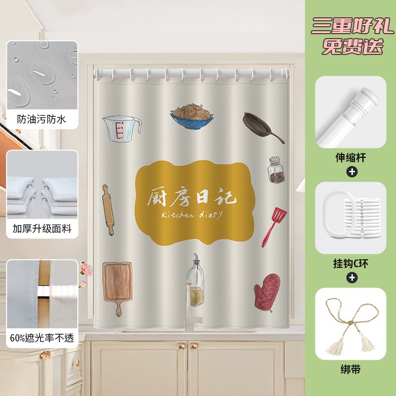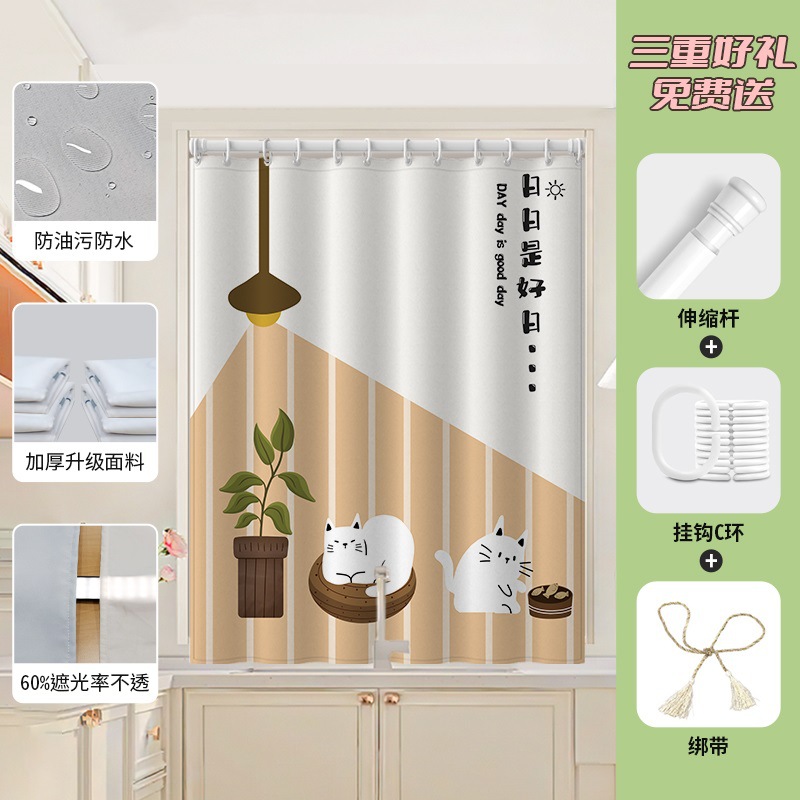 특수 커튼 주방 펀치 방수 및 내유성 음영 커튼 텔레스코픽 로드 설치 특수 창 음영 커튼
