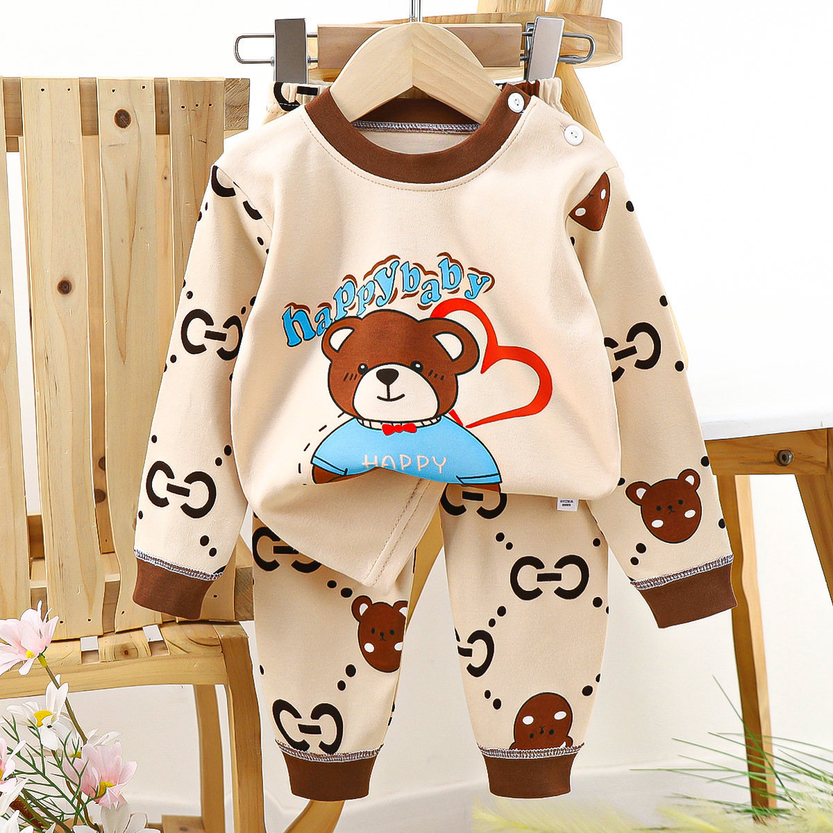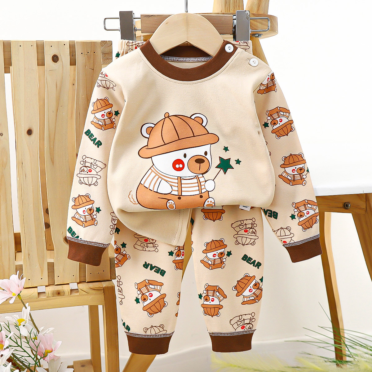 2025 어린이 면화 속옷 세트 소년 소녀 잠옷 가을 바지 세트