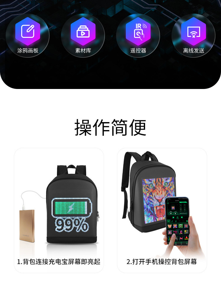 Led 광고 배낭 남성 발광 디스플레이 프로모션 대학생 스쿨 백 여성 온라인 인기 동적 운전 방수 배낭