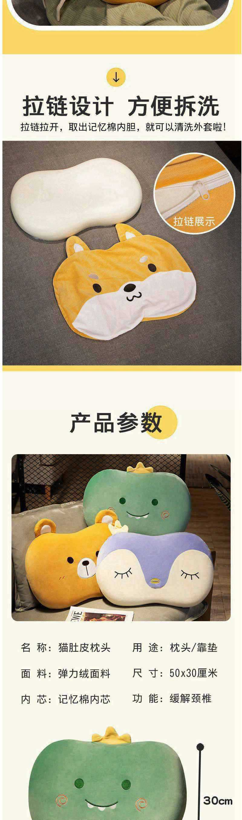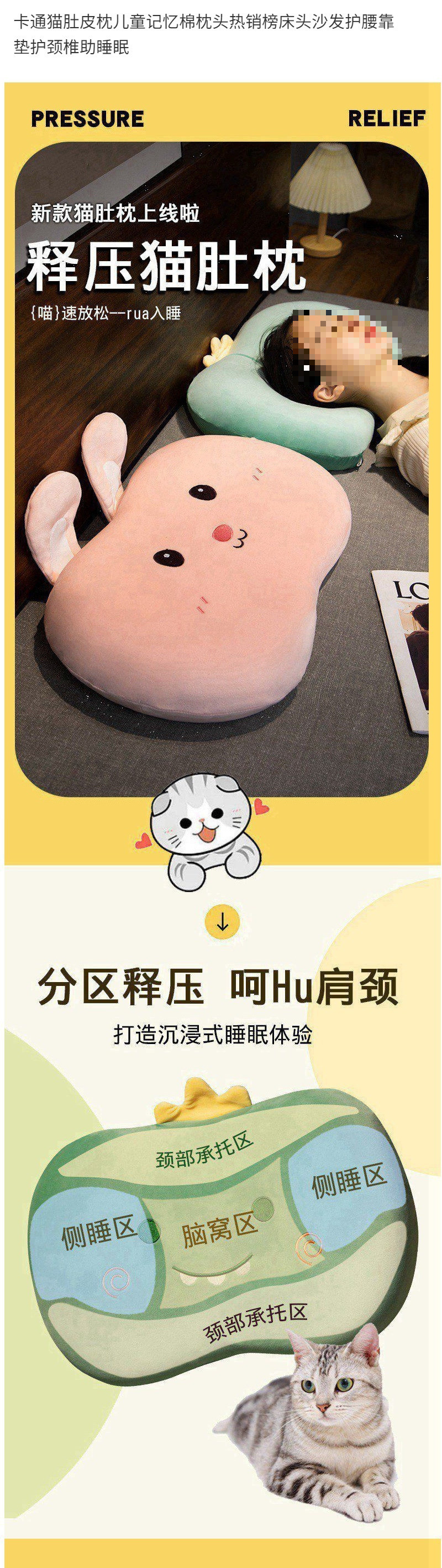 만화 고양이 배 베개 메모리 폼 어린이 베개 변형 없음 기숙사 단일 학생 쿠션 자궁 경부 척추 보호 새로운 스타일스토어 가기