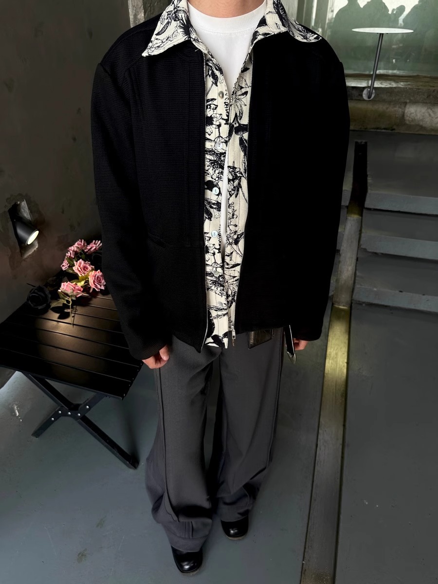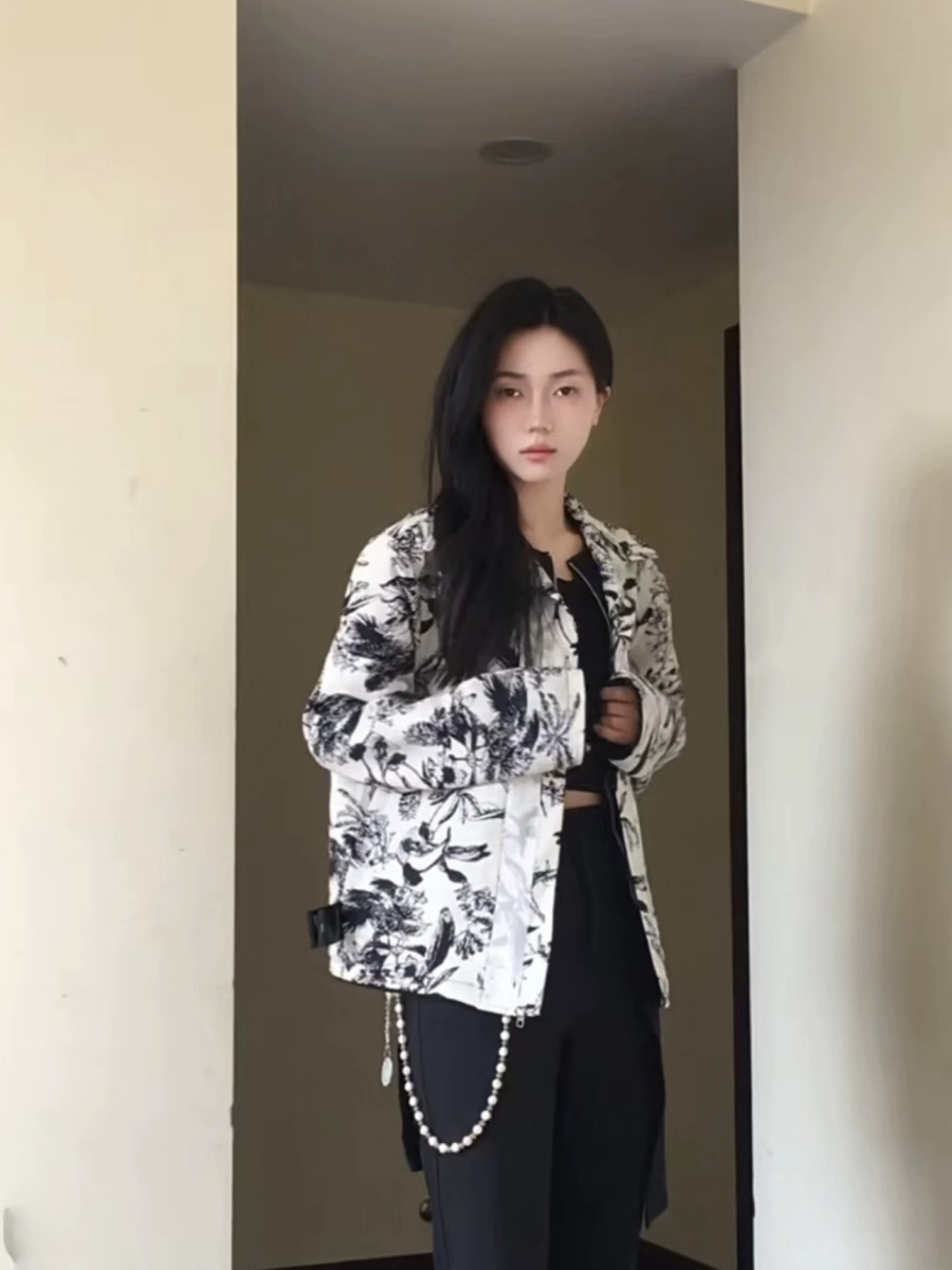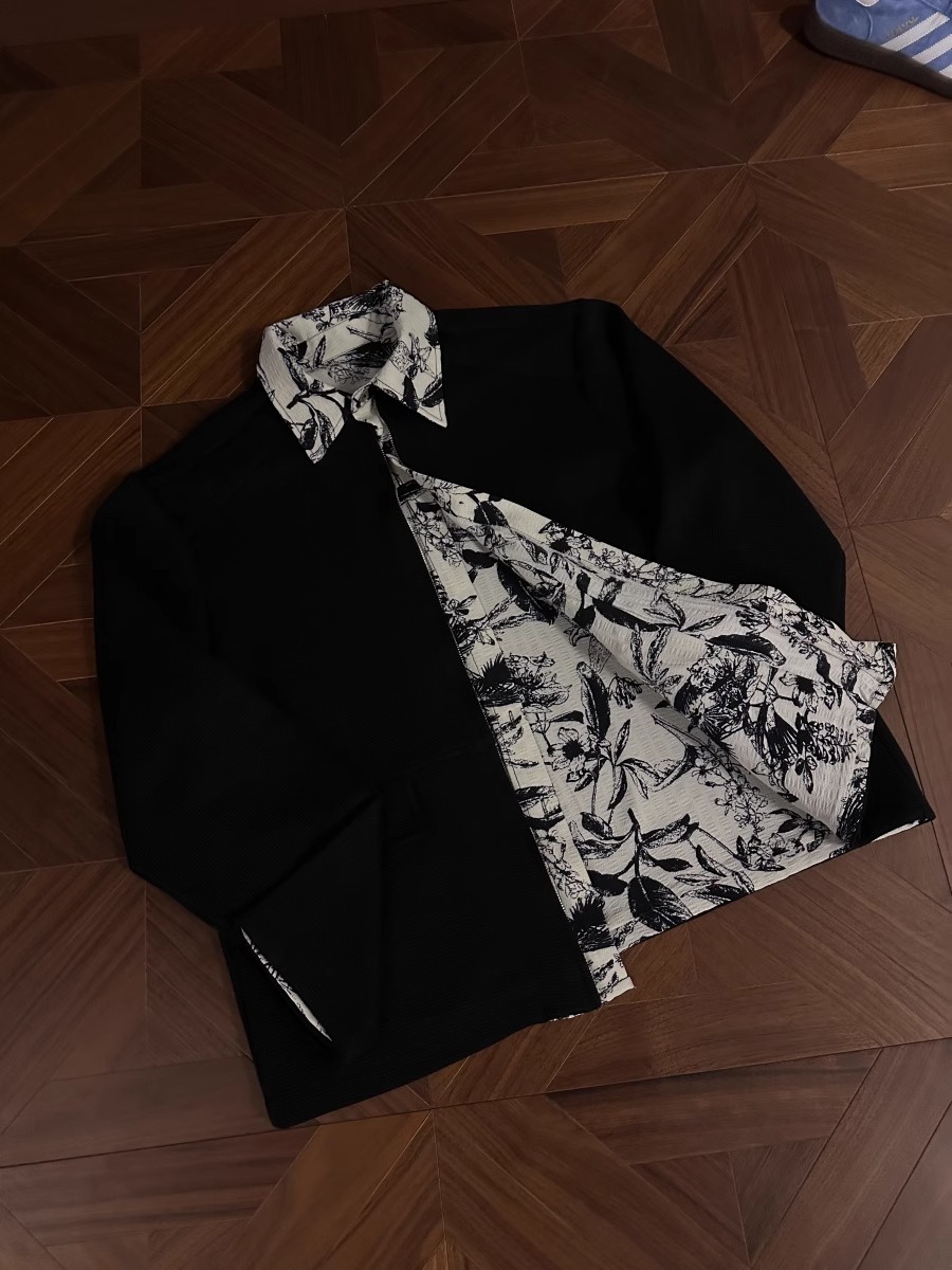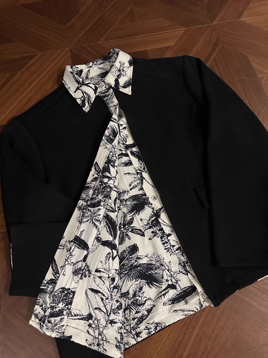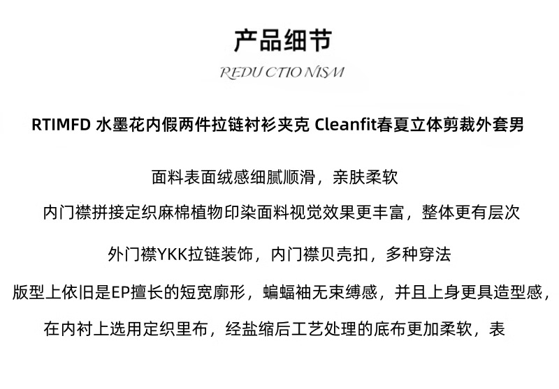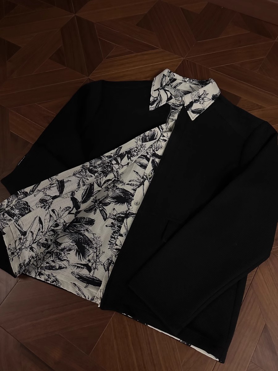 RTIMFD 잉크 꽃 가짜 투피스 지퍼 셔츠 재킷 클렌핏 봄/여름 남성용 입체 양면 재킷스토어 가기
