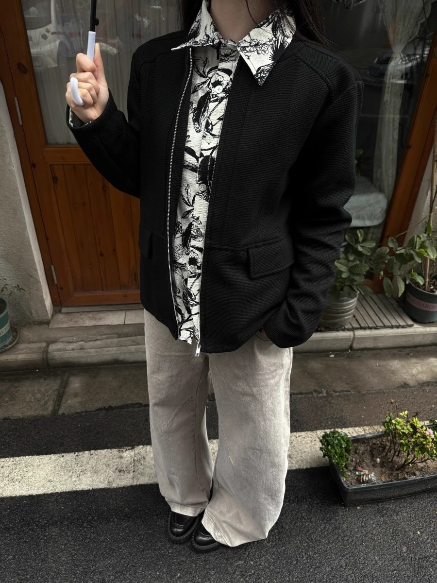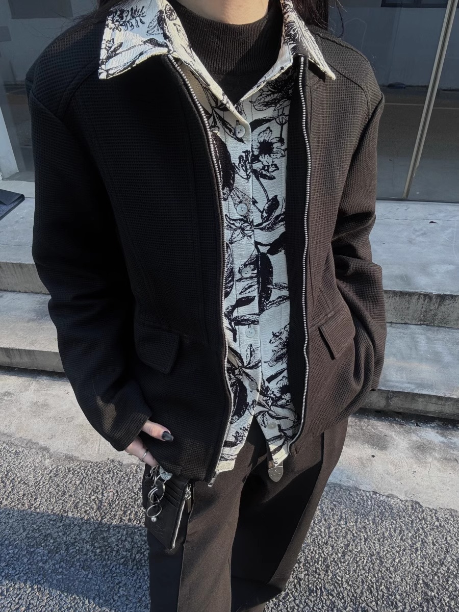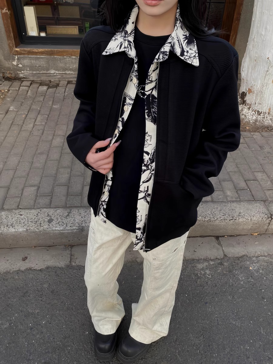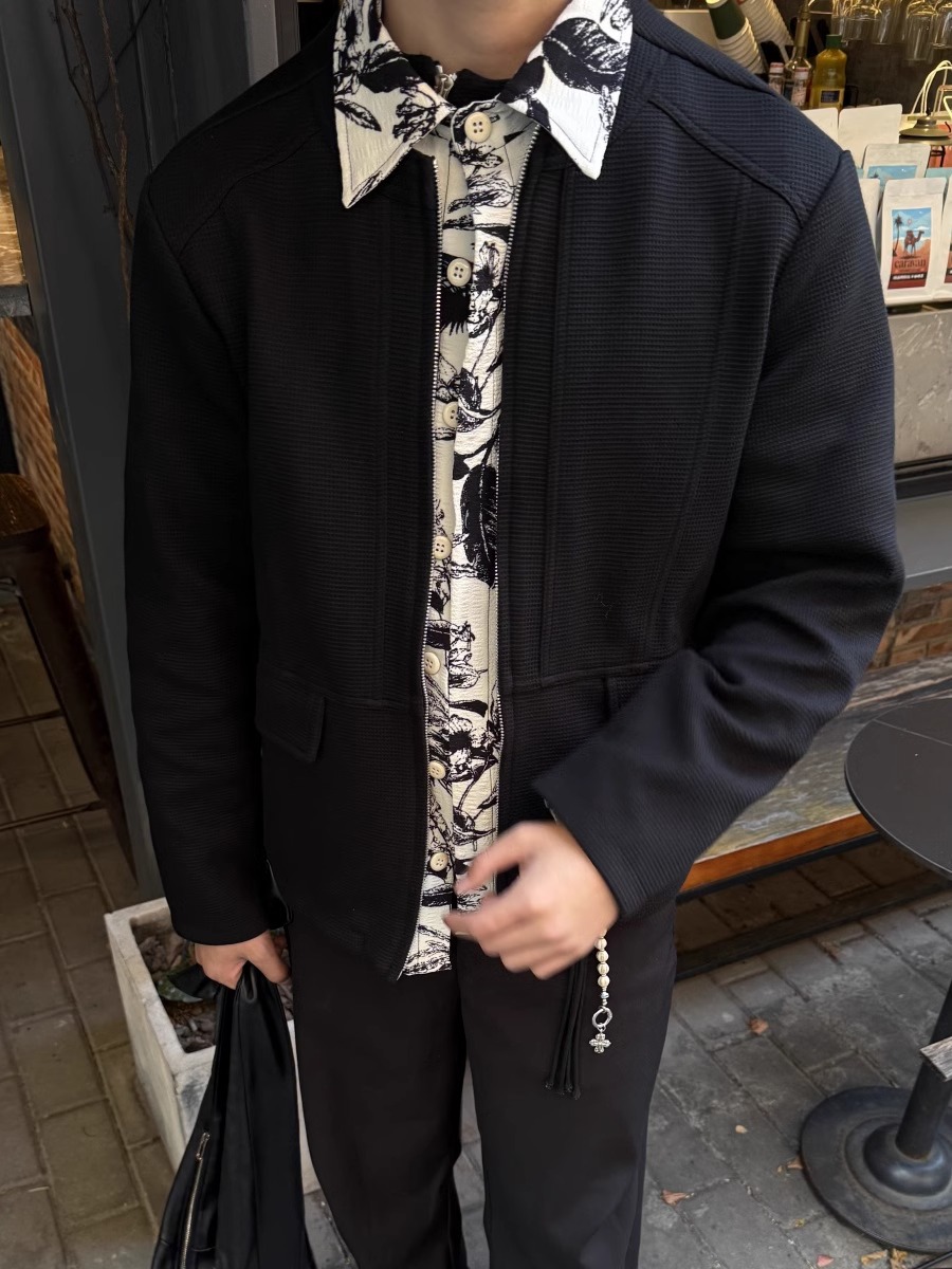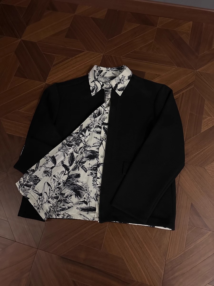 RTIMFD 잉크 꽃 가짜 투피스 지퍼 셔츠 재킷 클렌핏 봄/여름 남성용 입체 양면 재킷스토어 가기