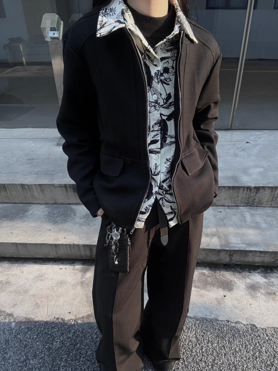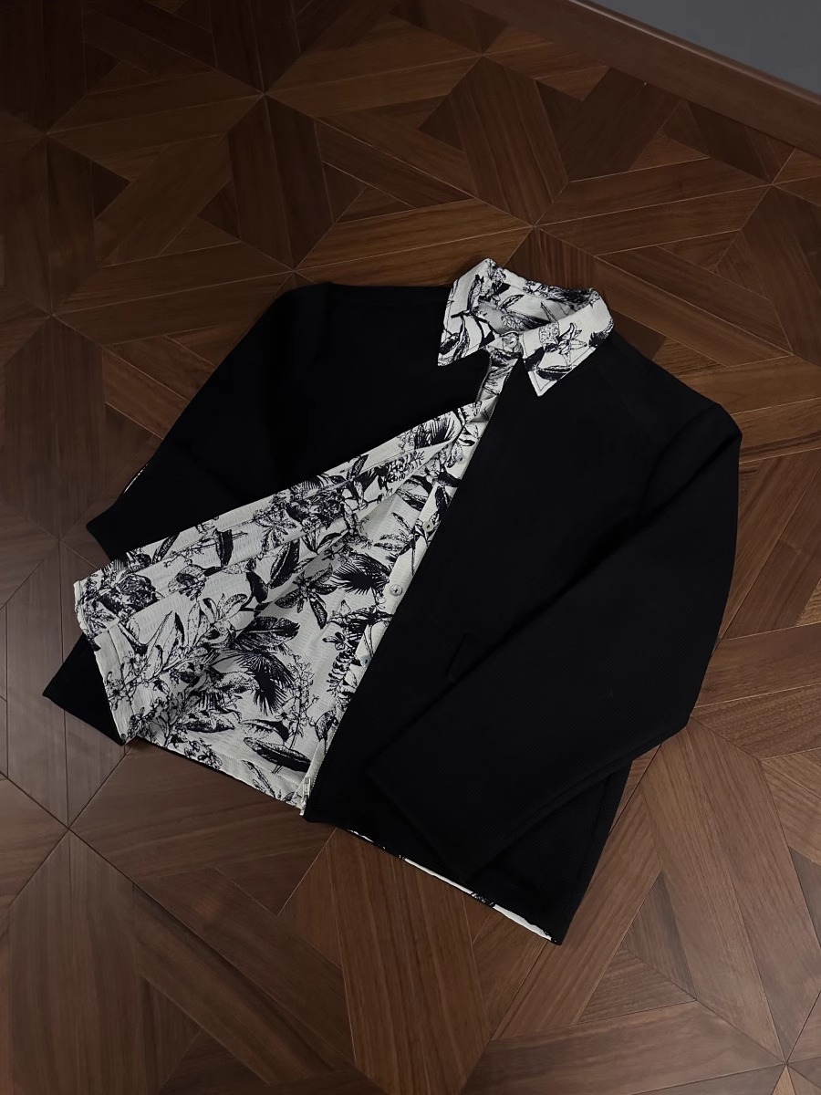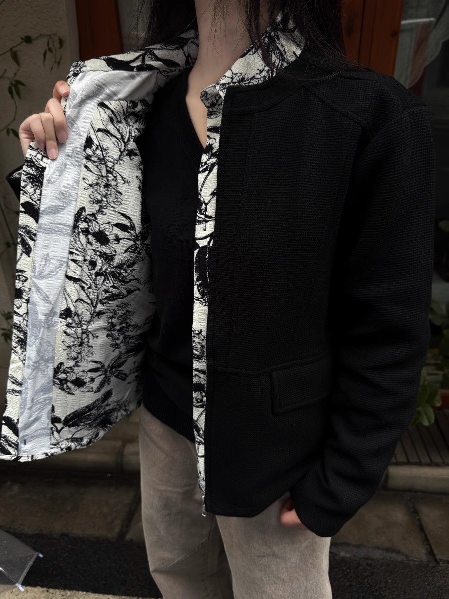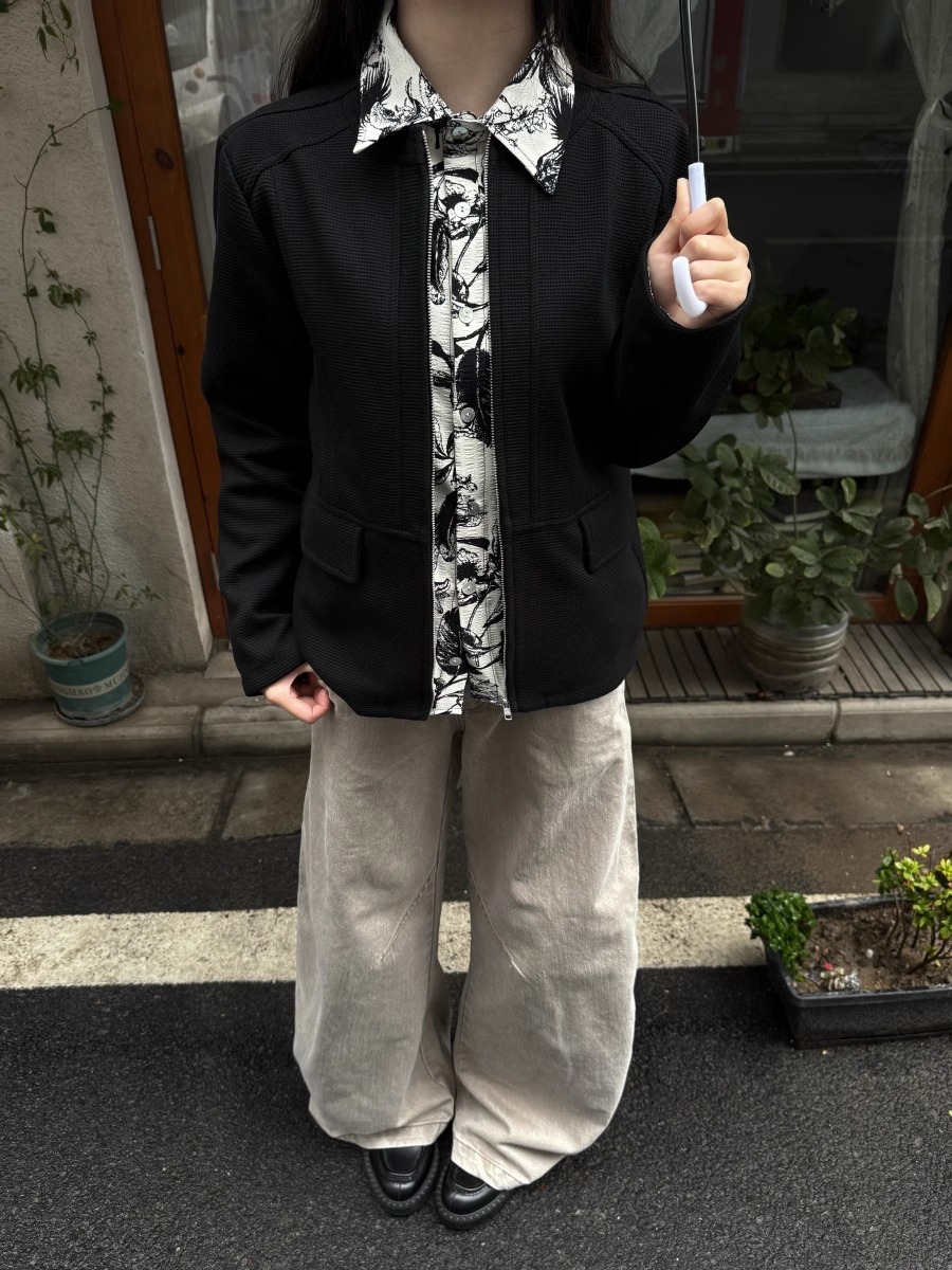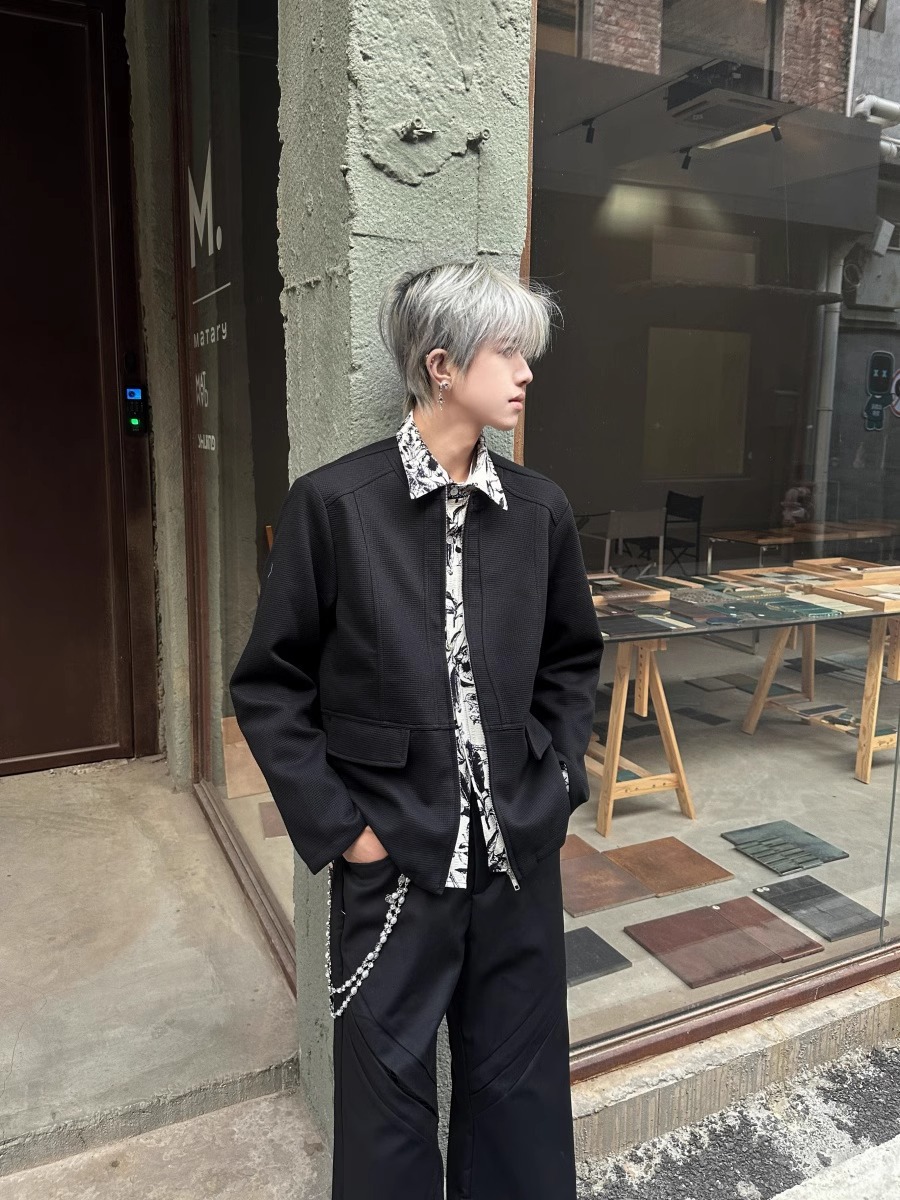 RTIMFD 잉크 꽃 가짜 투피스 지퍼 셔츠 재킷 클렌핏 봄/여름 남성용 입체 양면 재킷스토어 가기
