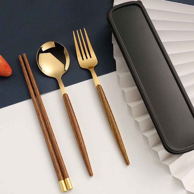휴대용 식기 스테인레스 스틸 젓가락 숟가락 포크 세트 학생 회사원 숟가락 젓가락 포크 3 피스 세트 1 인스토어 가기