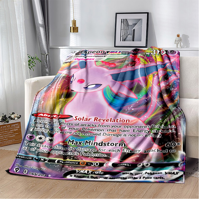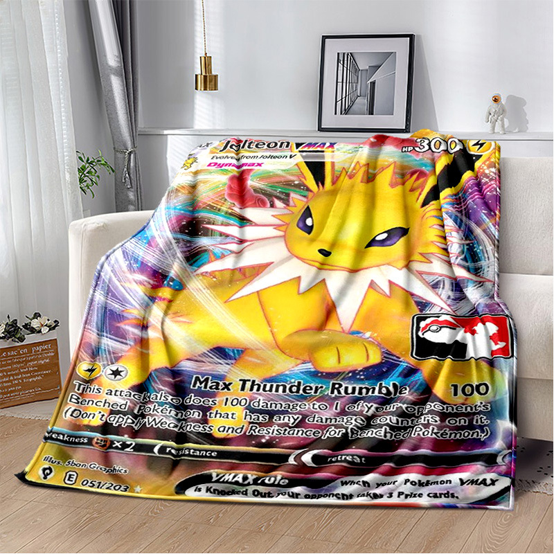 2025 새로운 피카추 포켓몬 골드 카드 만화 선물 소프트 플러시 담요 플란넬 던지기 거실 침실