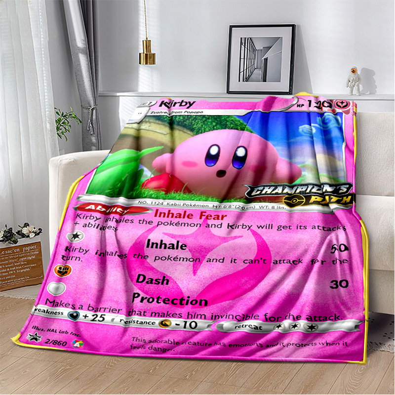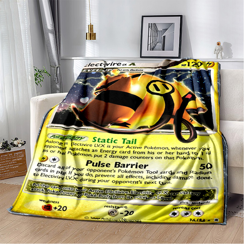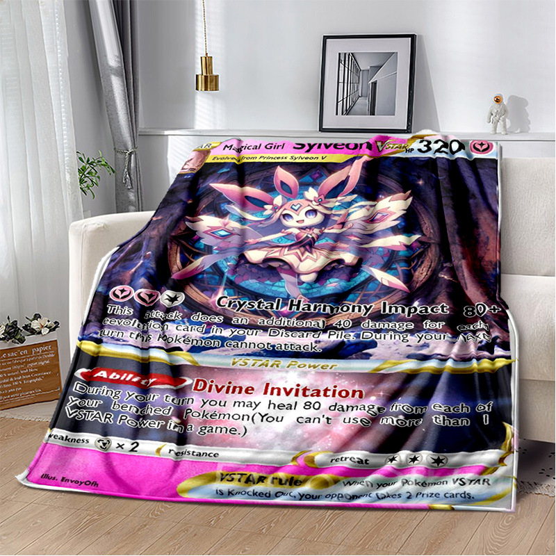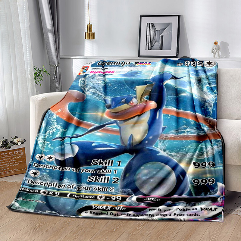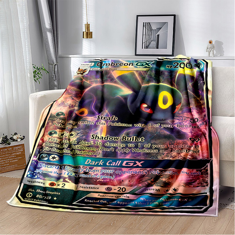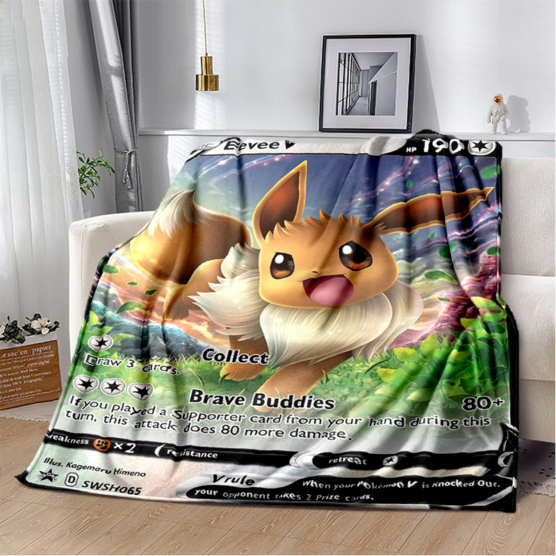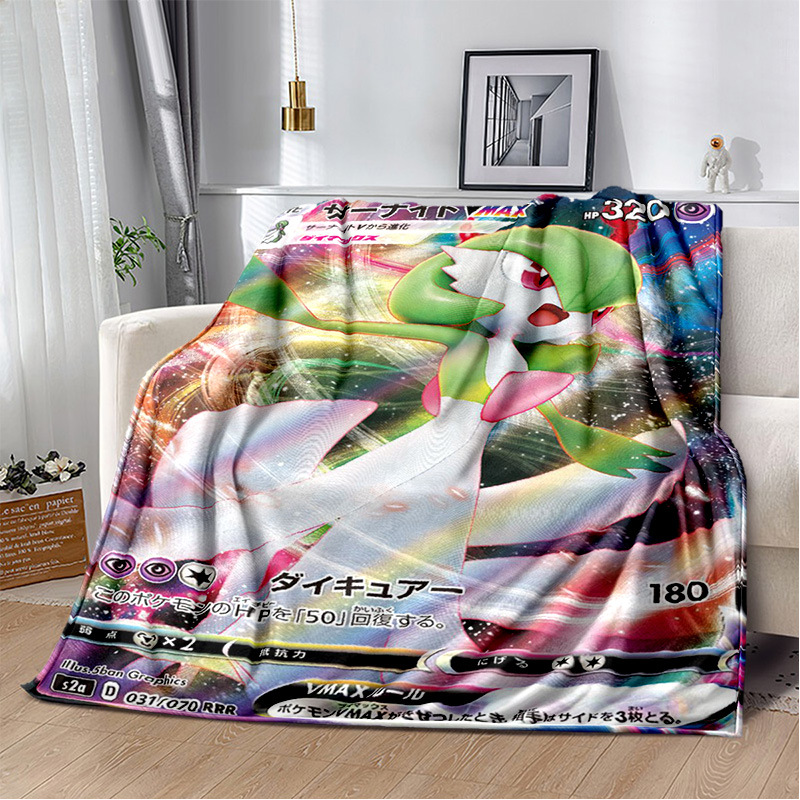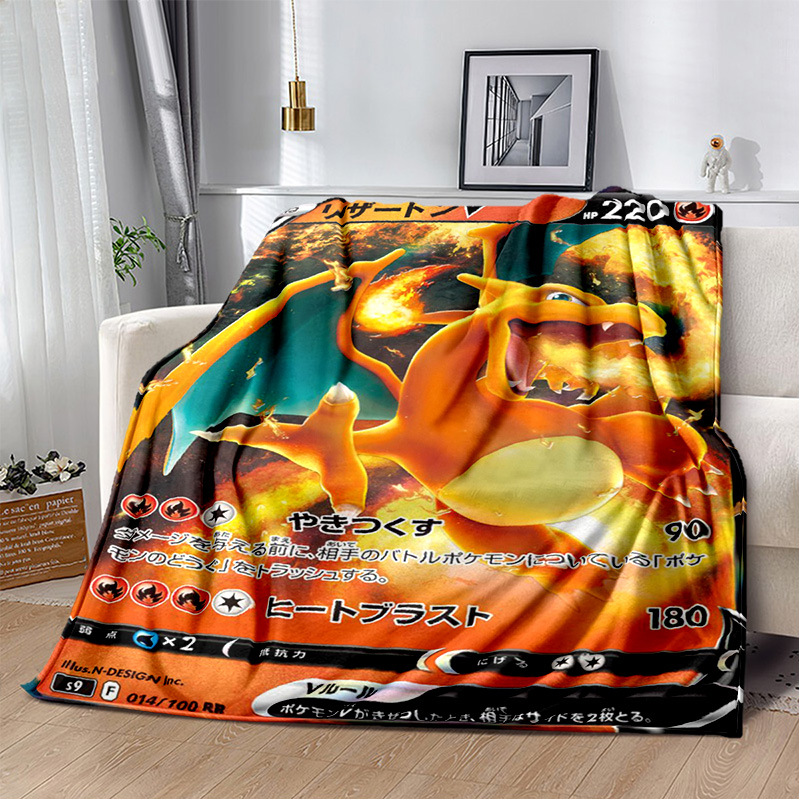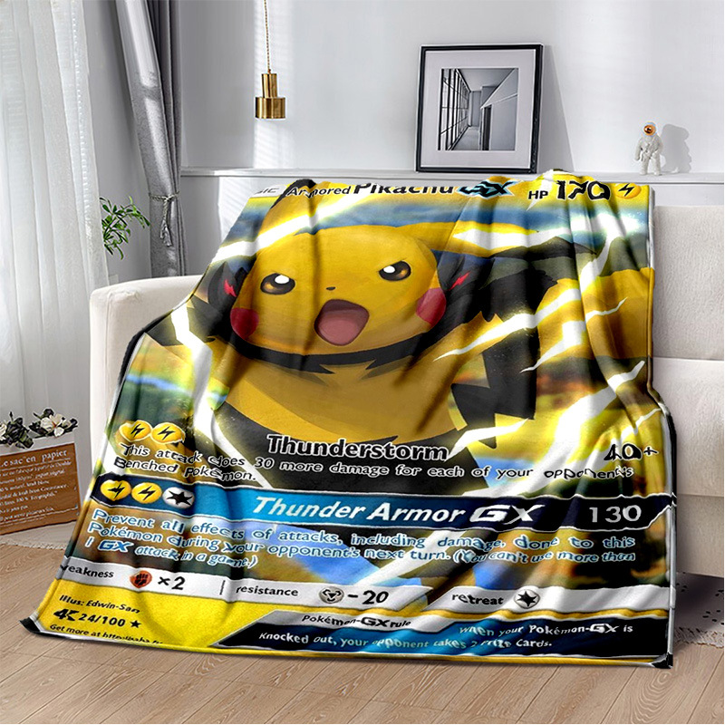 2025 새로운 피카추 포켓몬 골드 카드 만화 선물 소프트 플러시 담요 플란넬 던지기 거실 침실스토어 가기