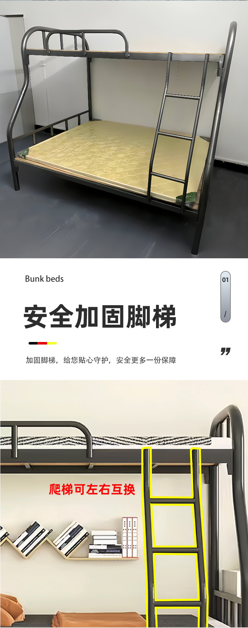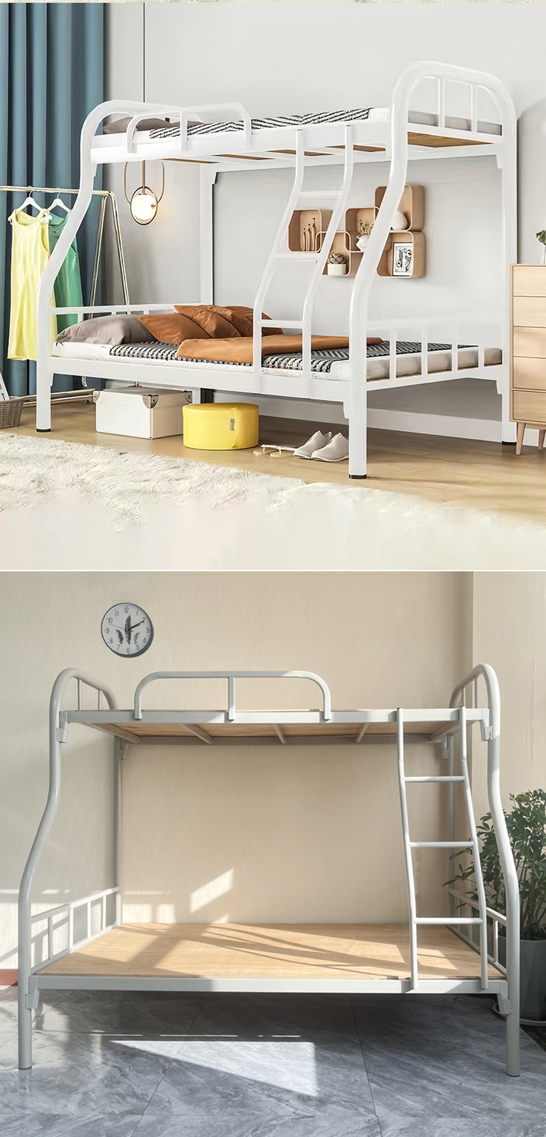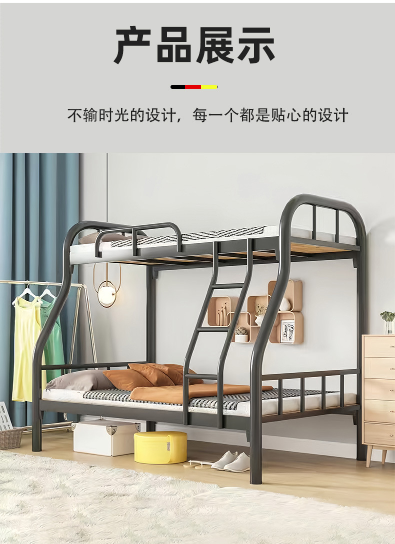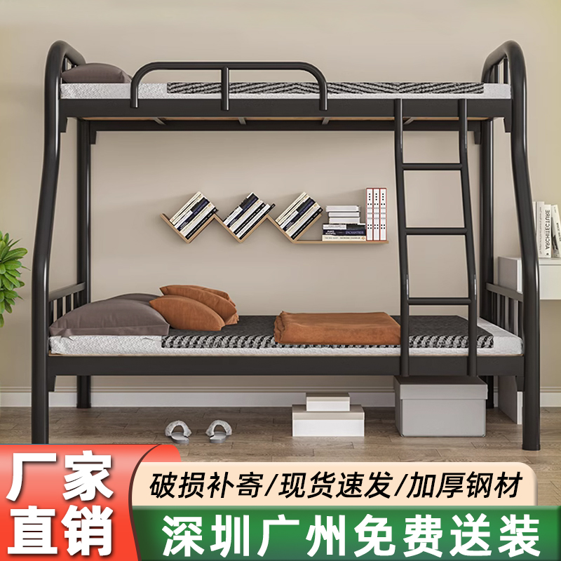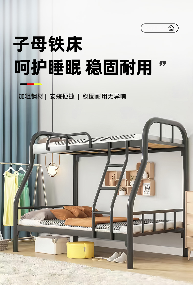 상부 및 하부 이층 침대 철층 침대 상층 및 하부 침대 철제 프레임 침대 두꺼운 높고 낮은 침대 철제 침대 상층 침대 이층 심천스토어 가기