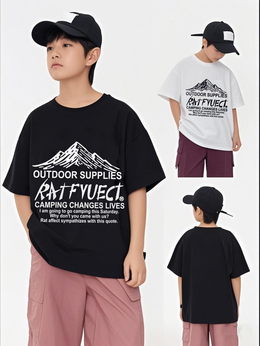 국경 간 독점 미국 무거운 반팔 티셔츠 어린이 여름 면화 패치 워크 탁상 반소매 티셔츠스토어 가기