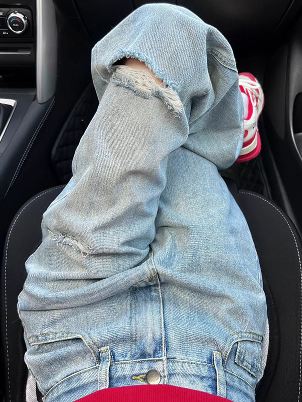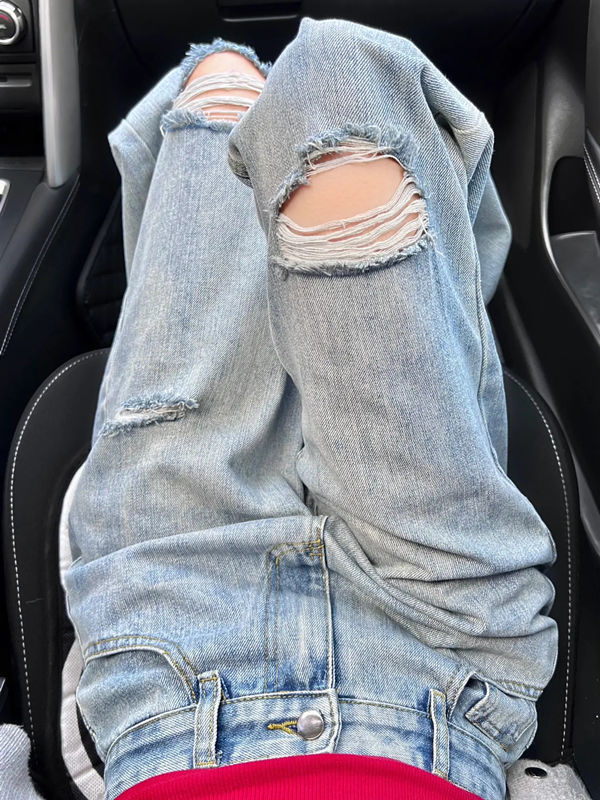 스파이스 걸스 하이 스트리트 리핑 스트레이트 청바지 여성 여름 새로운 느슨한 높은 허리 슬리밍 느슨한 넓은 다리 바지스토어 가기
