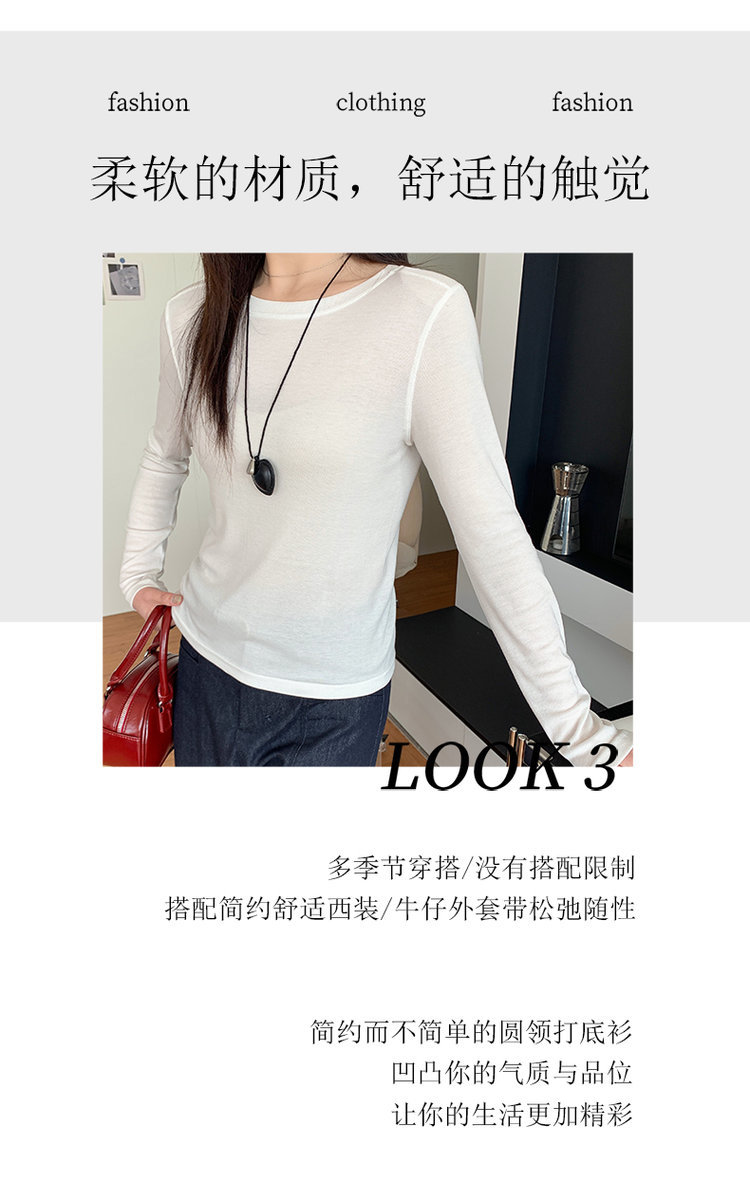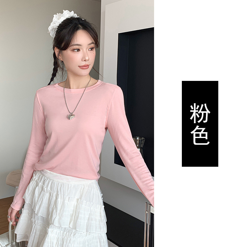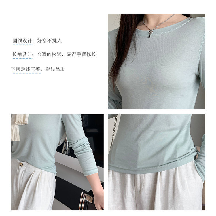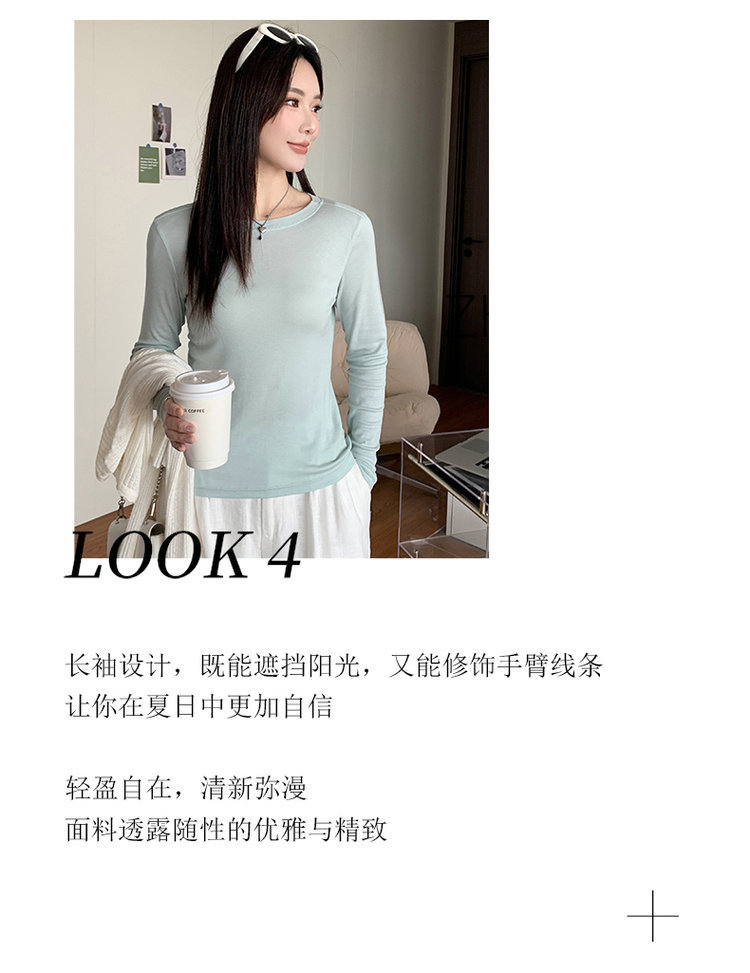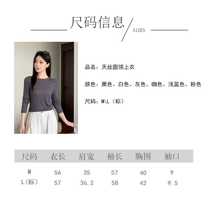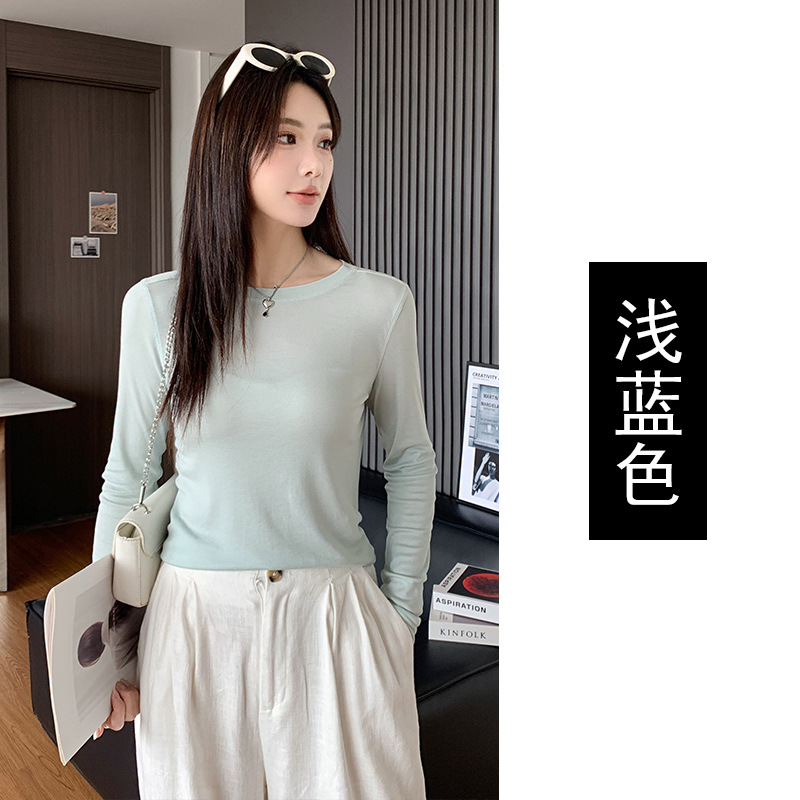 Lyocell Tencel Crewneck 블라우스 긴 소매 경량 쿨 마스크 티셔츠 봄과 여름 얇은 선 스크린 에어컨 탑스토어 가기