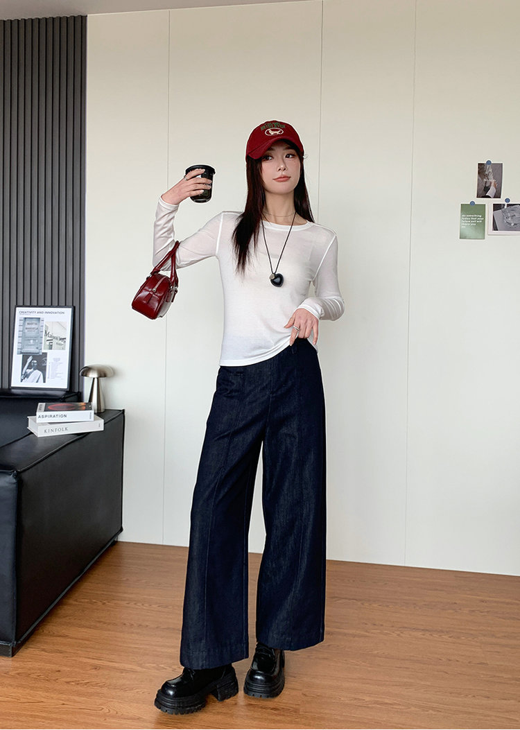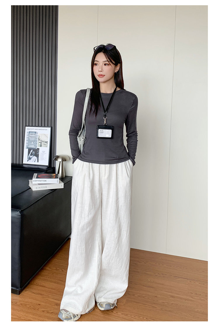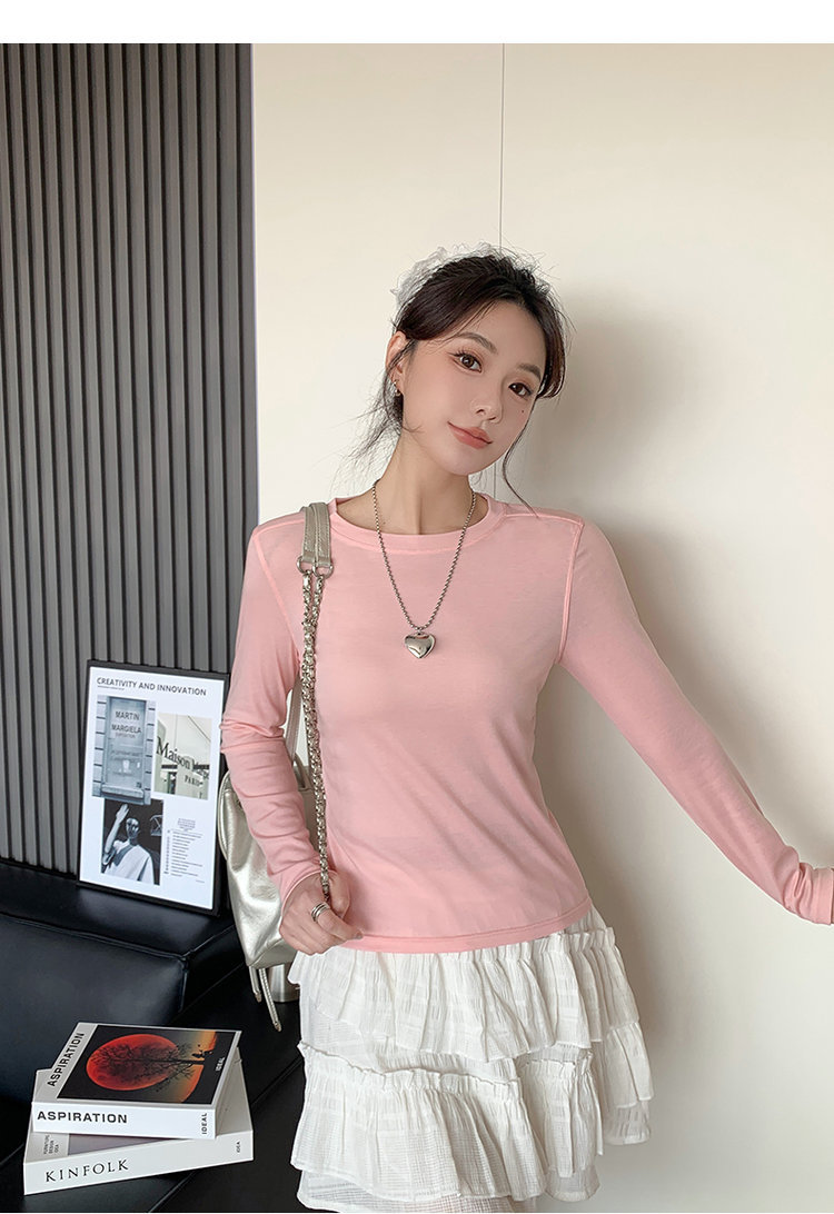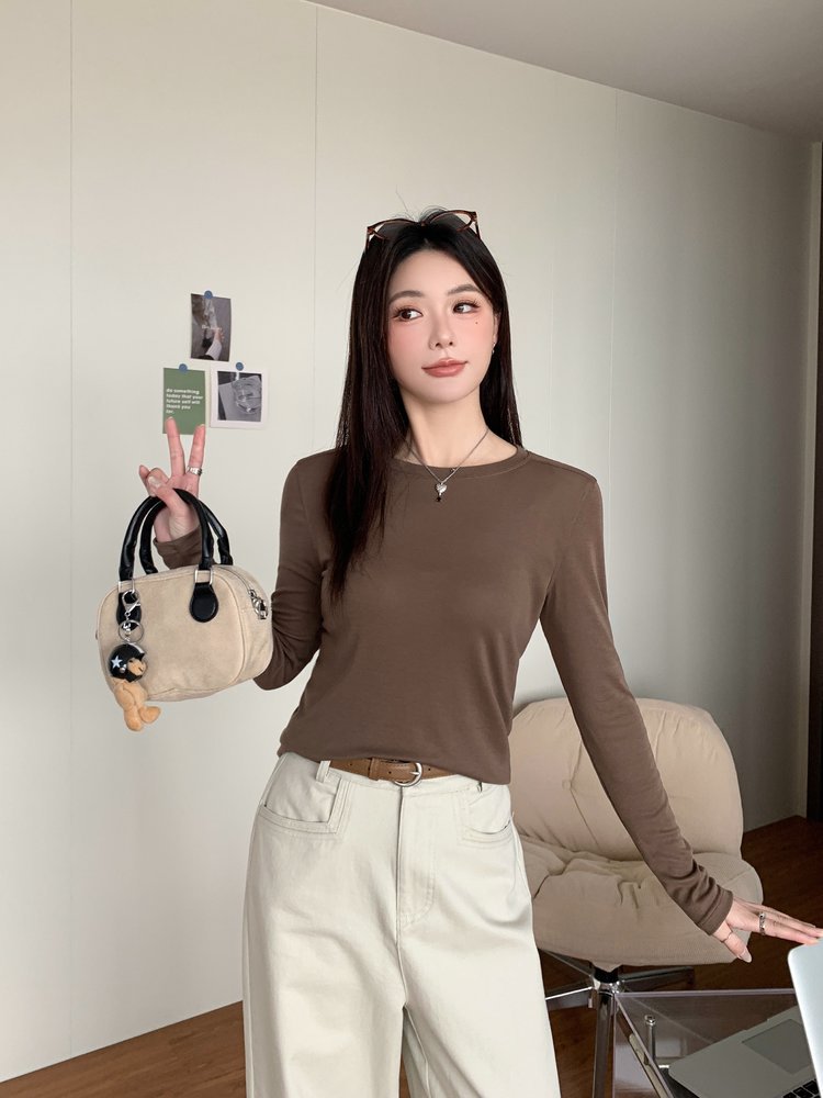 Lyocell Tencel Crewneck 블라우스 긴 소매 경량 쿨 마스크 티셔츠 봄과 여름 얇은 선 스크린 에어컨 탑스토어 가기