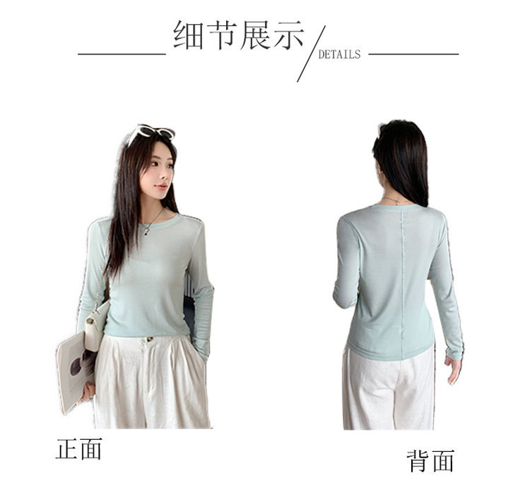 Lyocell Tencel Crewneck 블라우스 긴 소매 경량 쿨 마스크 티셔츠 봄과 여름 얇은 선 스크린 에어컨 탑