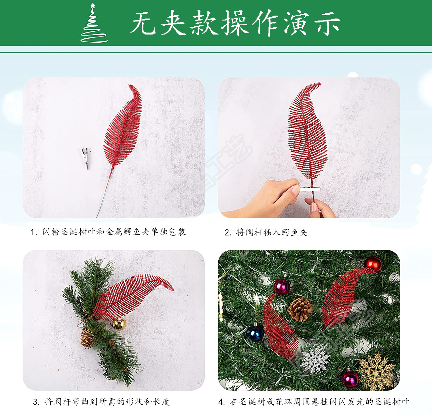 새로운 크리스마스 장식 블레이드 크리스마스 트리 골드 파우더 빛나는 장식 액세서리 깃털